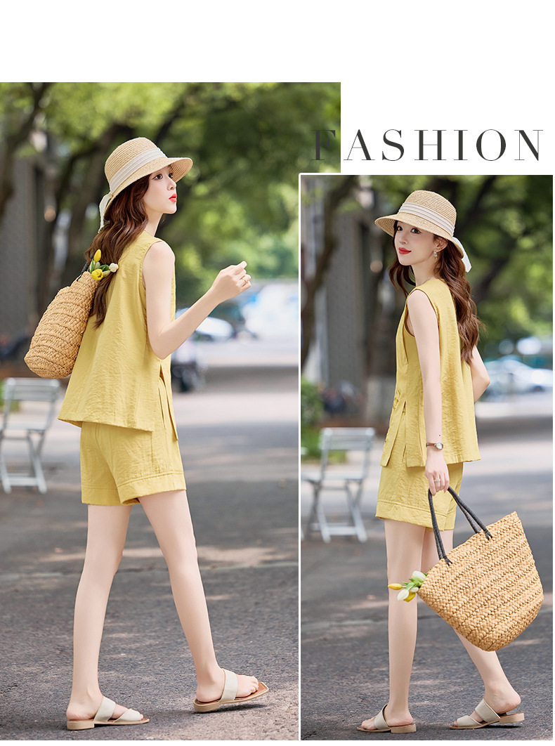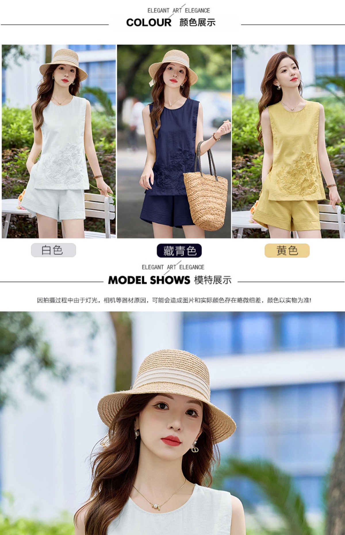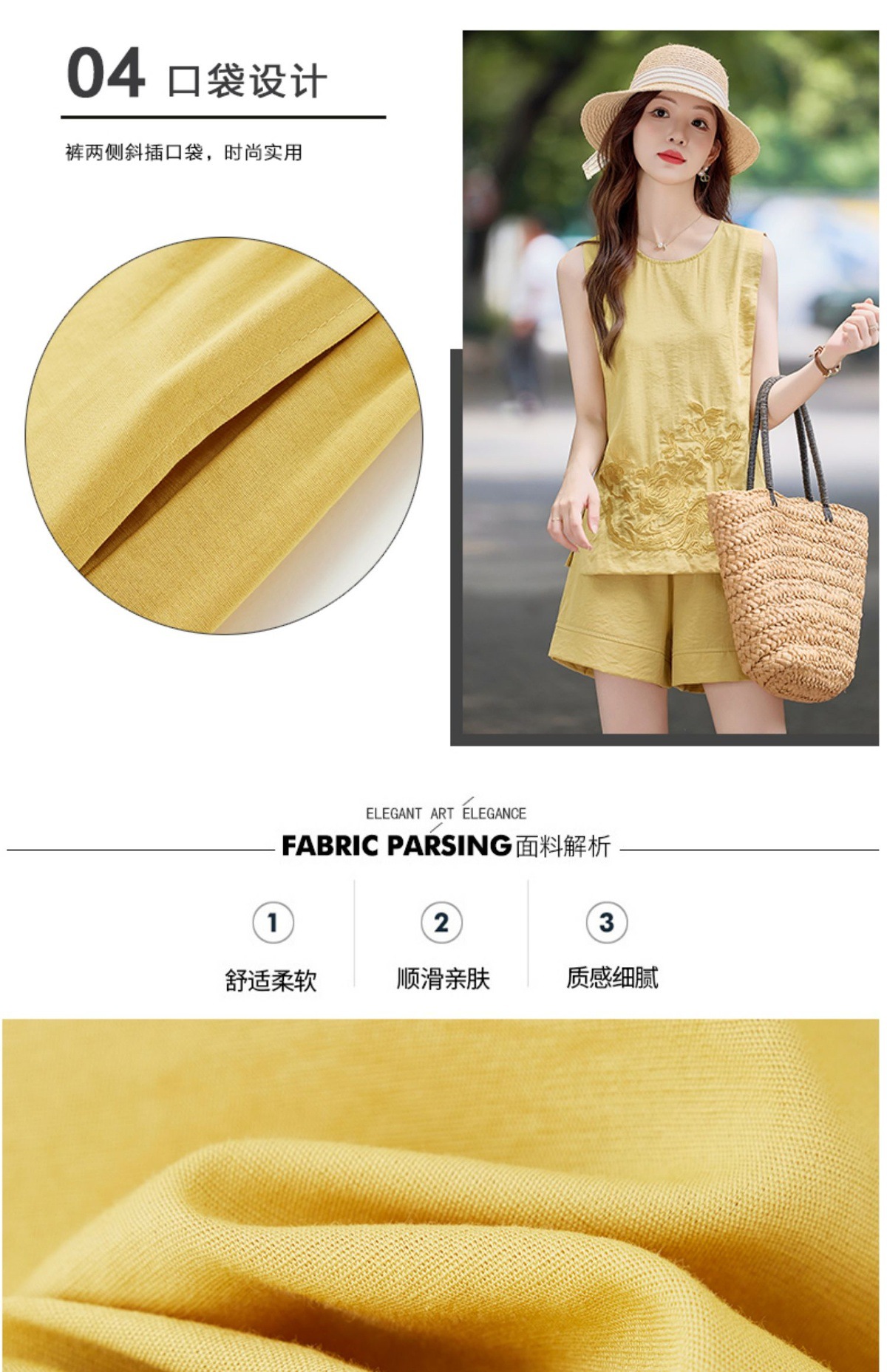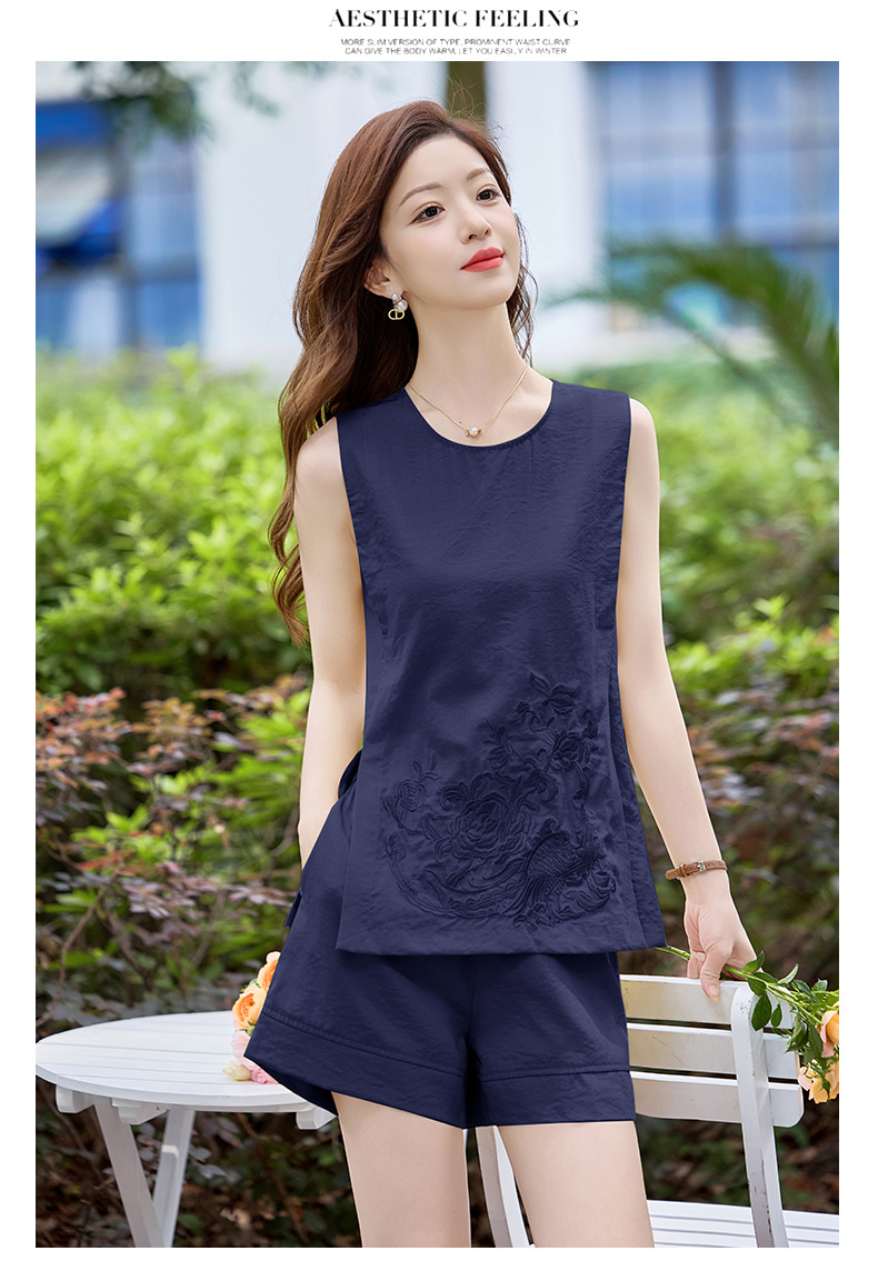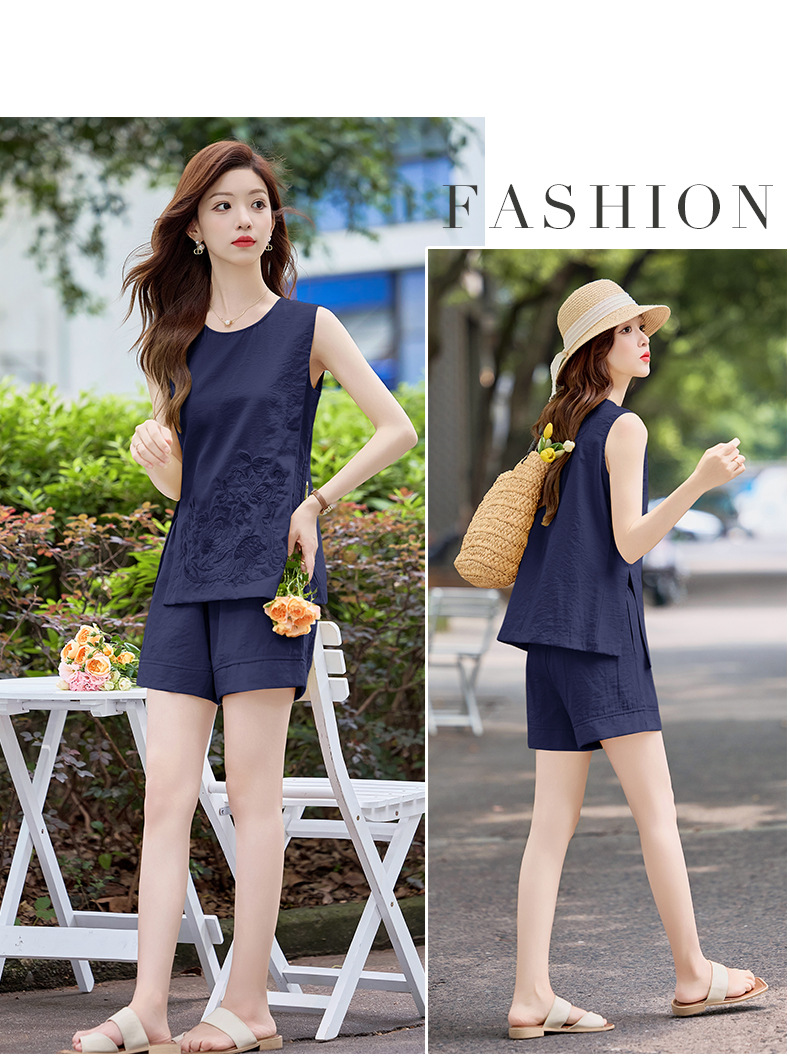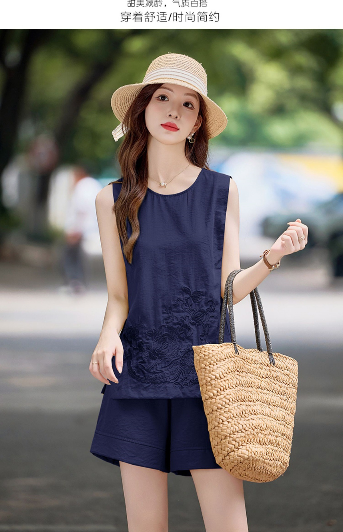 新中式国风刺绣无袖开叉上衣套装女夏2025新款短裤洋气减龄两件套XYFS6796