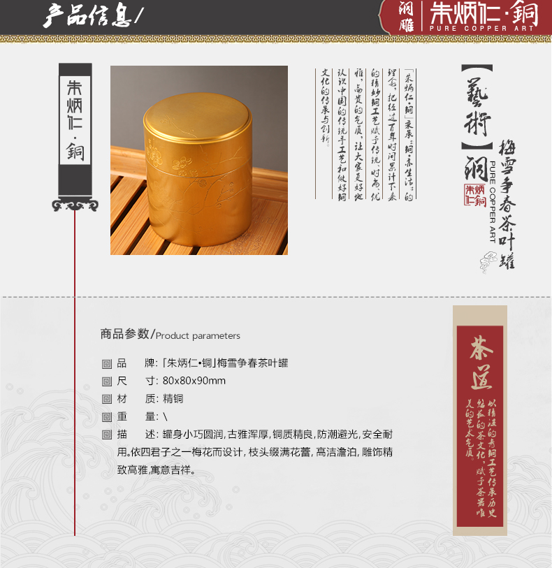 朱炳仁铜梅雪争春茶叶罐 纯铜创意摆件装饰品工艺品精品茶道用具