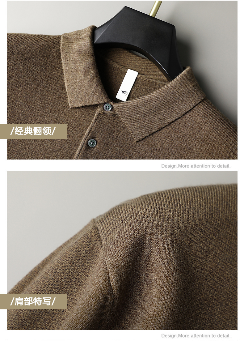 【莱赛尔+绵羊毛】【新款DG】大依优型翻领POLO长袖毛衣针织衫休闲针织衫毛背心加肥加大上衣男士胖子大码毛衫t恤打底