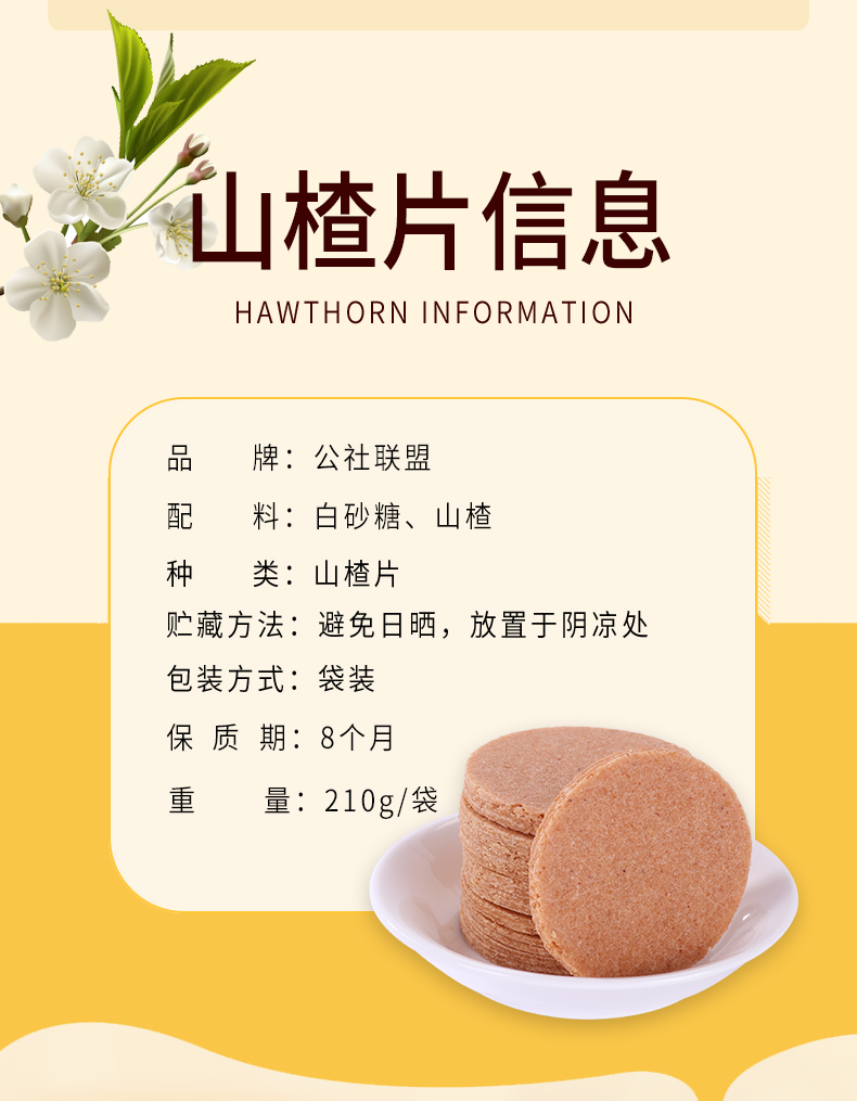 210g公社联盟山楂片 酸甜适口 老少皆宜