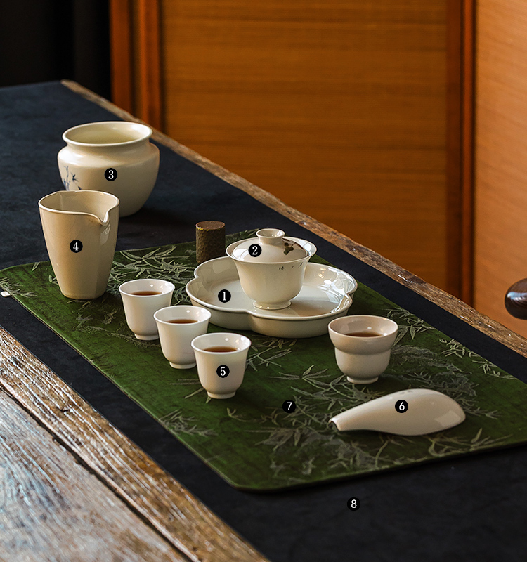 茶香记景德镇天野造物淡雅米灰釉壶承干泡盘-海棠盘古典素雅茶盘果盘