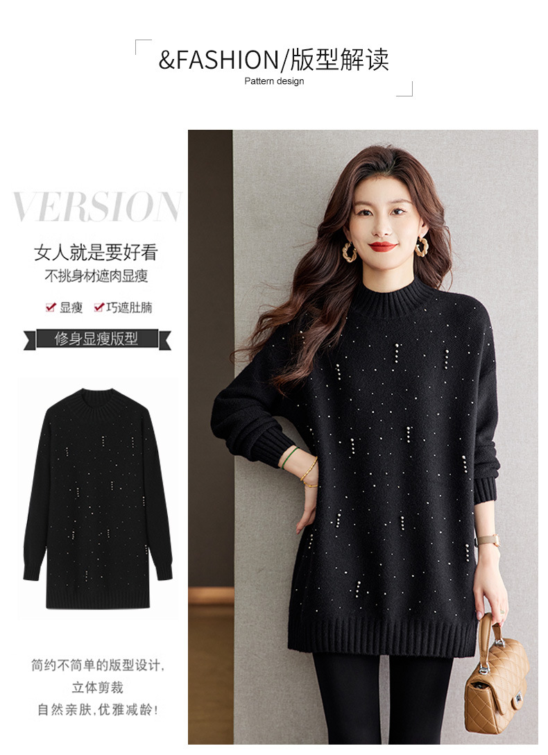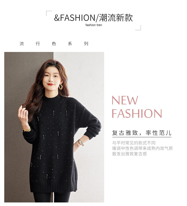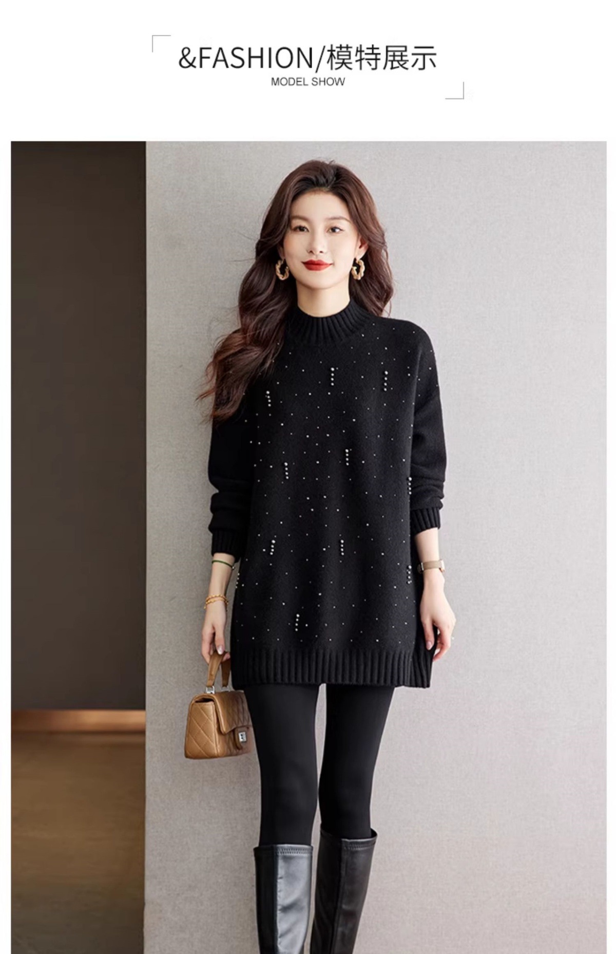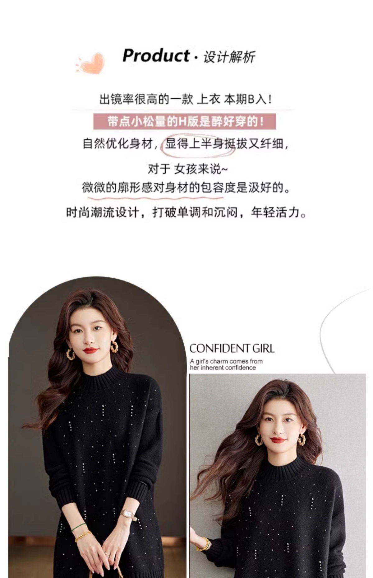 CC-JDS-8921新款秋冬大码慵懒风中长款半高领毛衣女宽松显瘦针织衫上衣厚