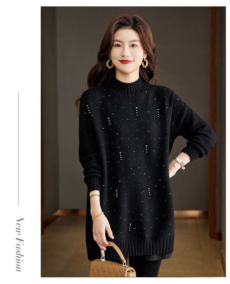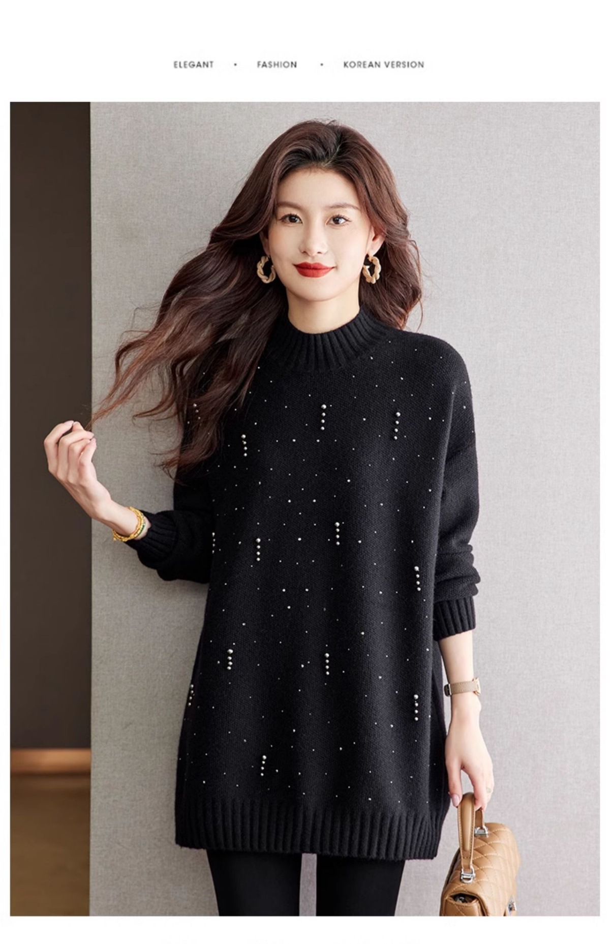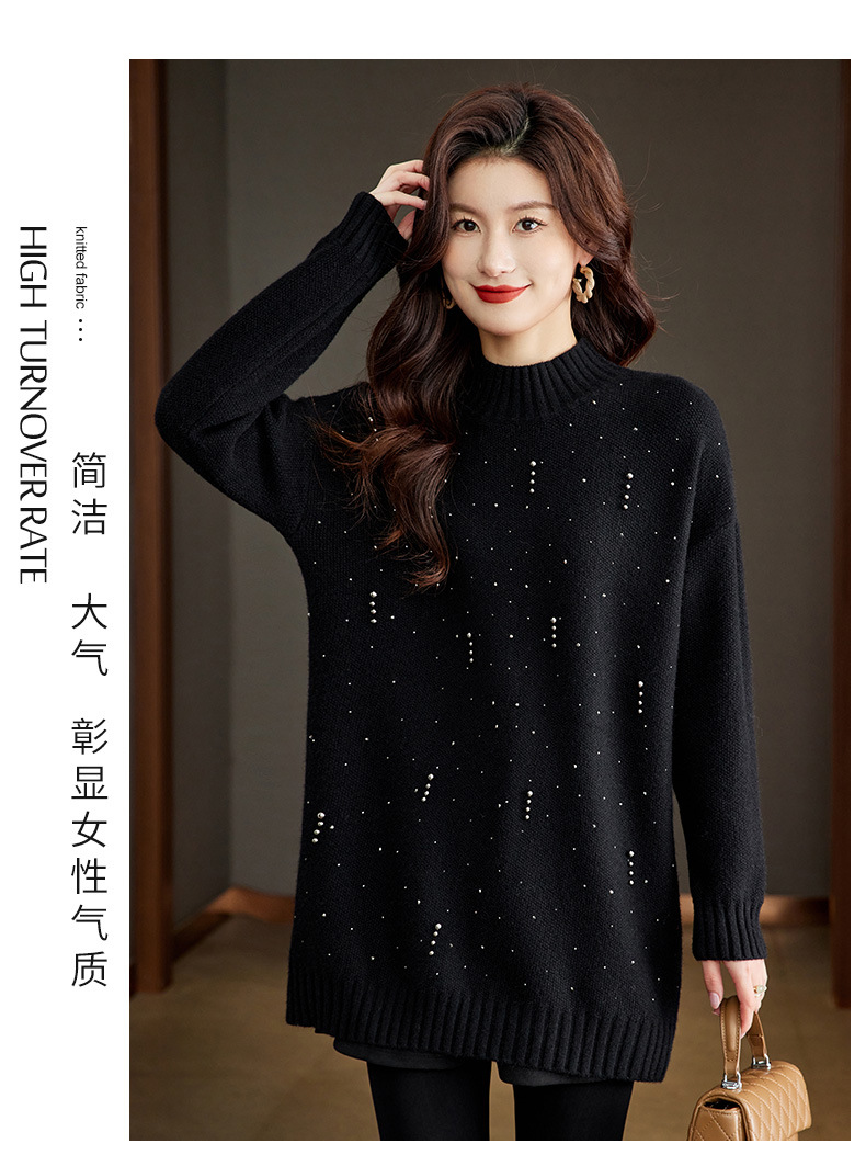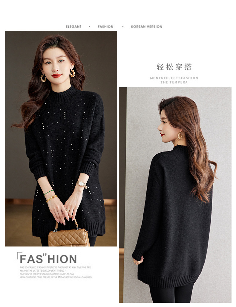 CC-JDS-8921新款秋冬大码慵懒风中长款半高领毛衣女宽松显瘦针织衫上衣厚
