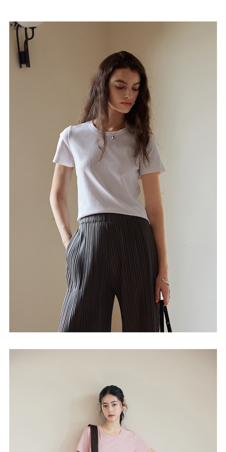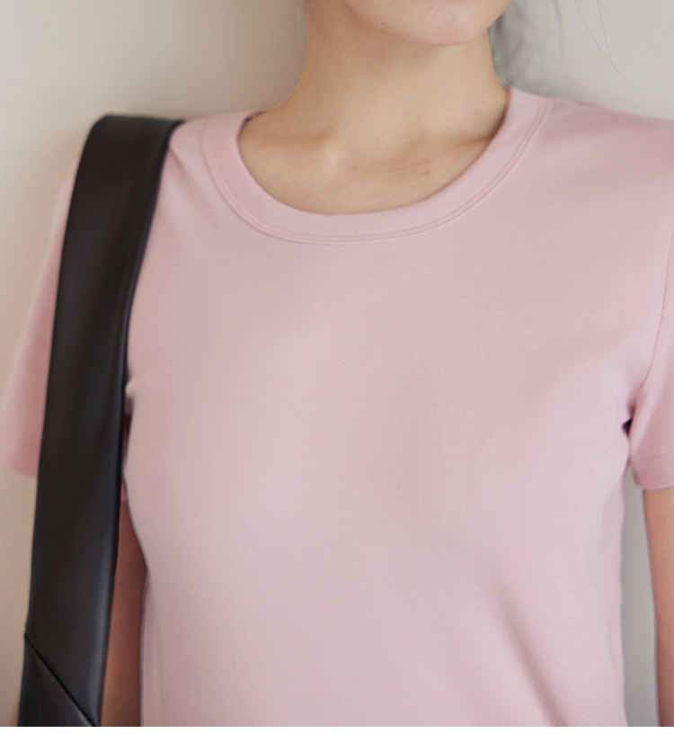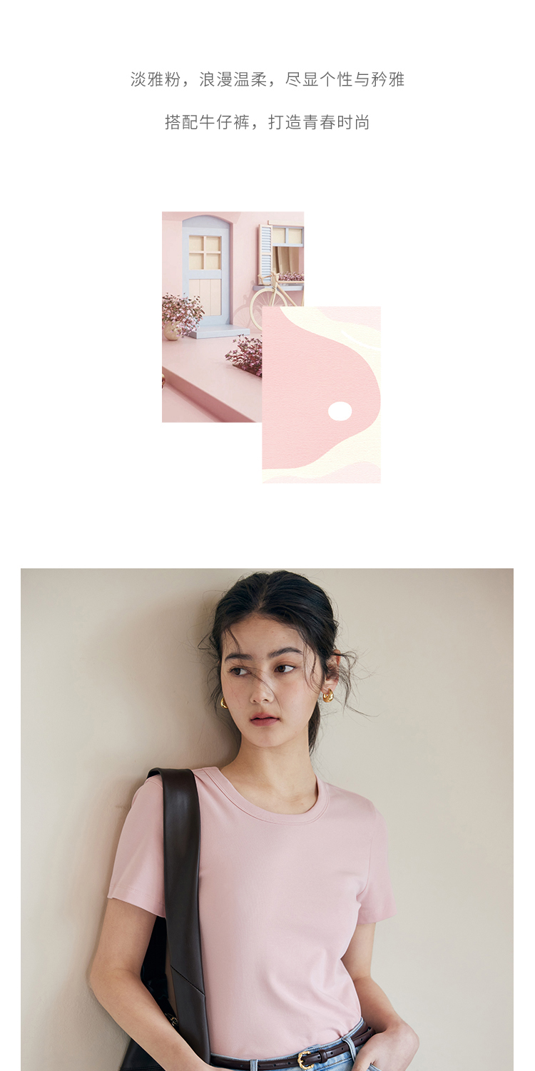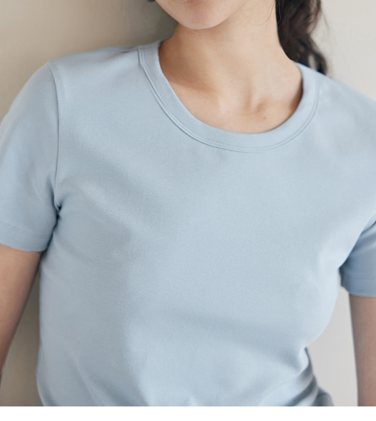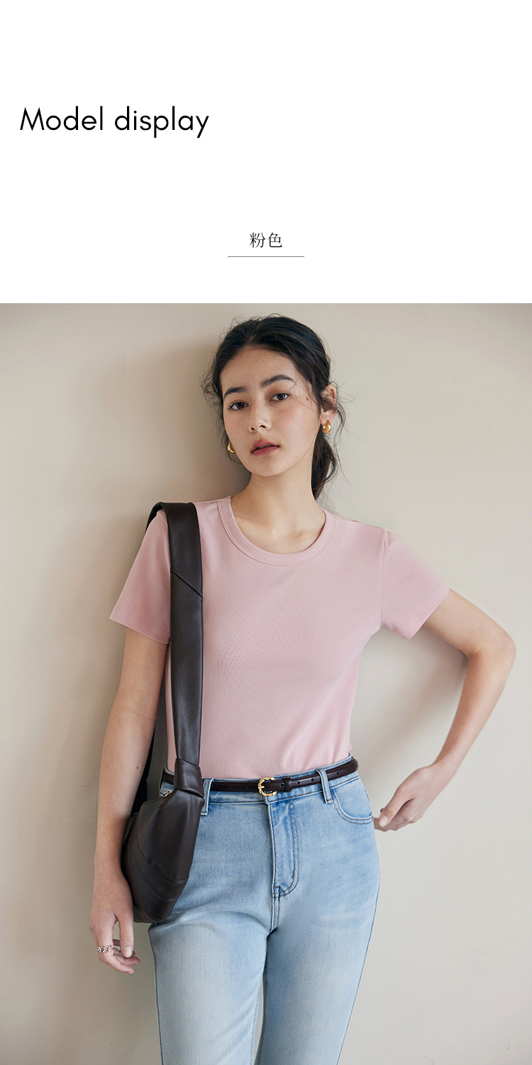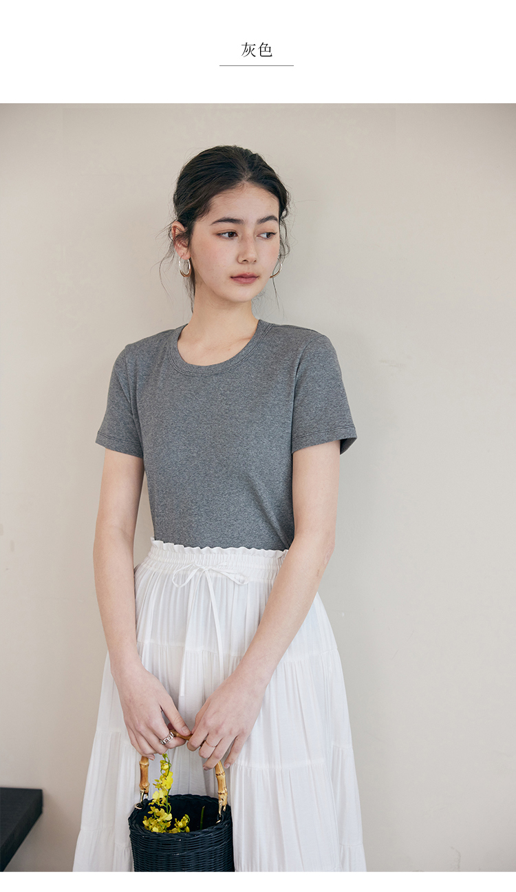 HeyDress纯色正肩T恤女夏季圆领修身弹力百搭半袖舒适感短袖上衣