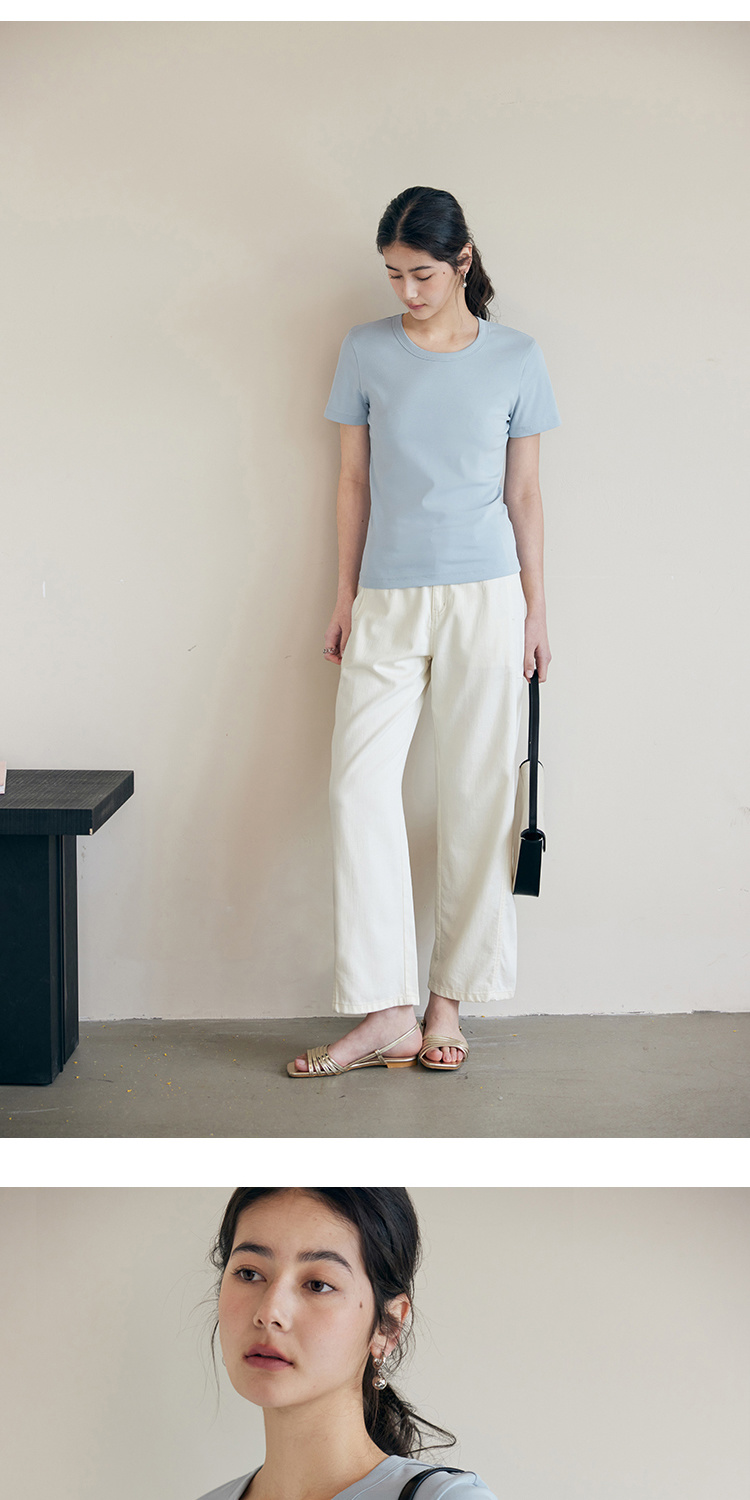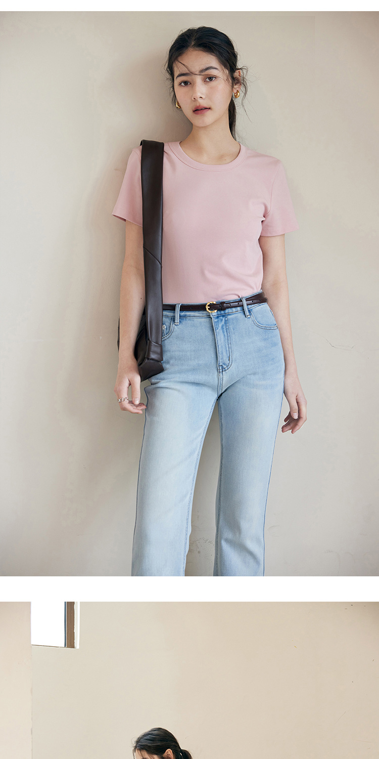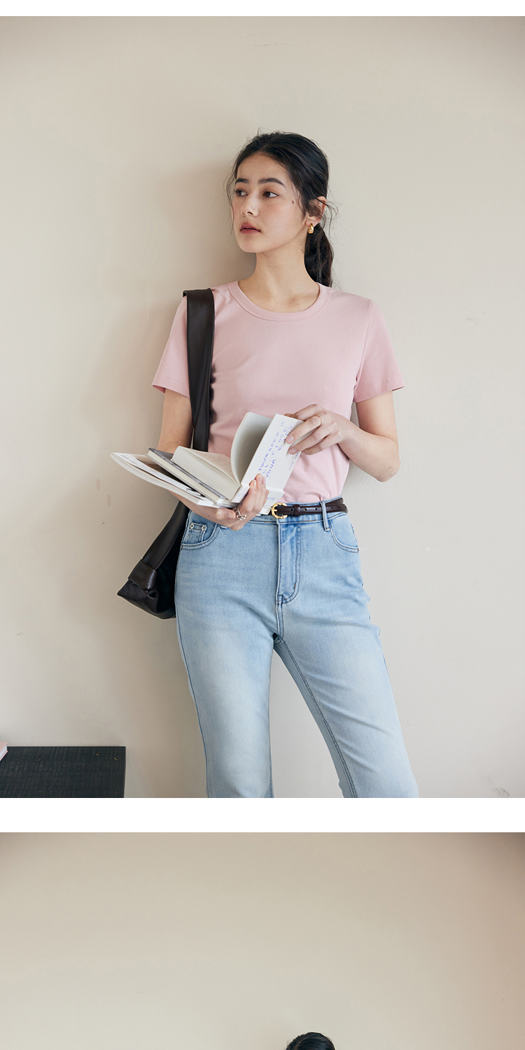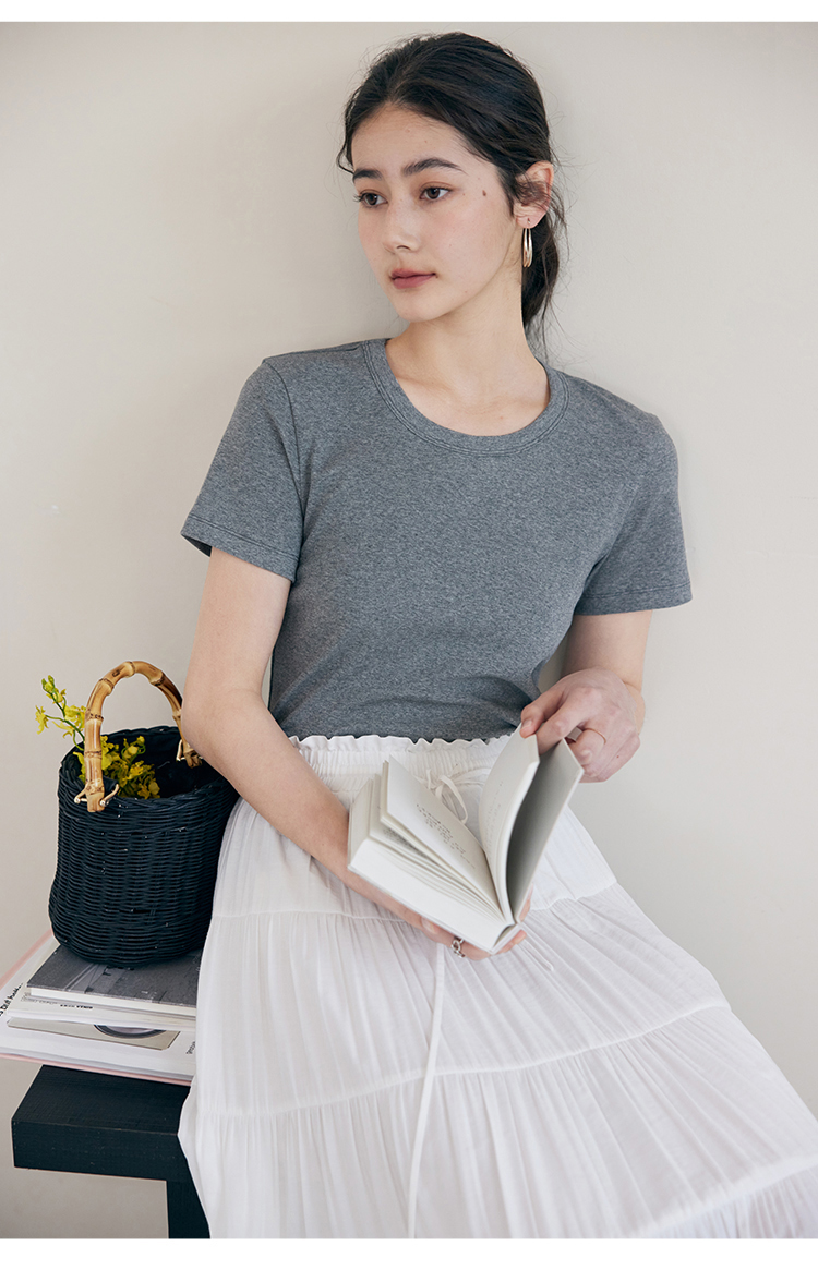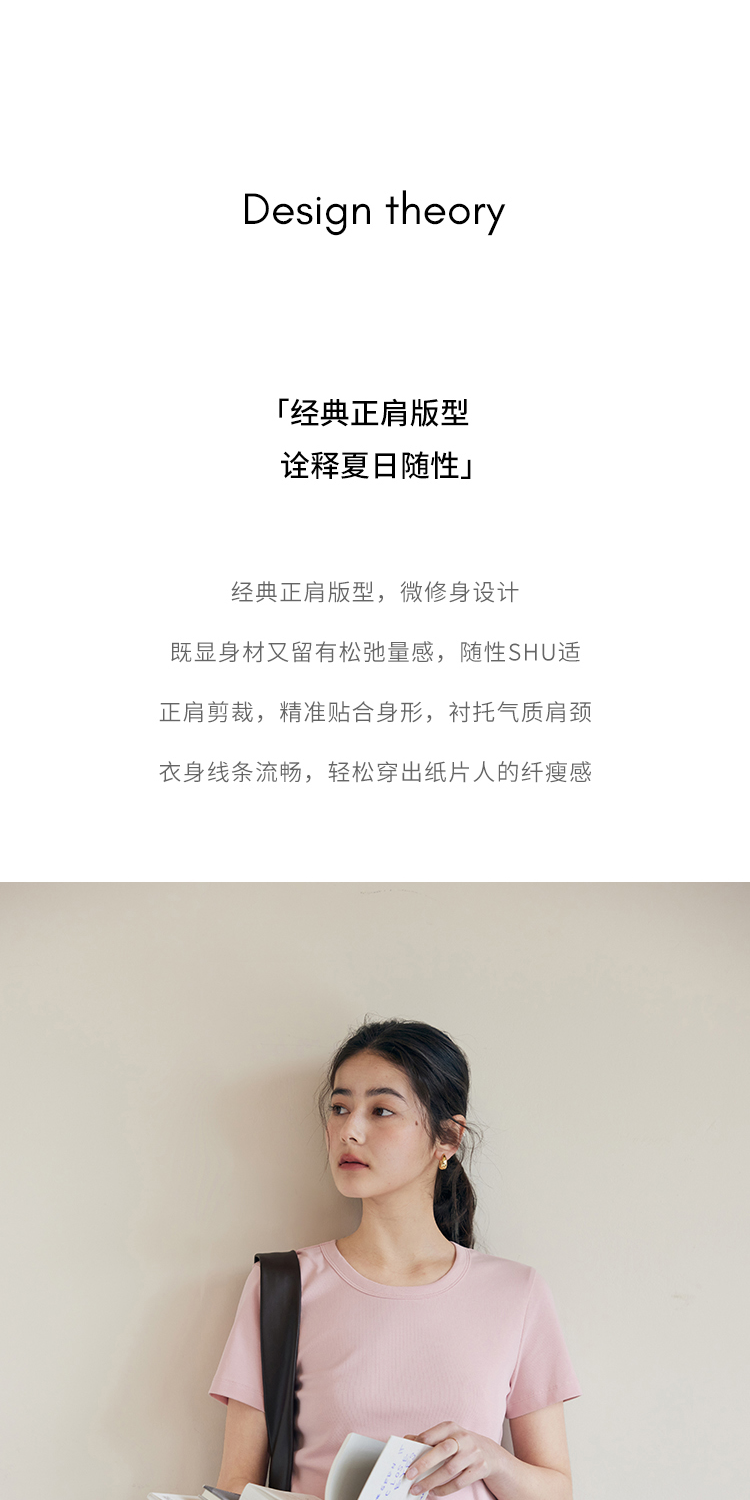 HeyDress纯色正肩T恤女夏季圆领修身弹力百搭半袖舒适感短袖上衣