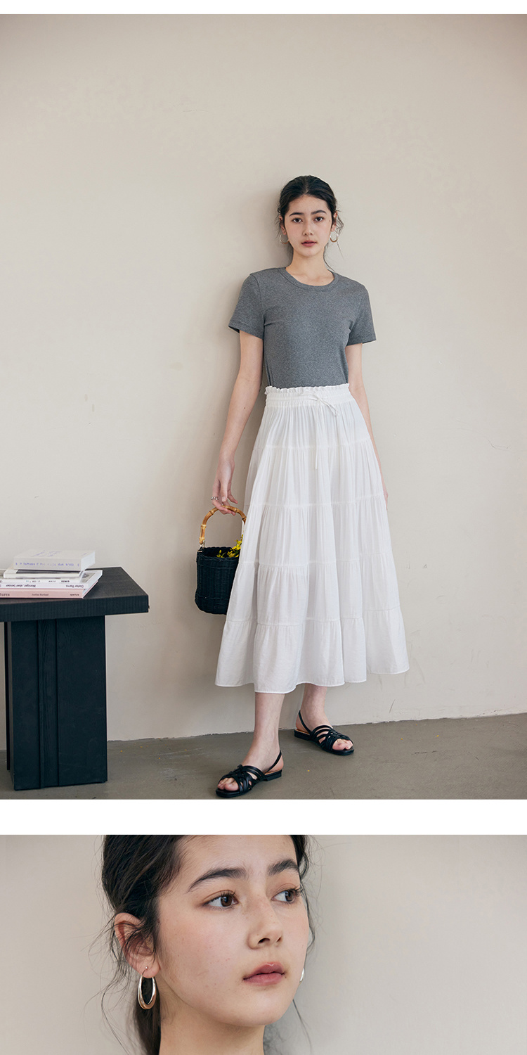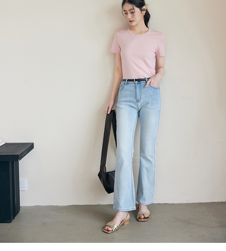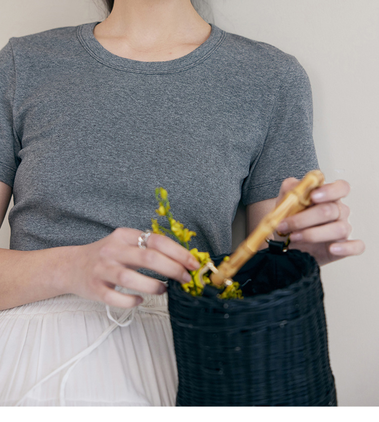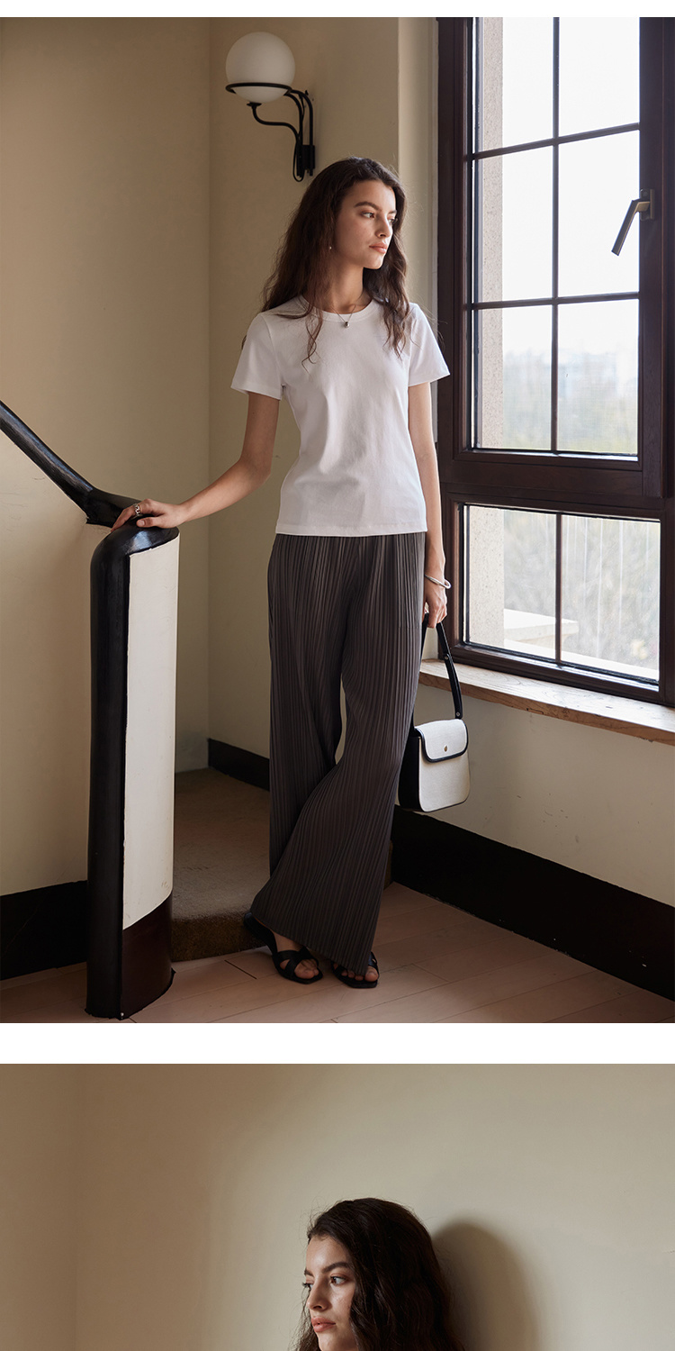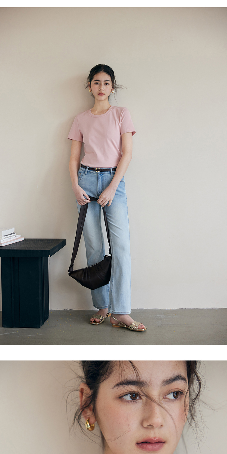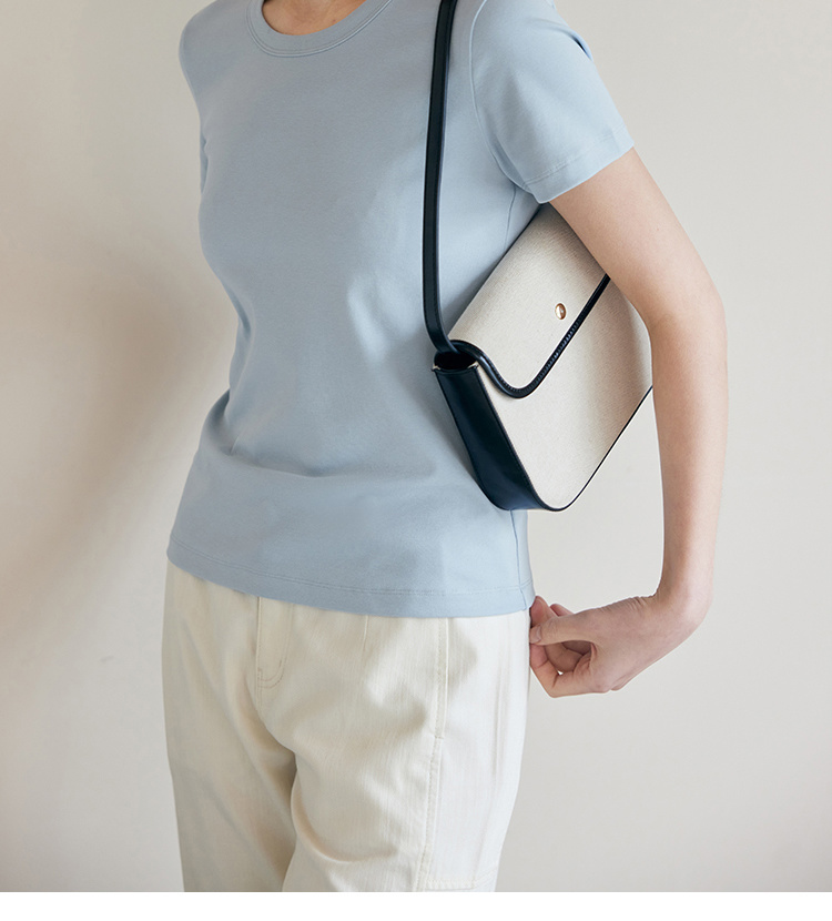 HeyDress纯色正肩T恤女夏季圆领修身弹力百搭半袖舒适感短袖上衣