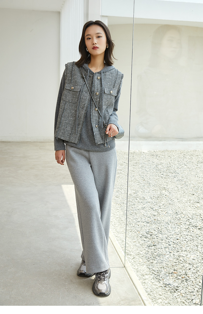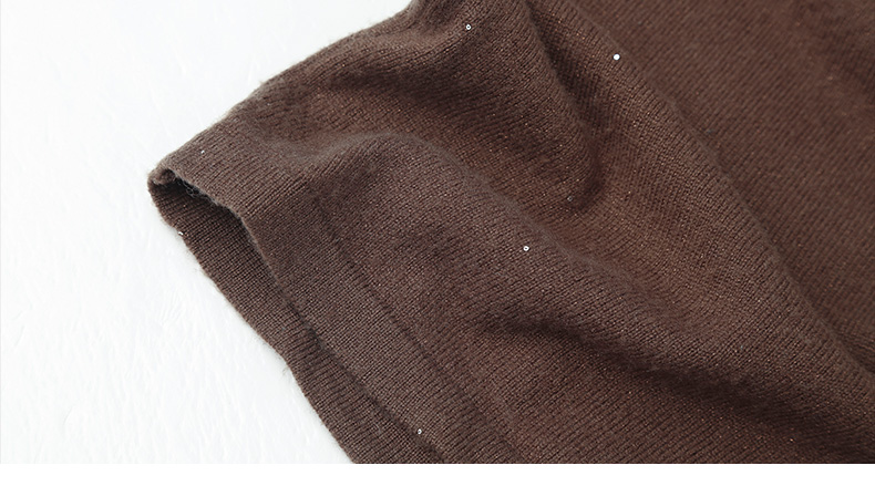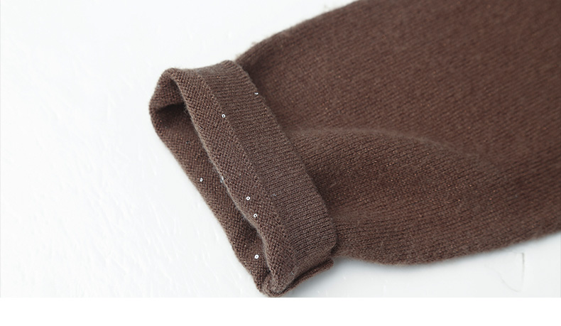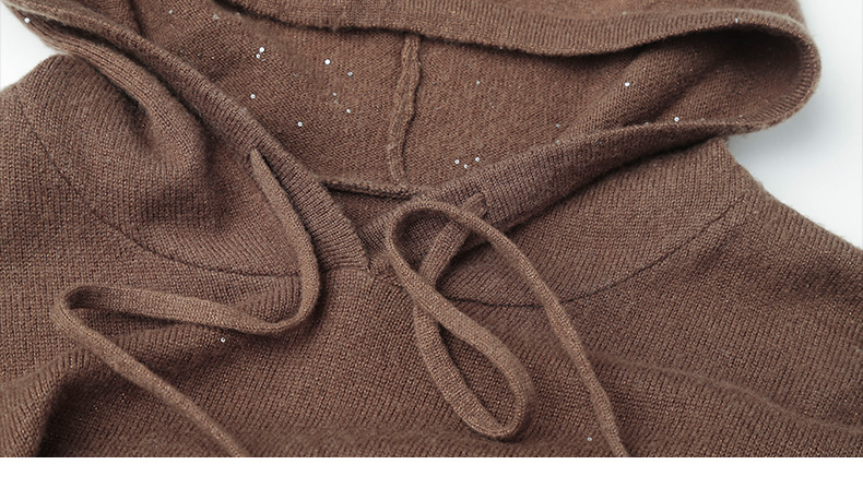 棕色连帽亮片针织卫衣 秋冬宽松显瘦带抽绳休闲长袖上衣