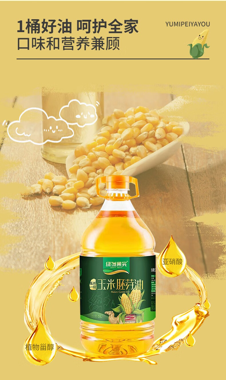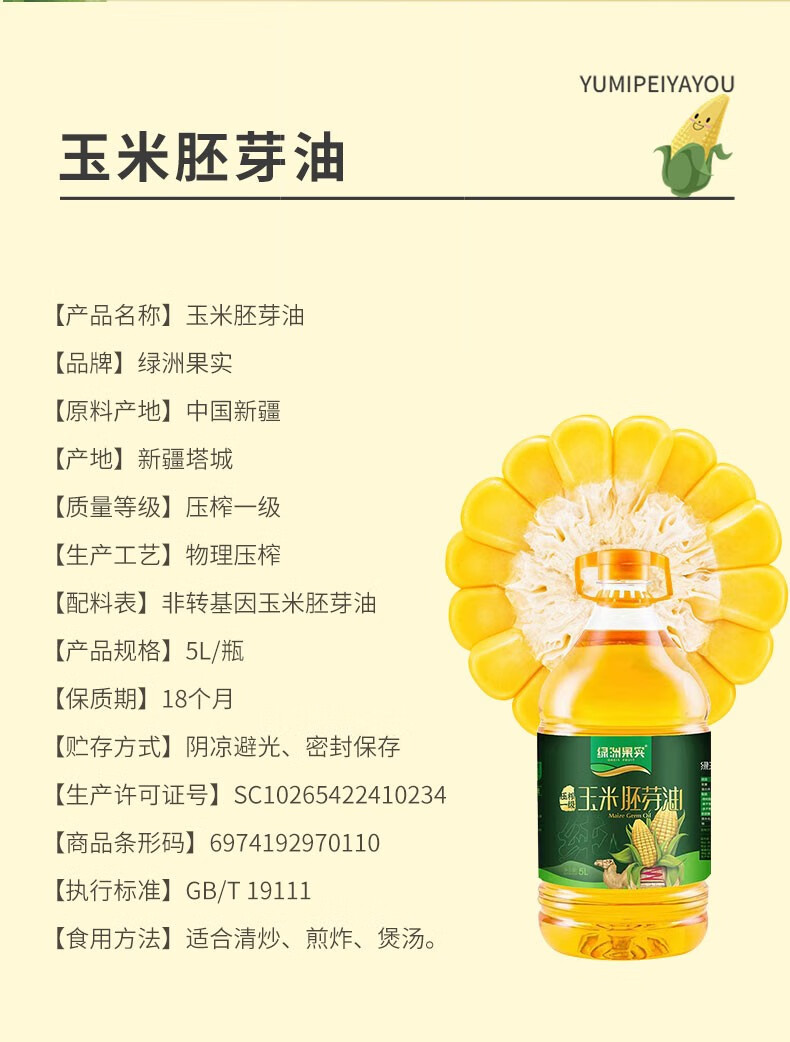 绿洲果实·压榨一级玉米胚芽油5L 非转基因家用食用油