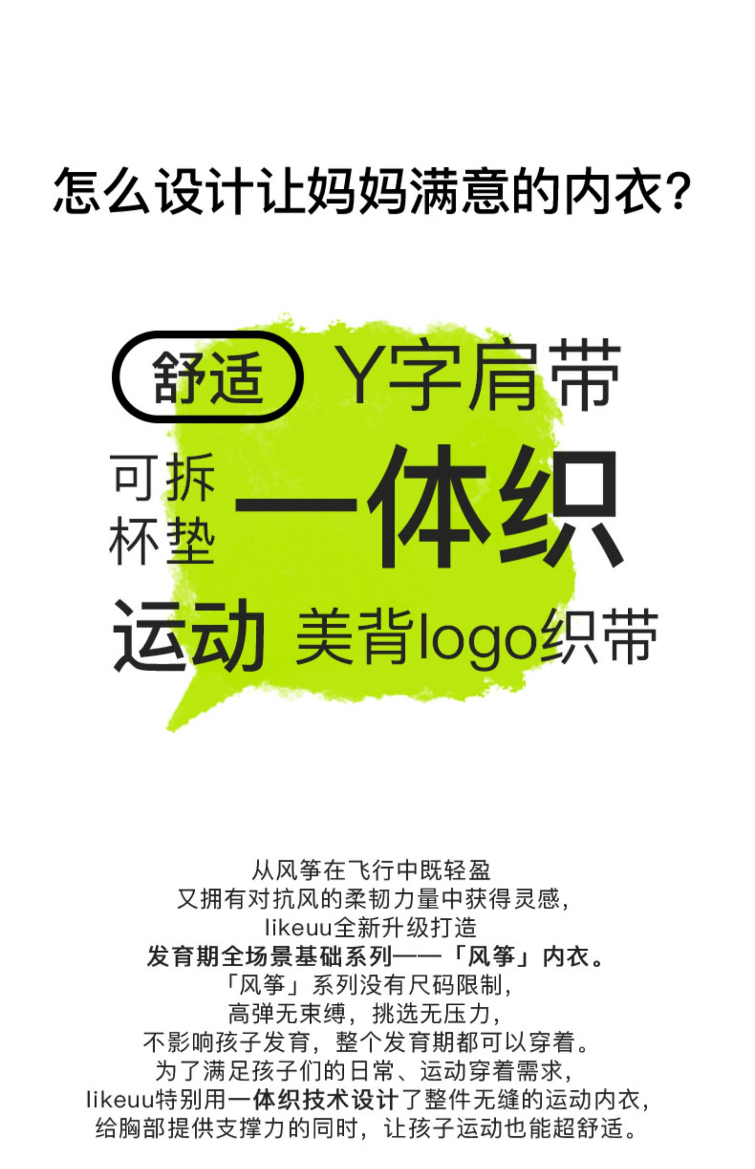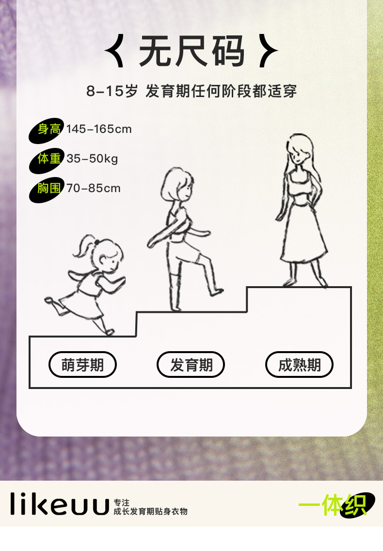- likeuu是专注于为6~15岁的青少年创造柔软、无束缚的成长体验,以好奇心为灵感的成长发育期贴身衣物品牌。likeuu的产品覆盖内衣、内裤、保暖衣、家居服、运动等品类。