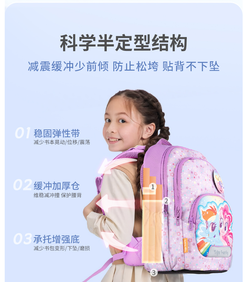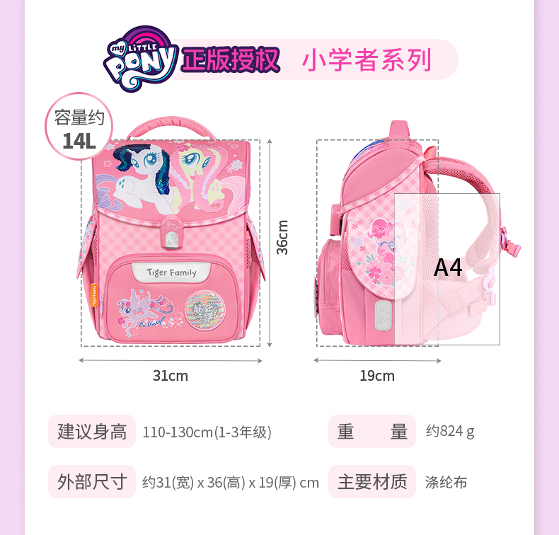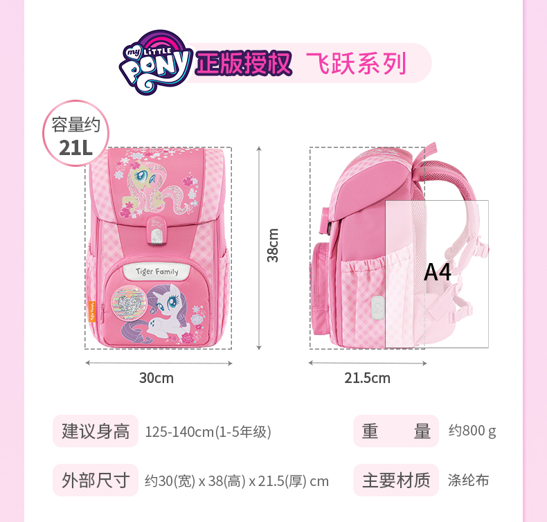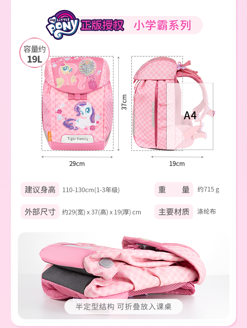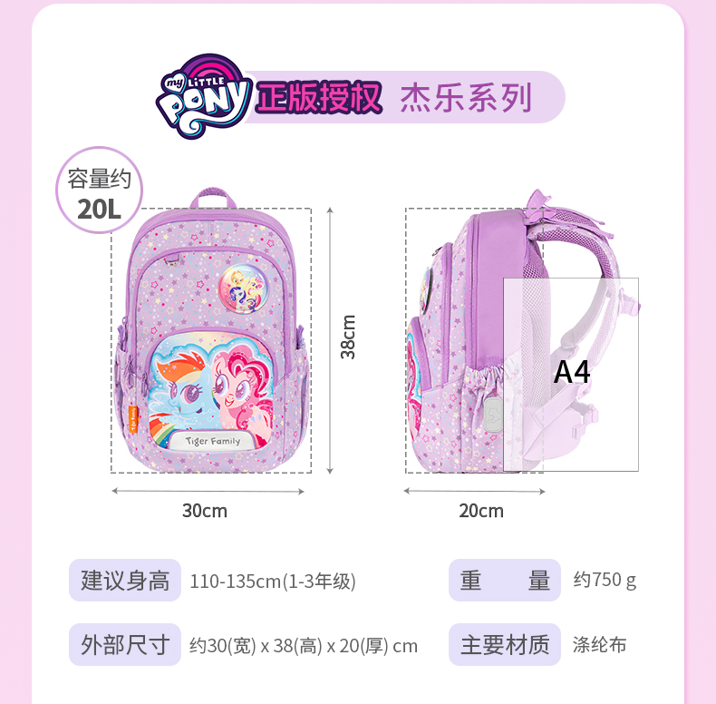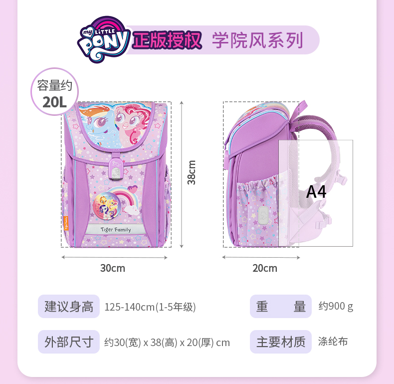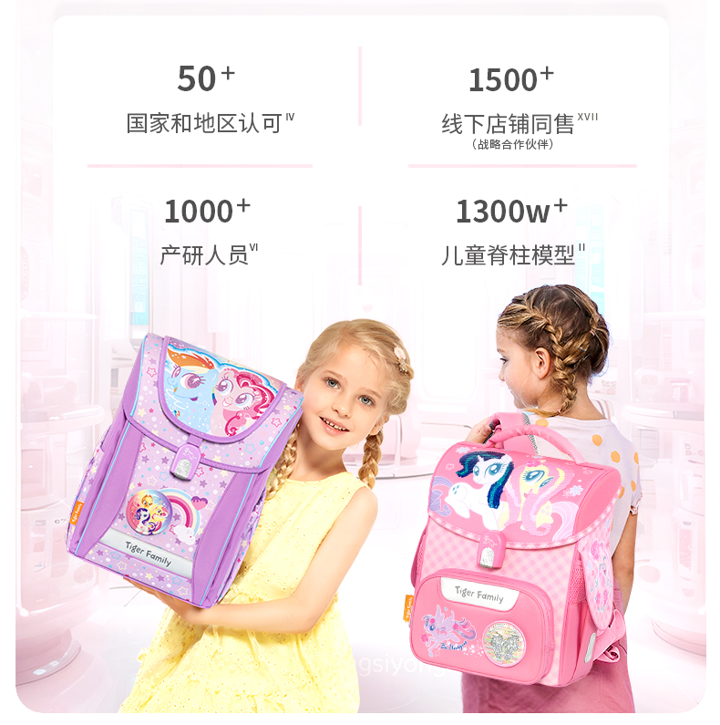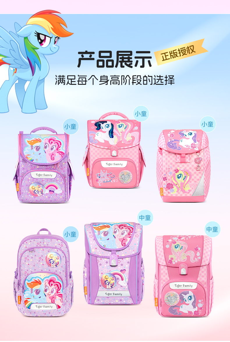 tigerfamily虎米 1-5年级小马宝莉联名男女书包儿童小学生护脊双肩背包