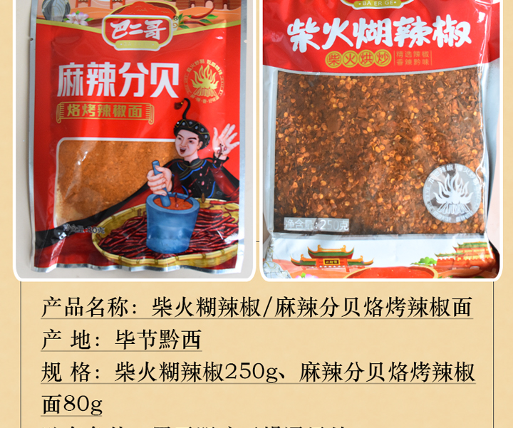 毕节黔西【巴二哥柴火糊辣椒】精选原产地原材料 独立包装 香气袭人 全国包邮部分地区不发货