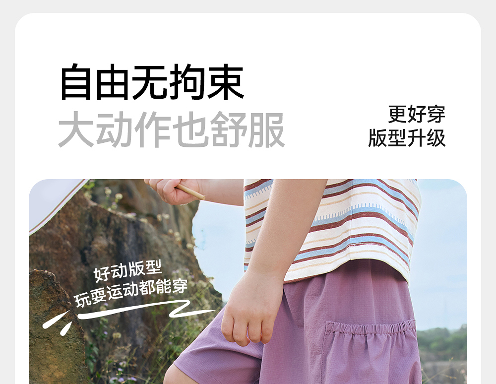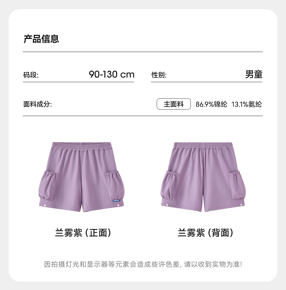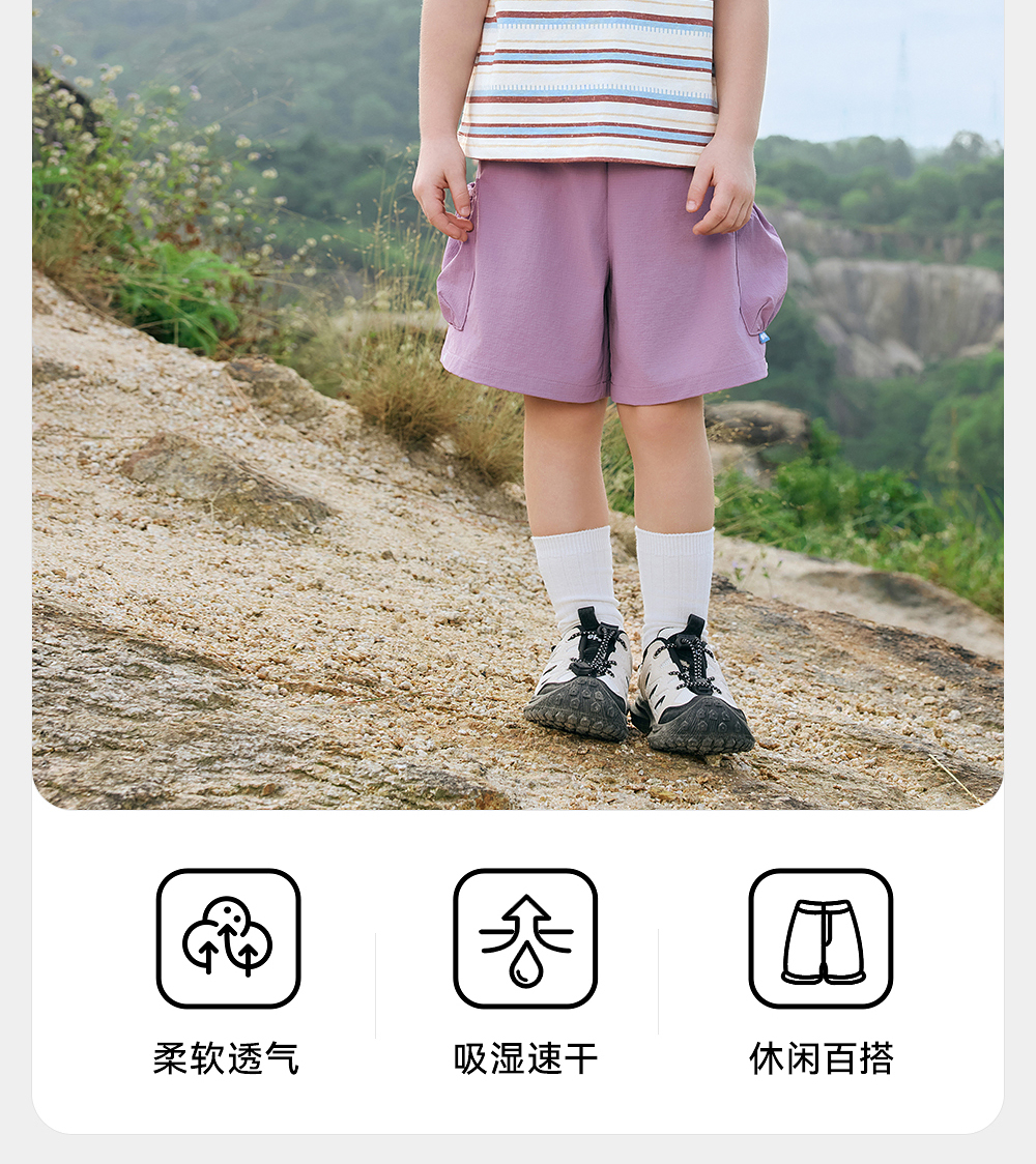 英氏儿童休闲裤夏季男童吸湿速干短裤中大童大口袋裤子2025新款