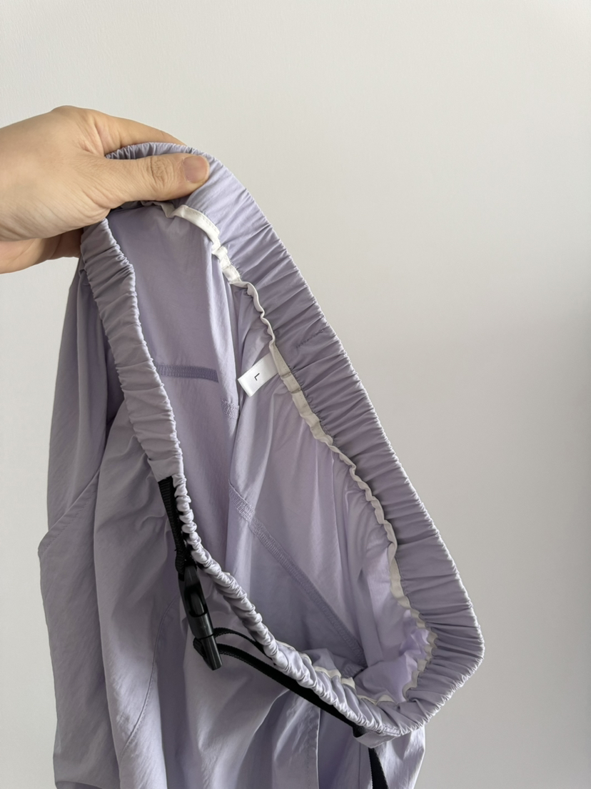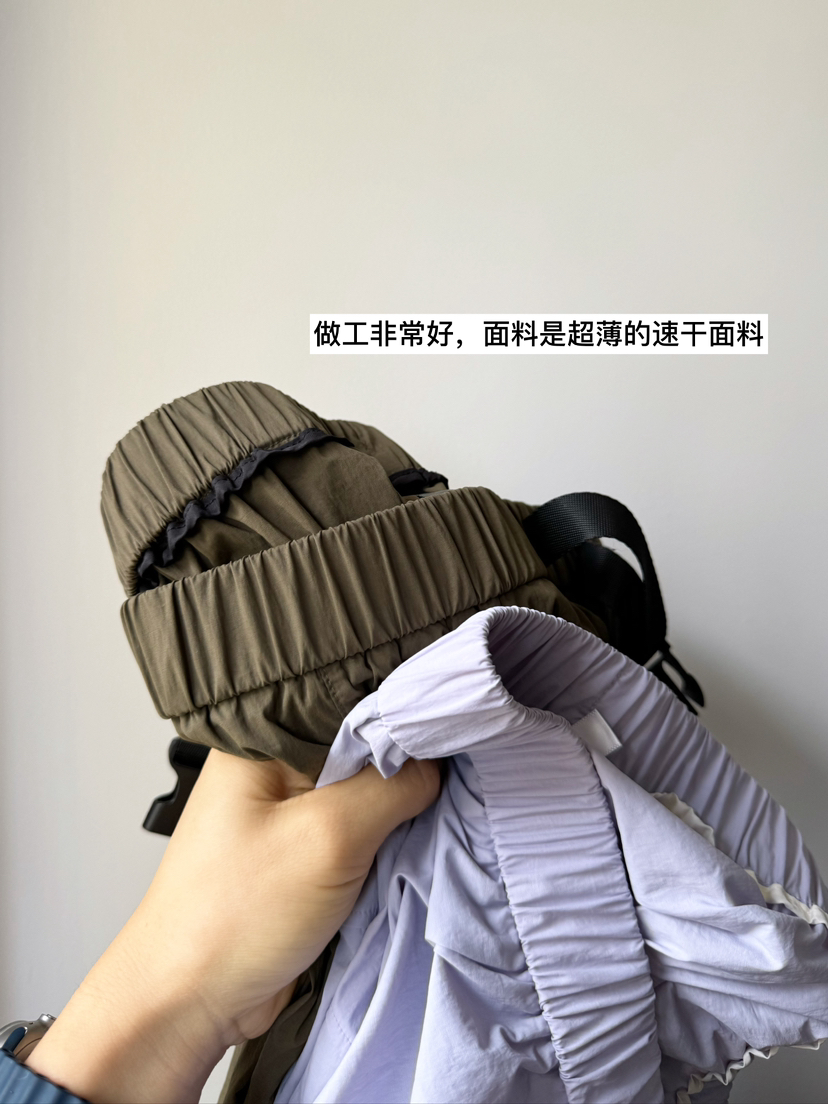 面料:95%锦纶 5%氨纶 【超薄的速干面料】和夏天的工装半裙面料类似。浅浅紫需要穿浅色内裤,饱和度不是那么高的紫色,很百搭!!