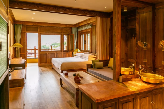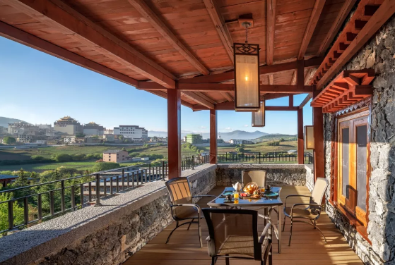下午 午餐后沿214国道前行,欣赏金沙江边的纳西族村庄田野;经峡谷盘山而上,若天气好,可远观哈巴雪山。进入藏地,沿洋塘曲驶入小中甸传统村庄,一条细流从整个村落群中缓缓流过,由古老的藏族村落开始,一路欣赏河畔两岸白云蓝天和鲜花草甸等迷人的高原自然风光;抵达香格里拉入住松赞绿谷山居/香格里拉林卡