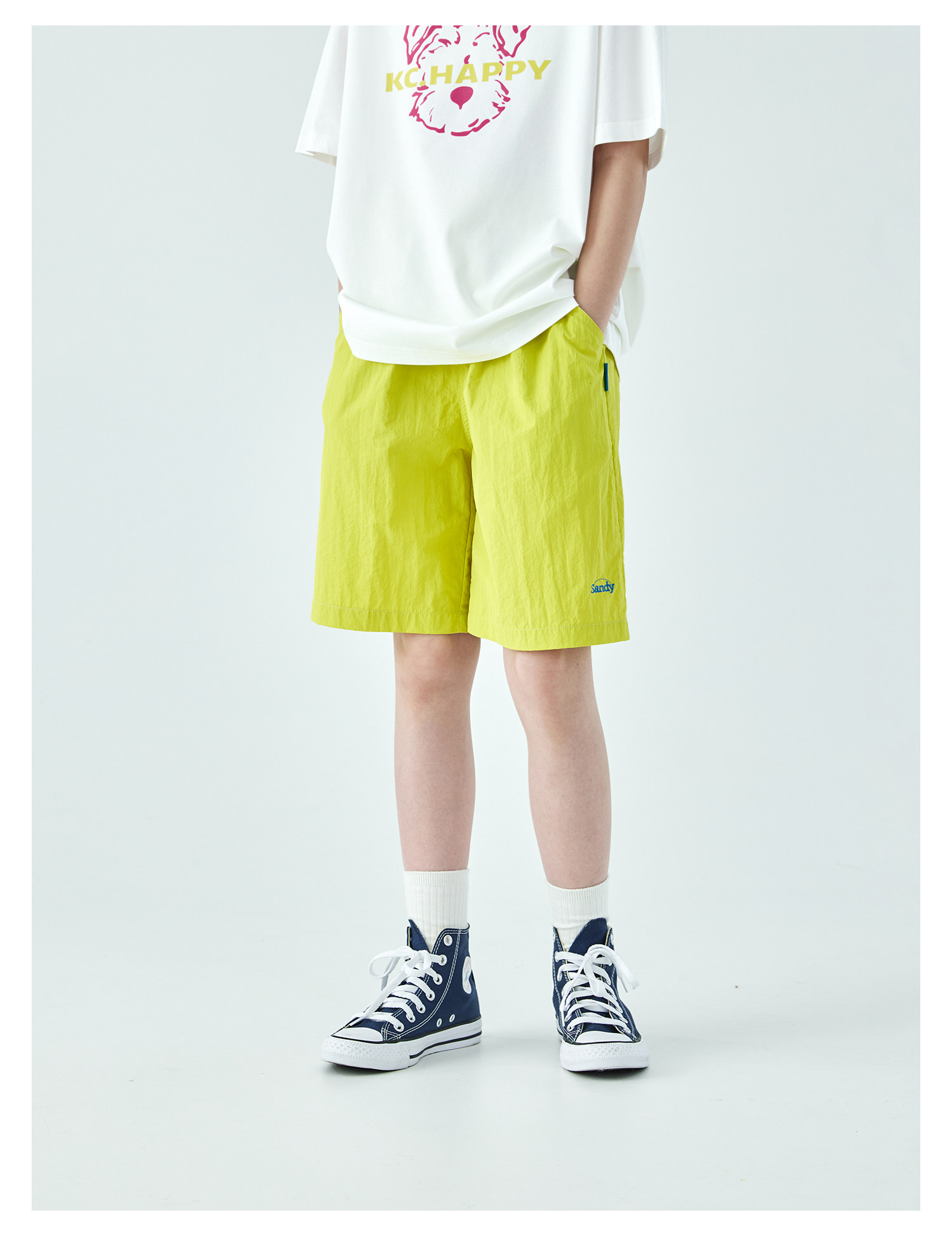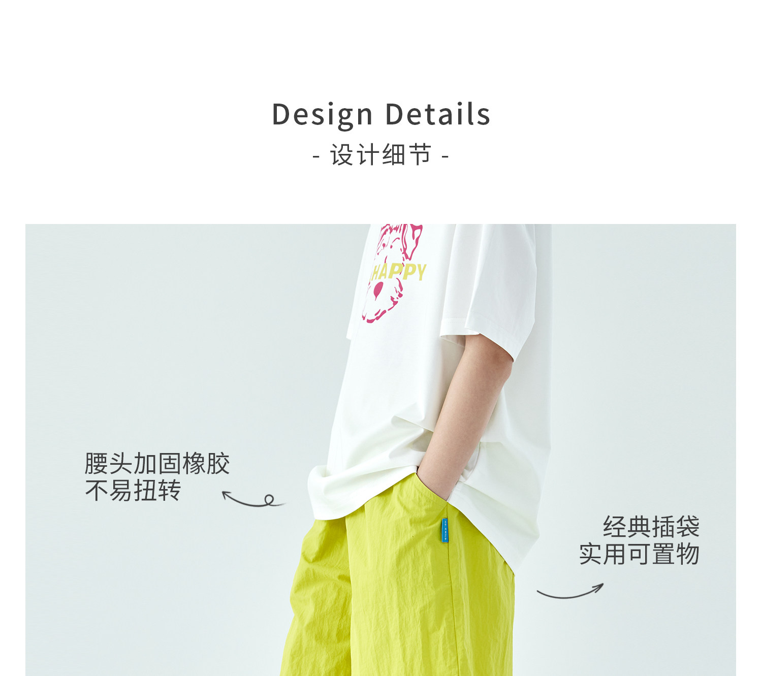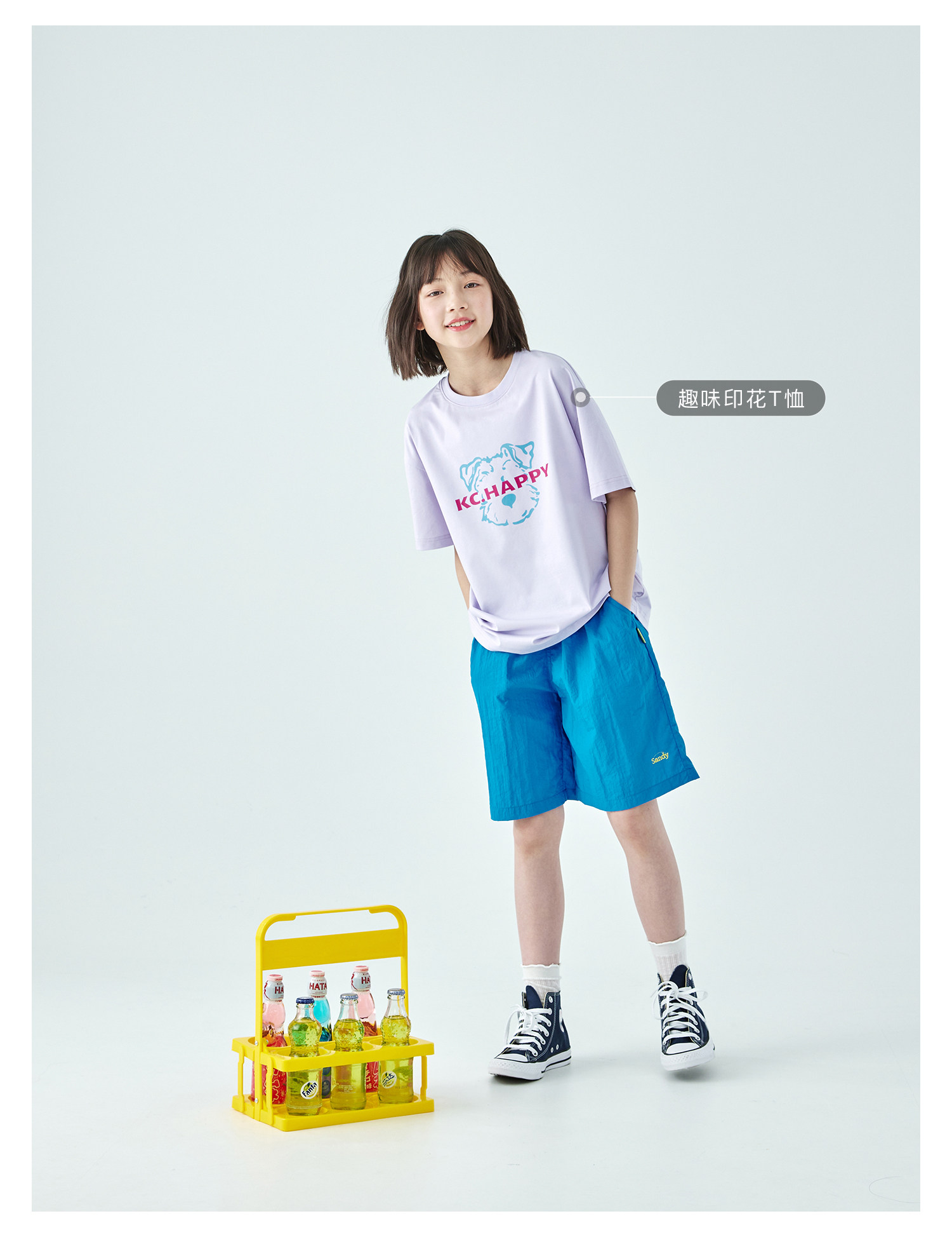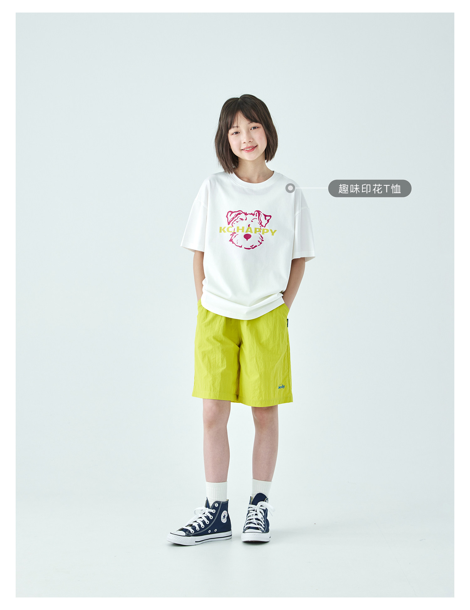 棵初26年夏季新款中大女童轻量宽松机能短裤撞色织标下摆刺绣裤子