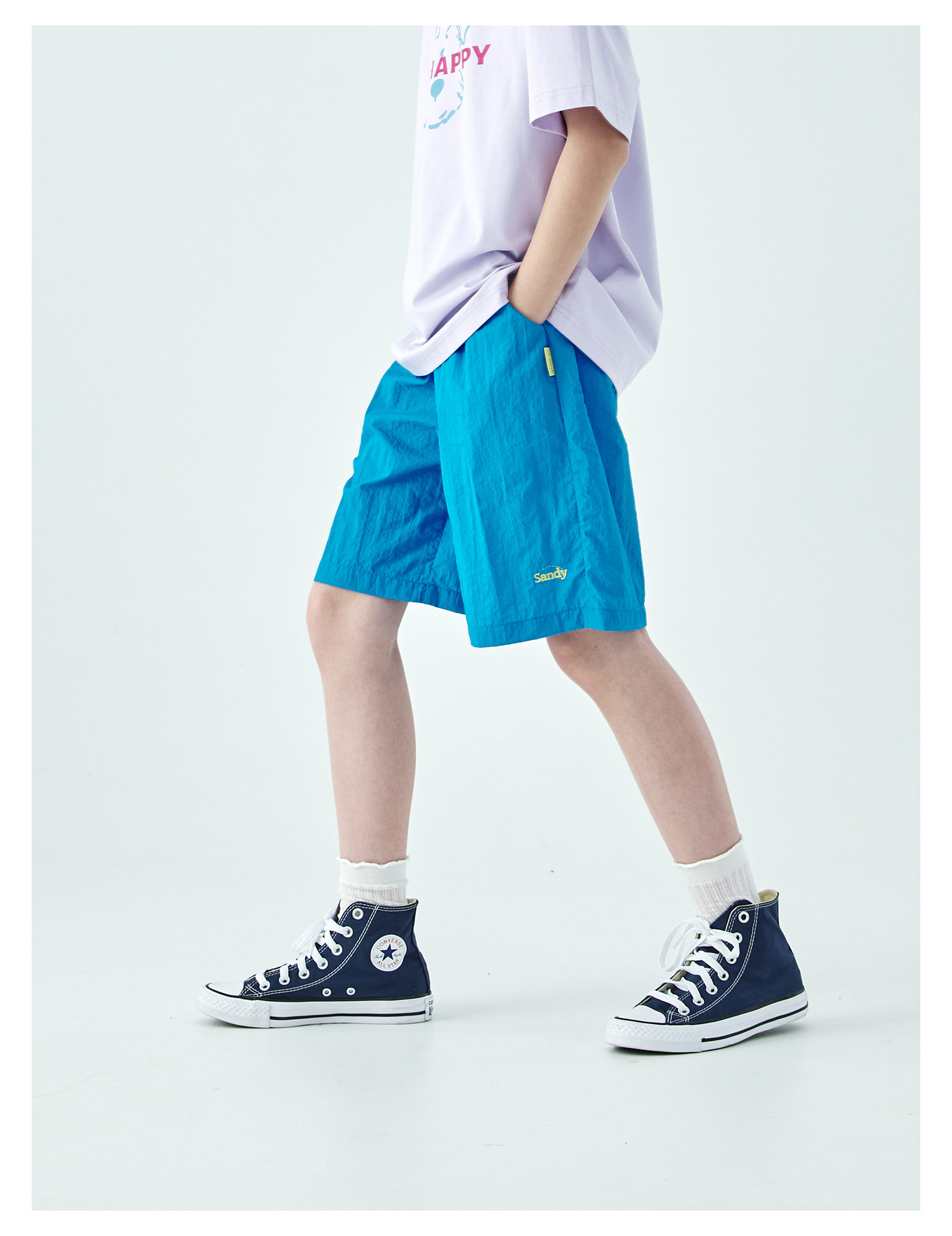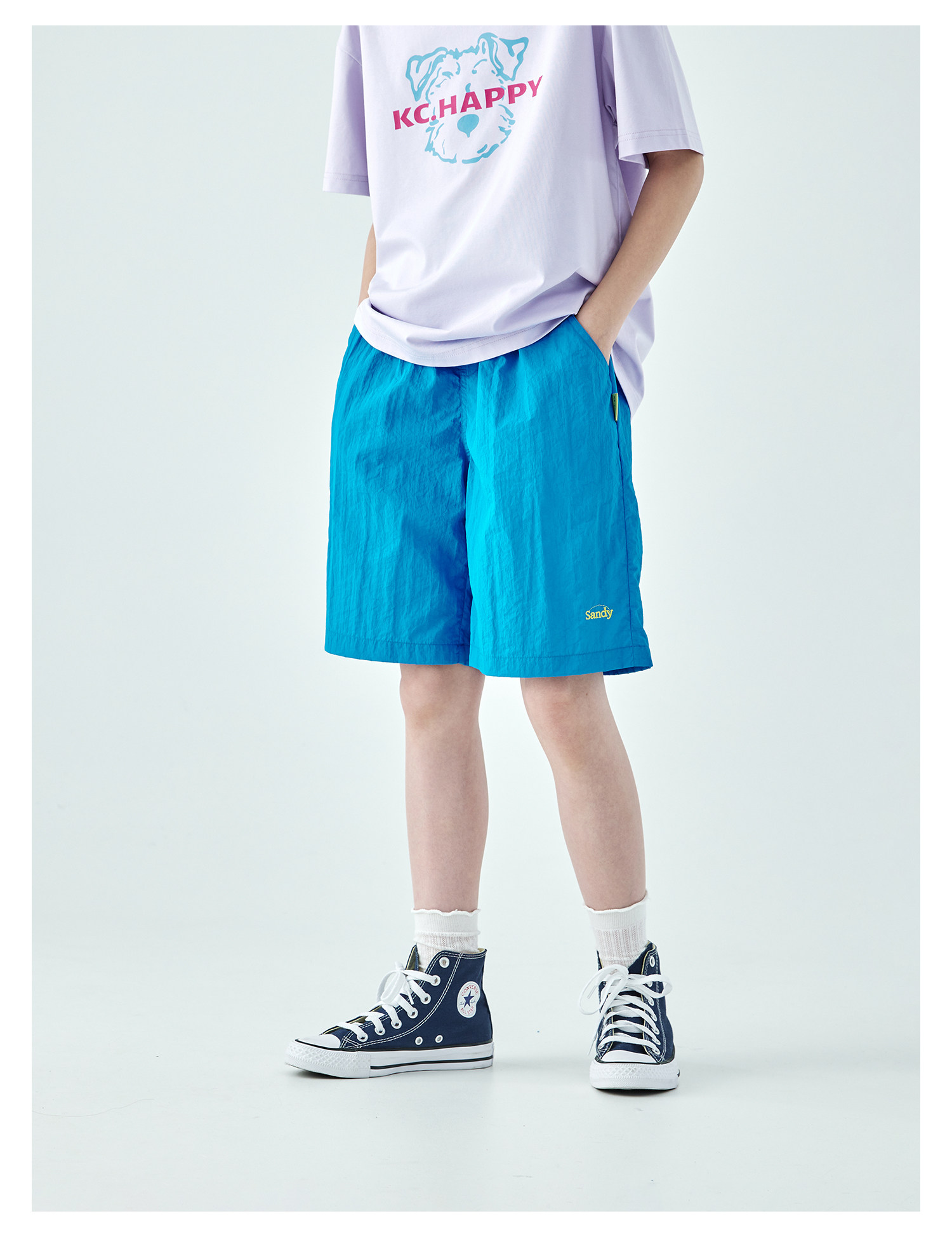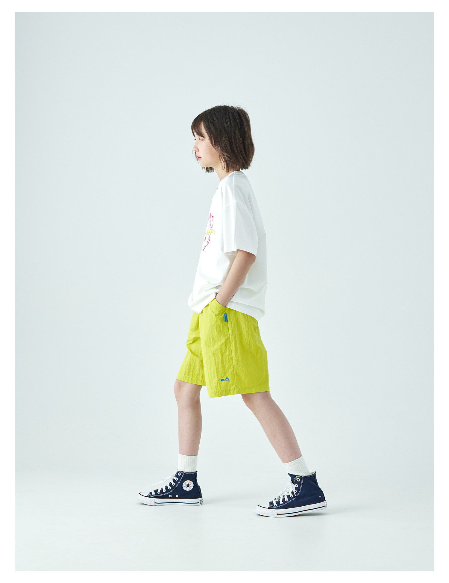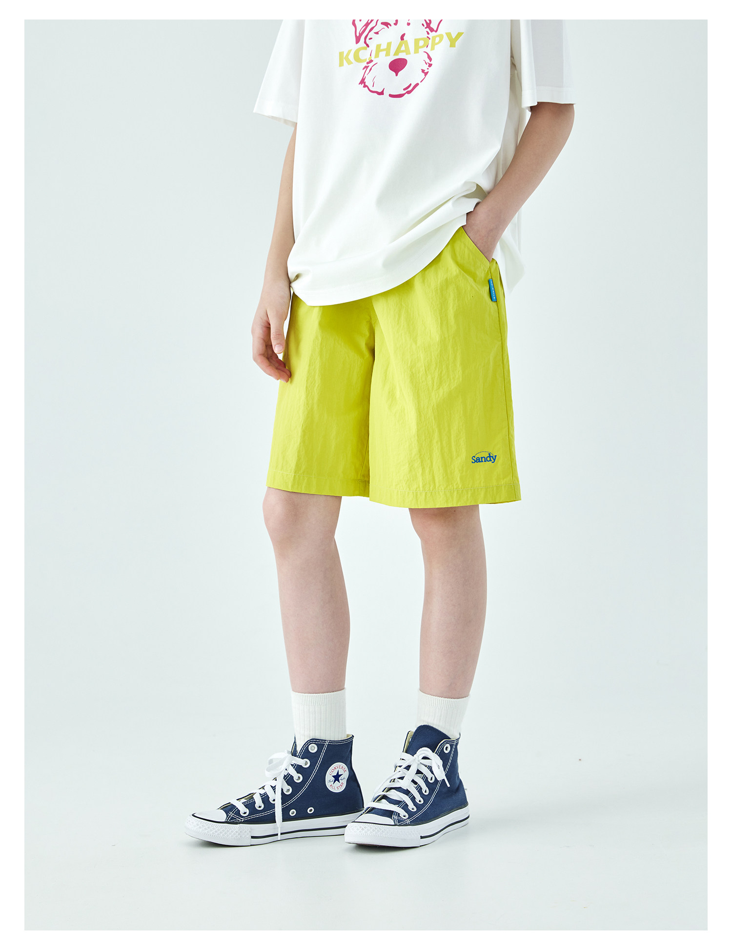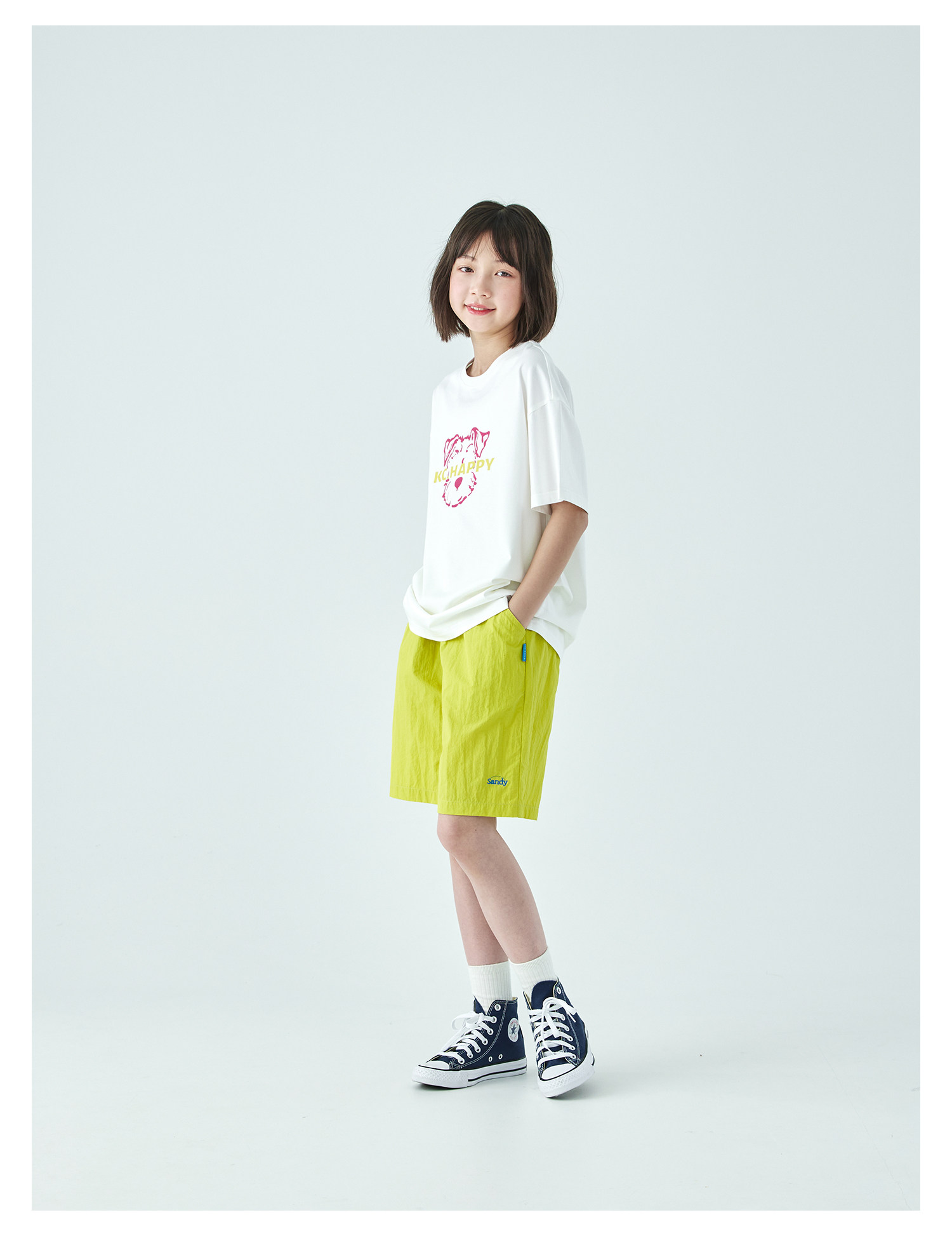 棵初26年夏季新款中大女童轻量宽松机能短裤撞色织标下摆刺绣裤子