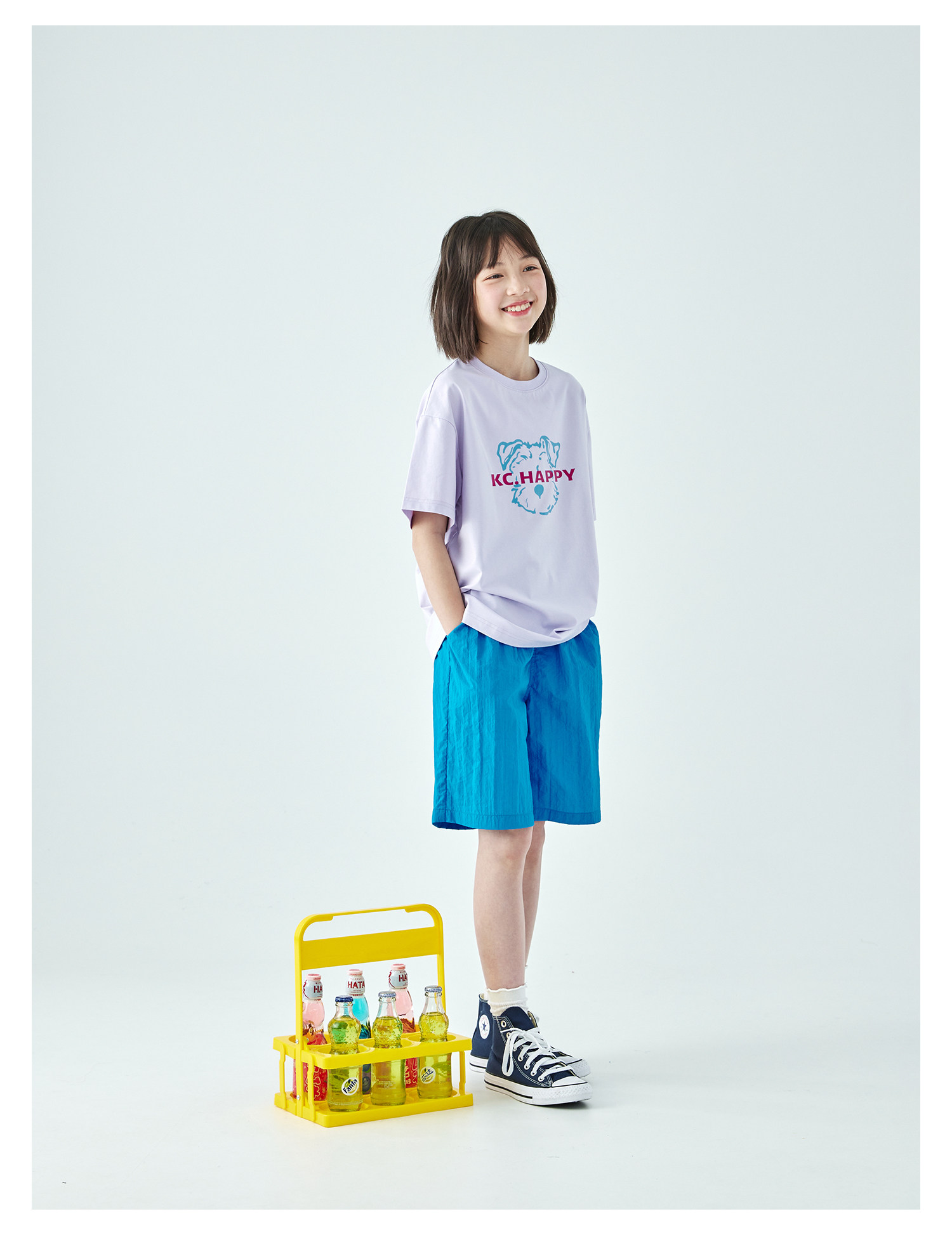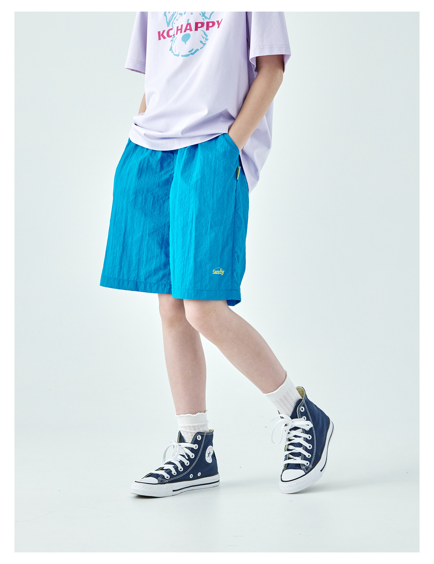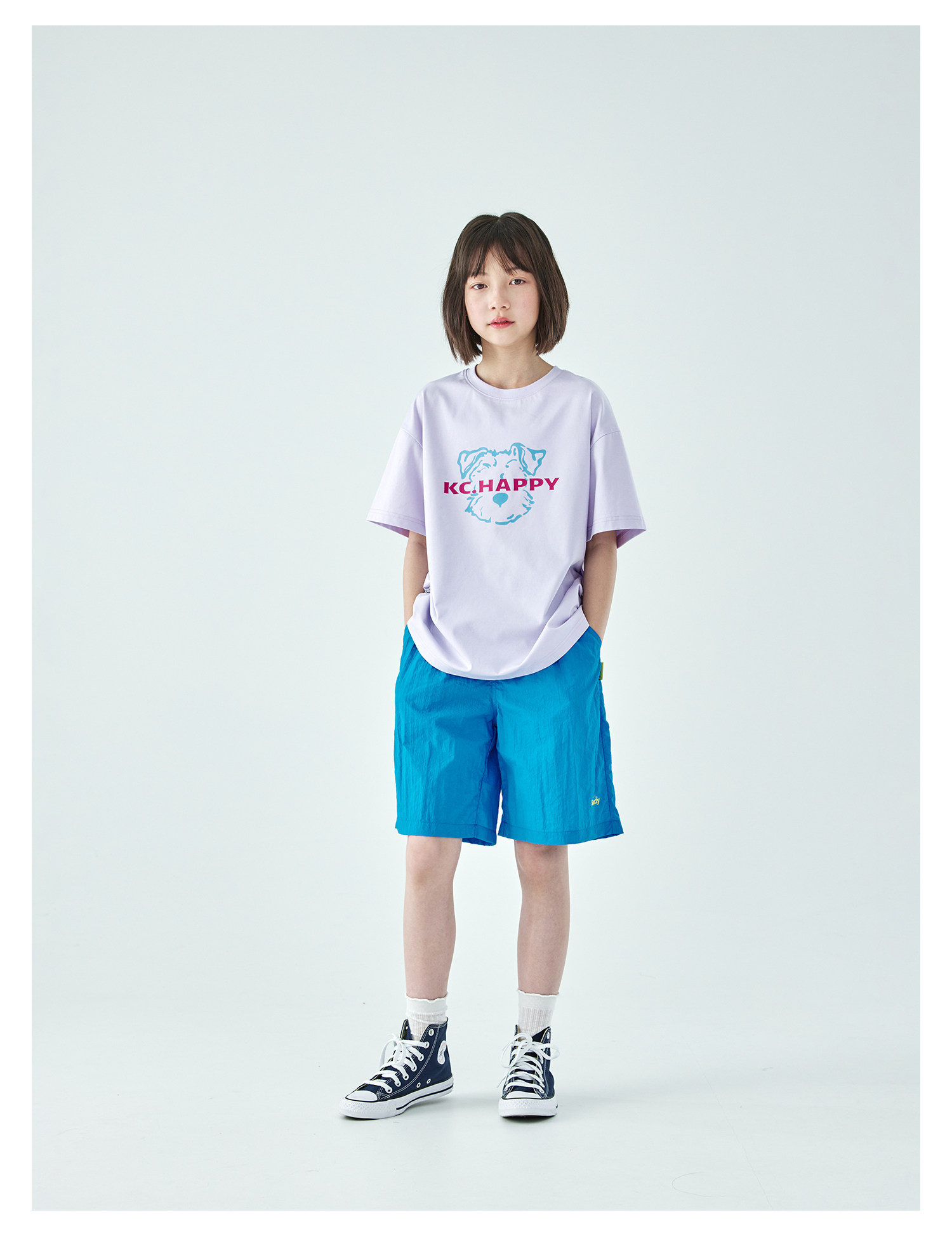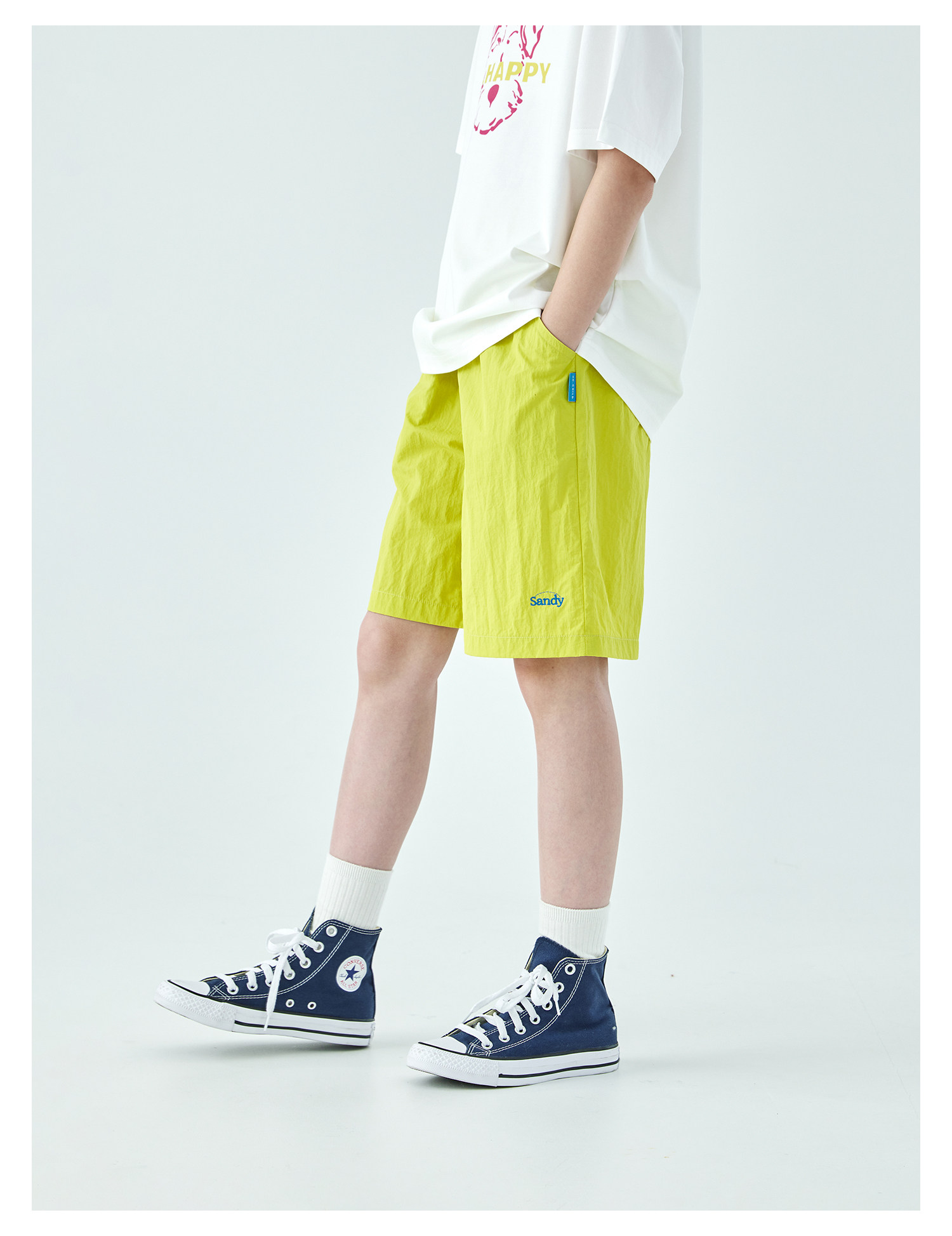 棵初26年夏季新款中大女童轻量宽松机能短裤撞色织标下摆刺绣裤子