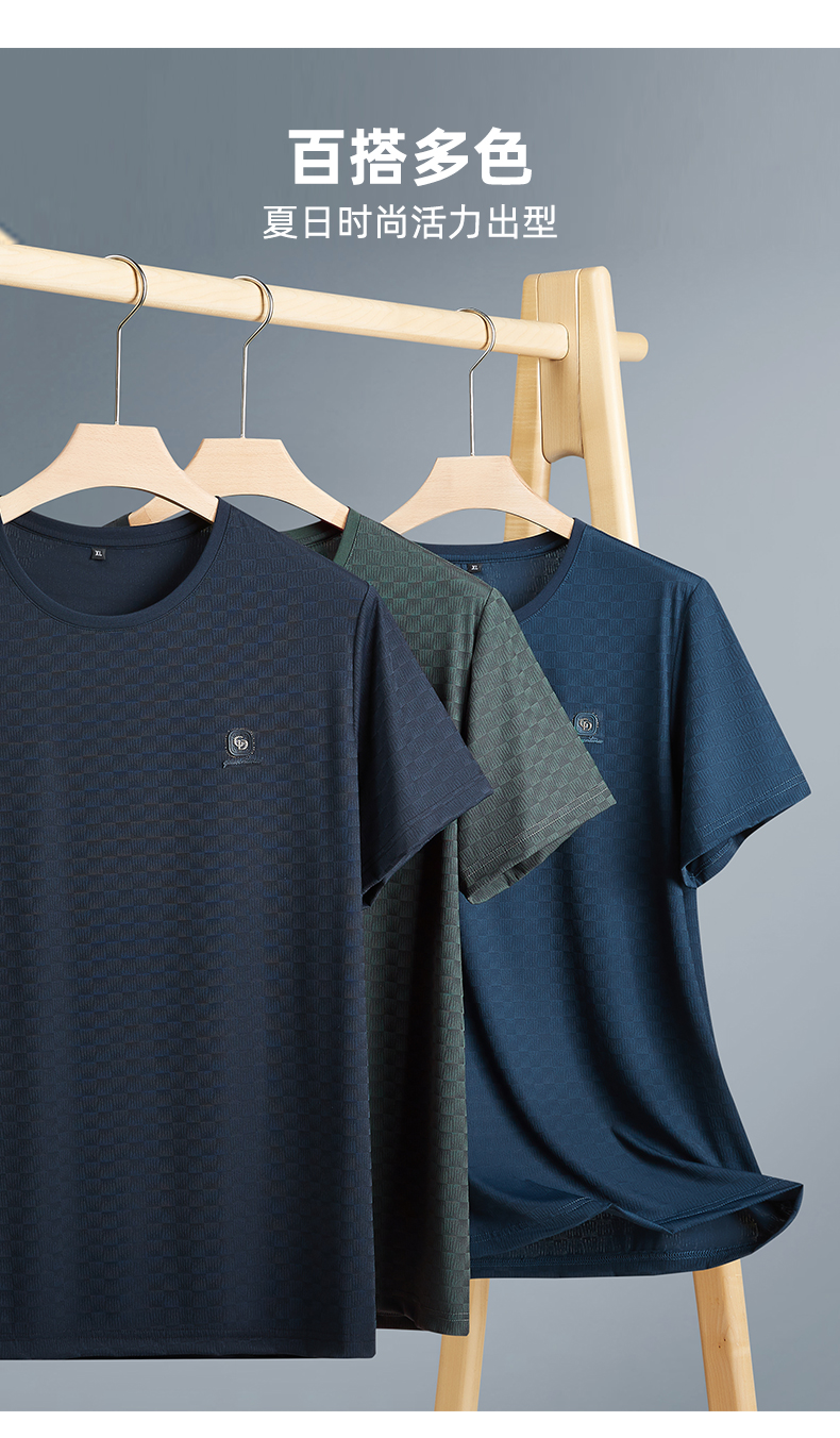 【弹力】【DWN】大依优型大码男装短袖T恤加肥加大宽松休闲冰丝打底夏季胖子男士上衣