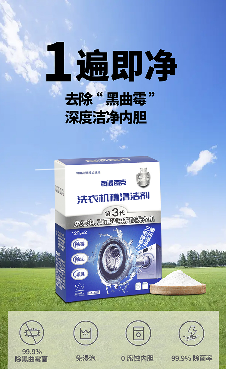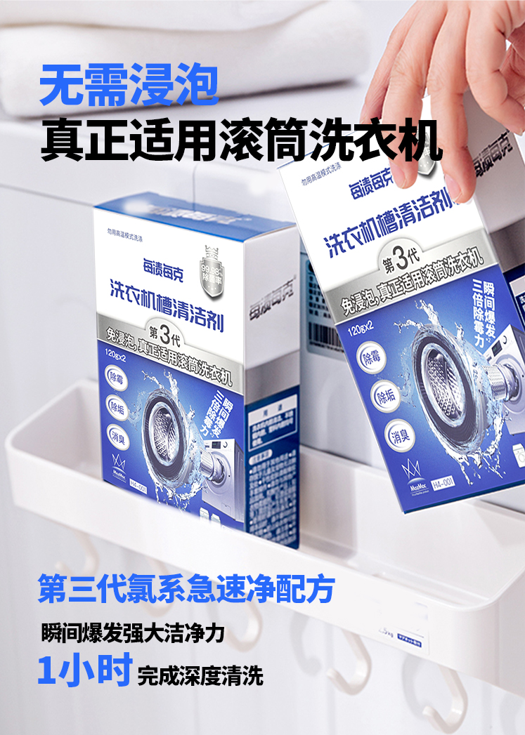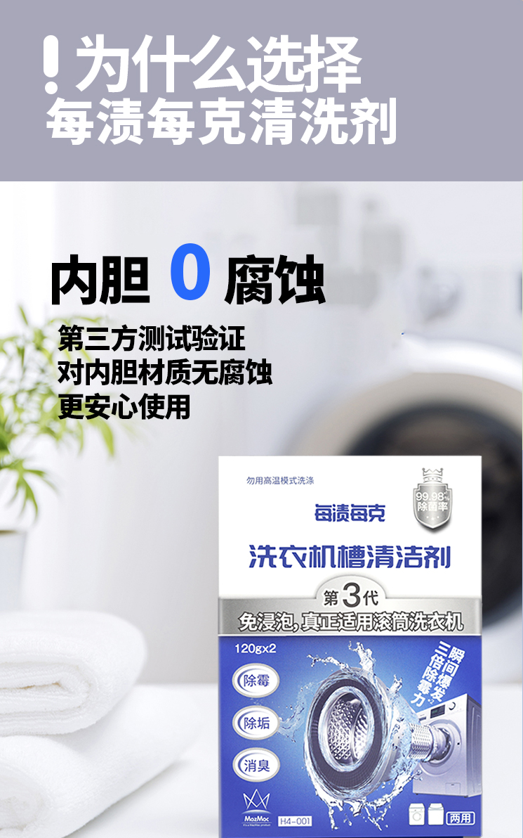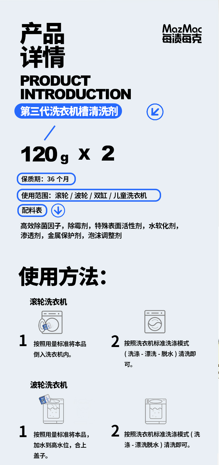 【免浸泡无死角深度清洁】每渍每克MazMac洗衣机槽清洁剂 适合滚筒/波轮洗衣机 免浸泡深度去污去菌 无需捞污渍 除臭除霉除垢 120g*2/盒