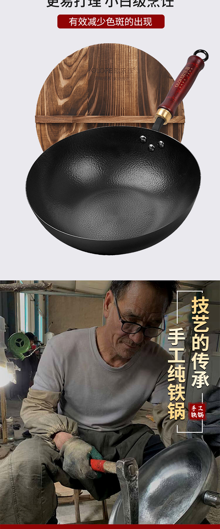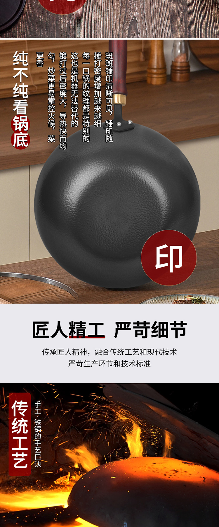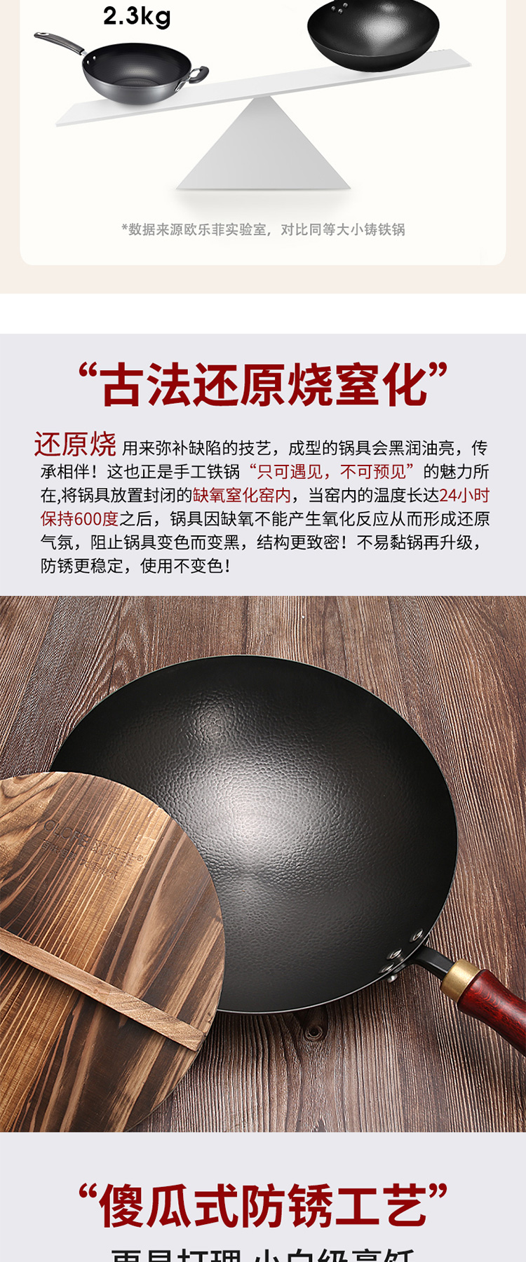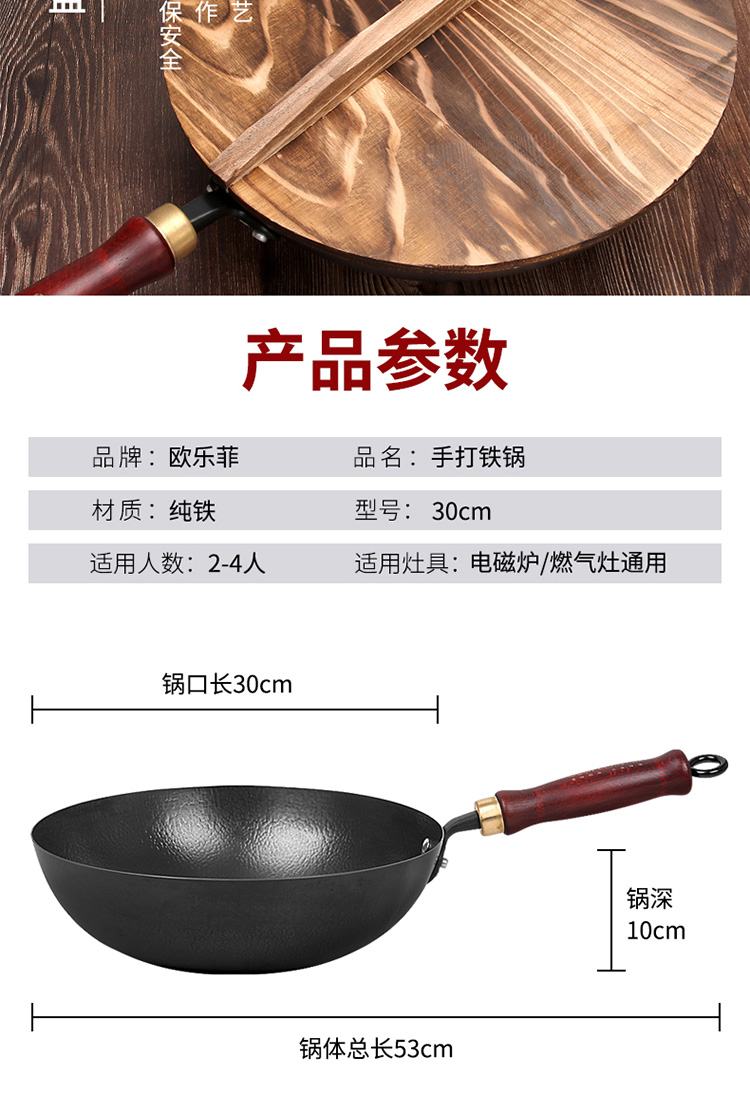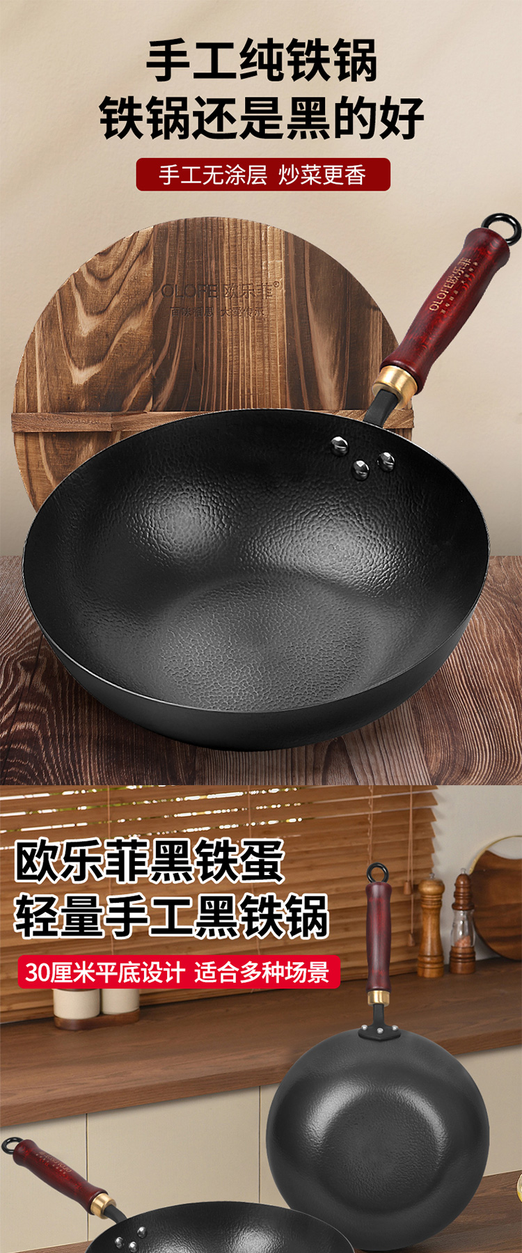 【欧乐菲】章丘铁锅黑铁蛋手工锻打炒锅30cm