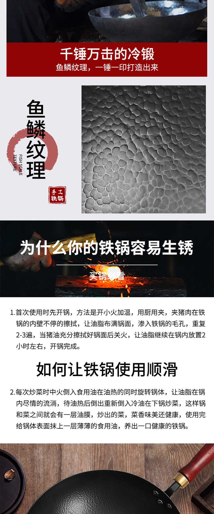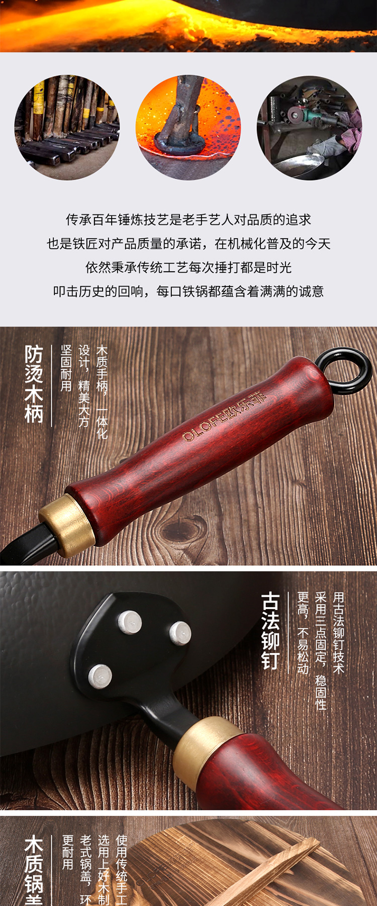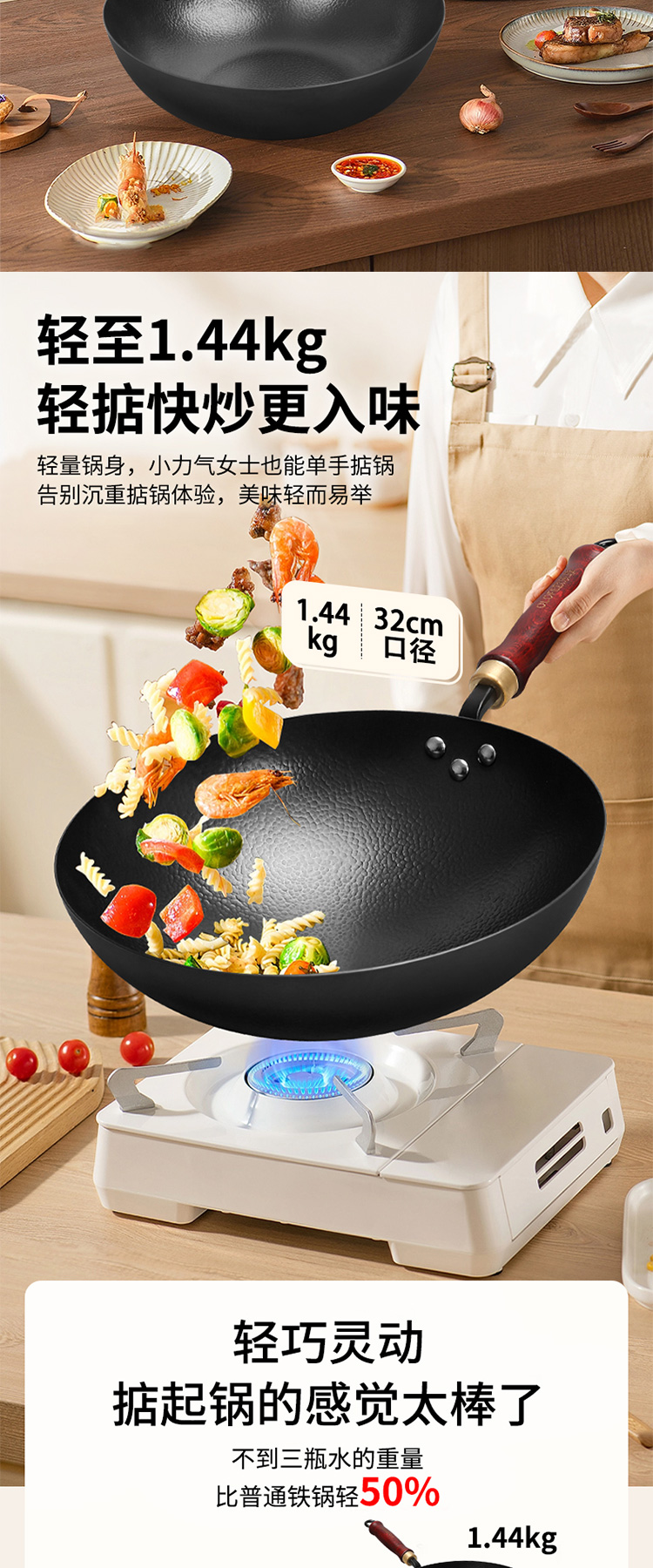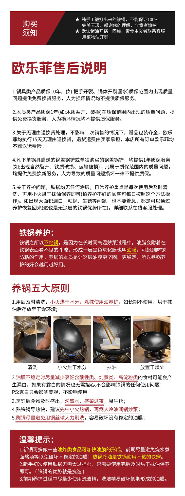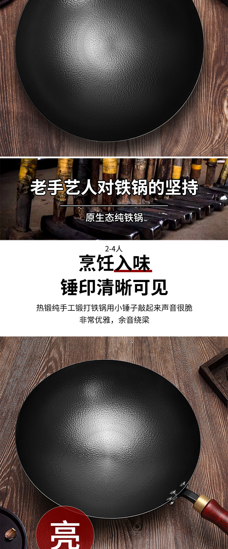 【欧乐菲】章丘铁锅黑铁蛋手工锻打炒锅30cm
