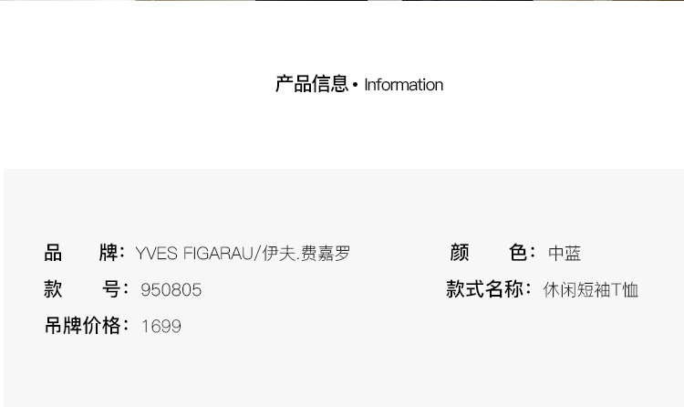 YvesFigarau伊夫·费嘉罗夏季新款休闲短袖T恤950805