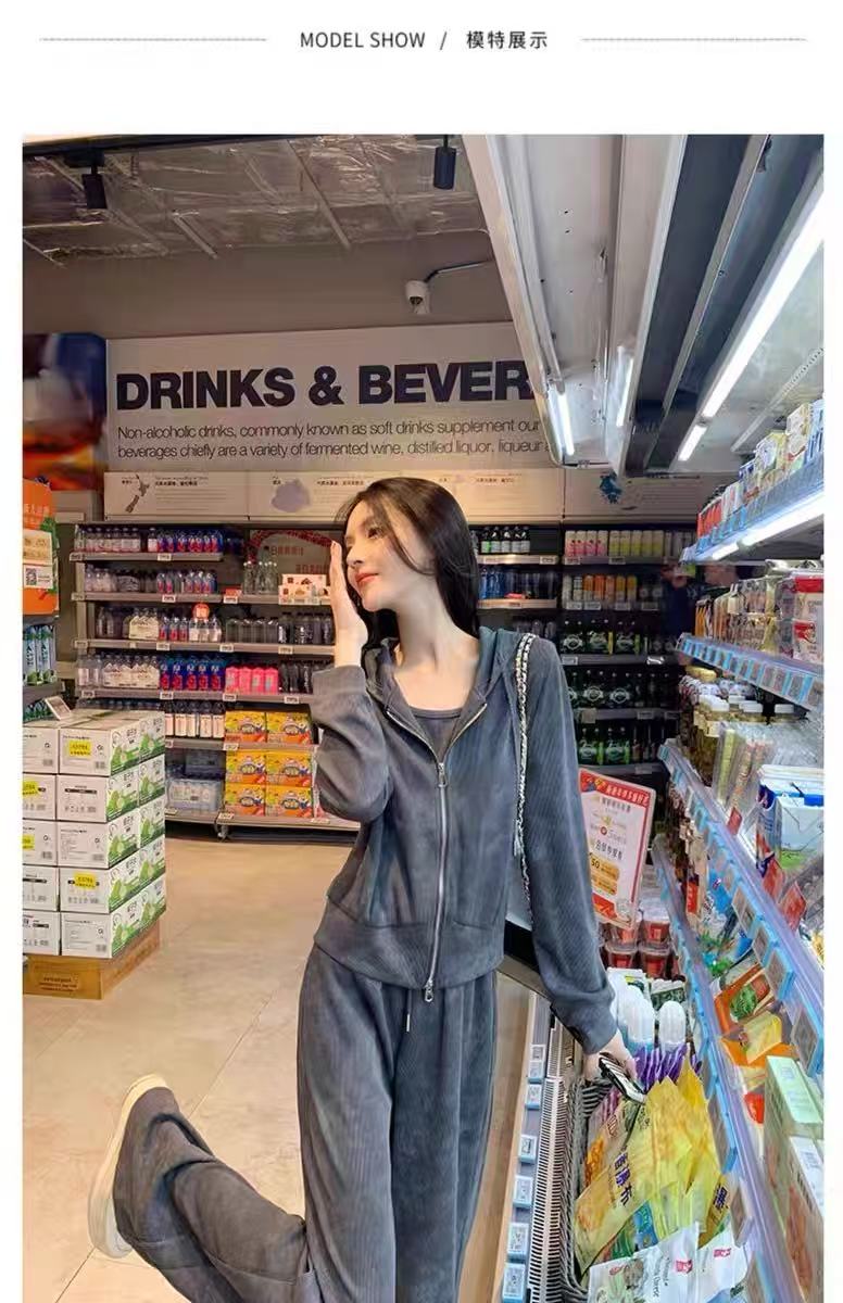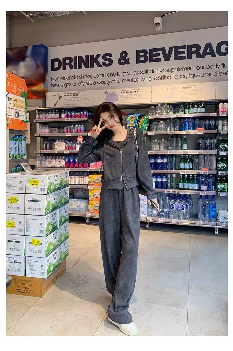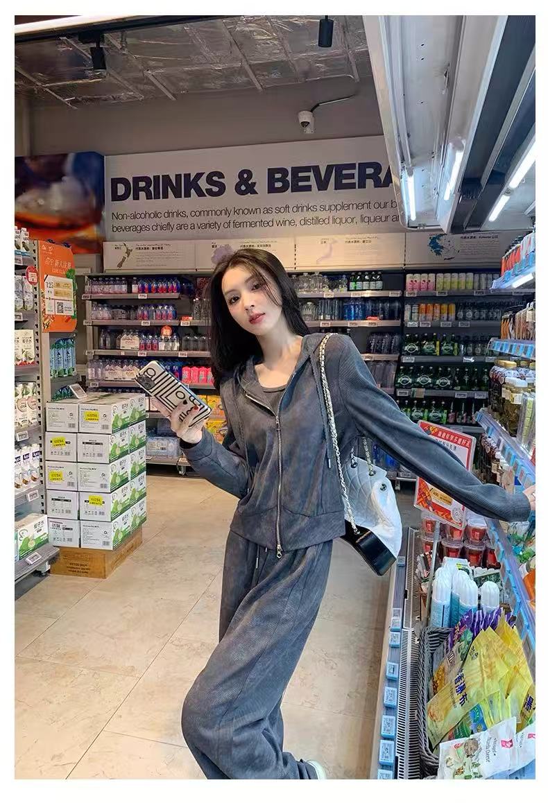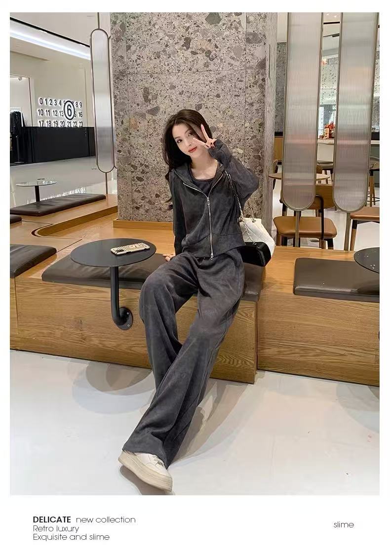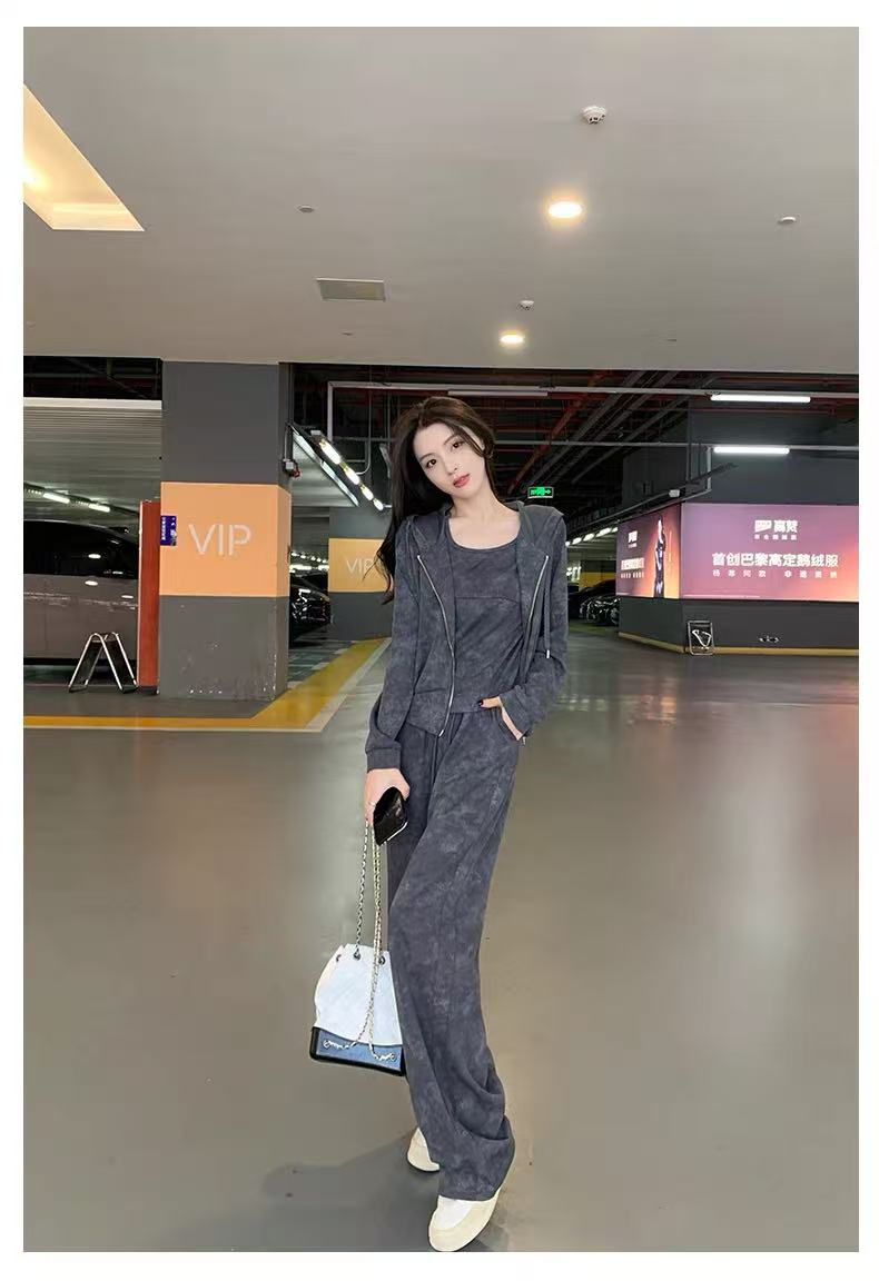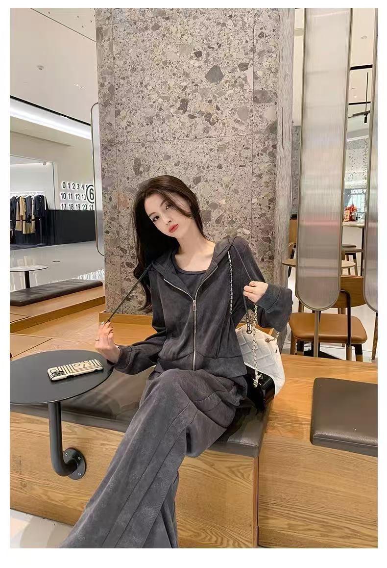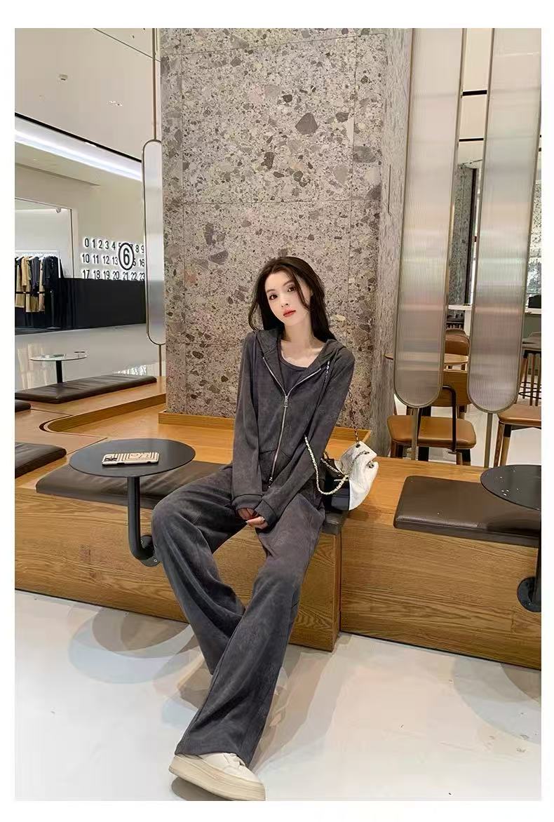活动爆款【自营】衣周期~(三件套)Q39 灰色休闲外套➕背心➕休闲直筒裤细纹坑条套装-喜出