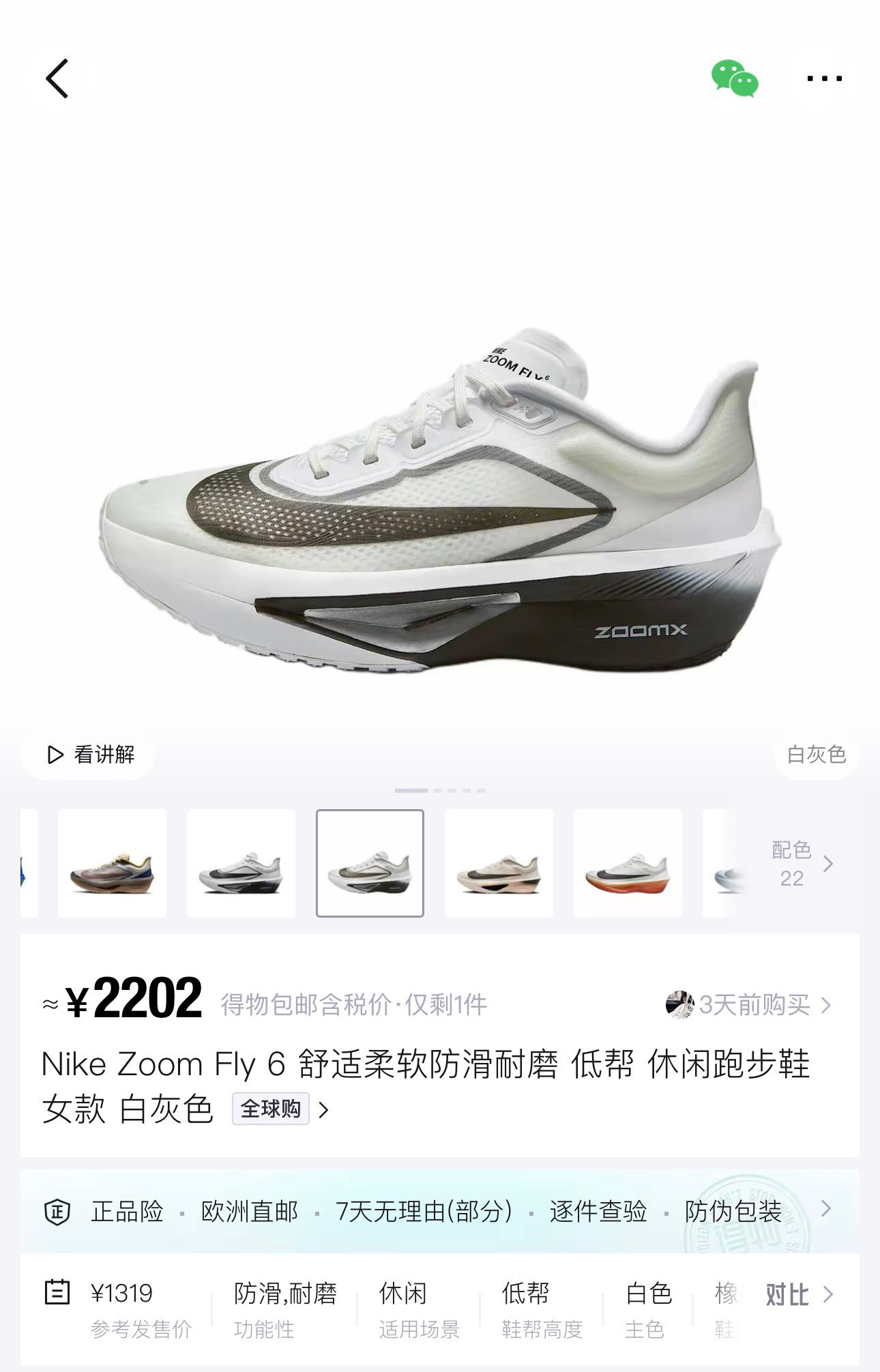 大厂出货,细节处理的非常完美,一眼高级,经过多层结构设计 脚感非常舒适 轻盈质地 内全掌穿一天也不会累,日常休闲 跑步 打球 锻炼 都可以轻松兼顾,四季都可以穿!最新款 NIKE ZOOM FIY 6”咱家性价比超高!老粉都知道我对鞋子的要求很高,咱上的所有鞋子我都会先自留实穿几个周,不好的再便宜也不会推荐你们,所以在我这遇到鞋子只要喜欢就可以闭眼入,性价比绝对够高,咱就有这个自信~