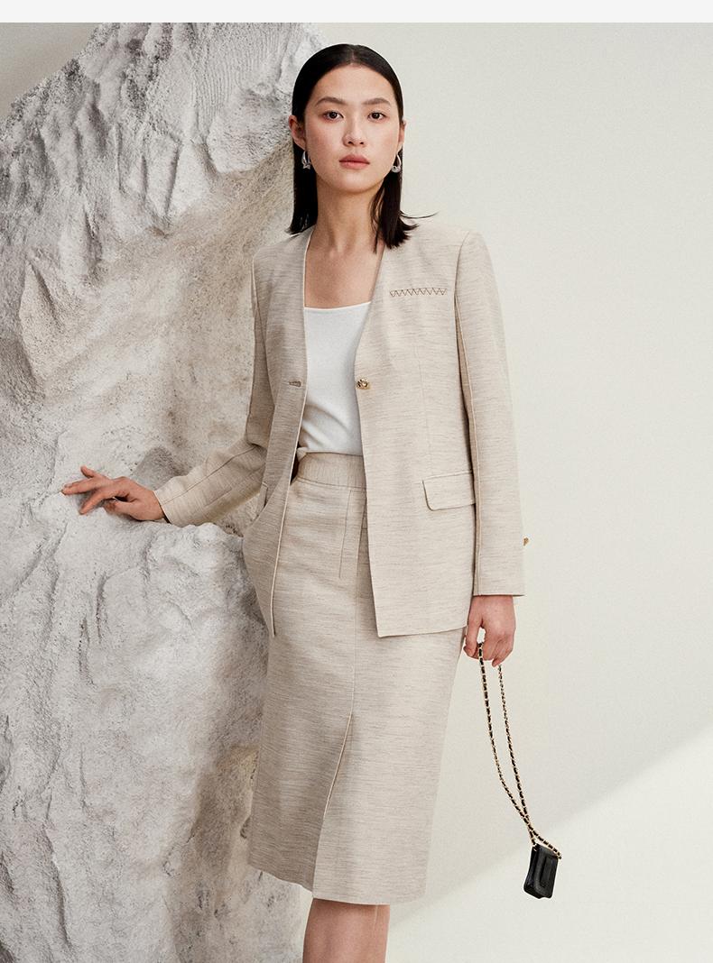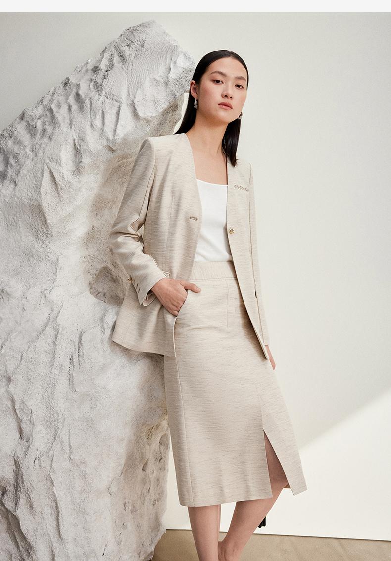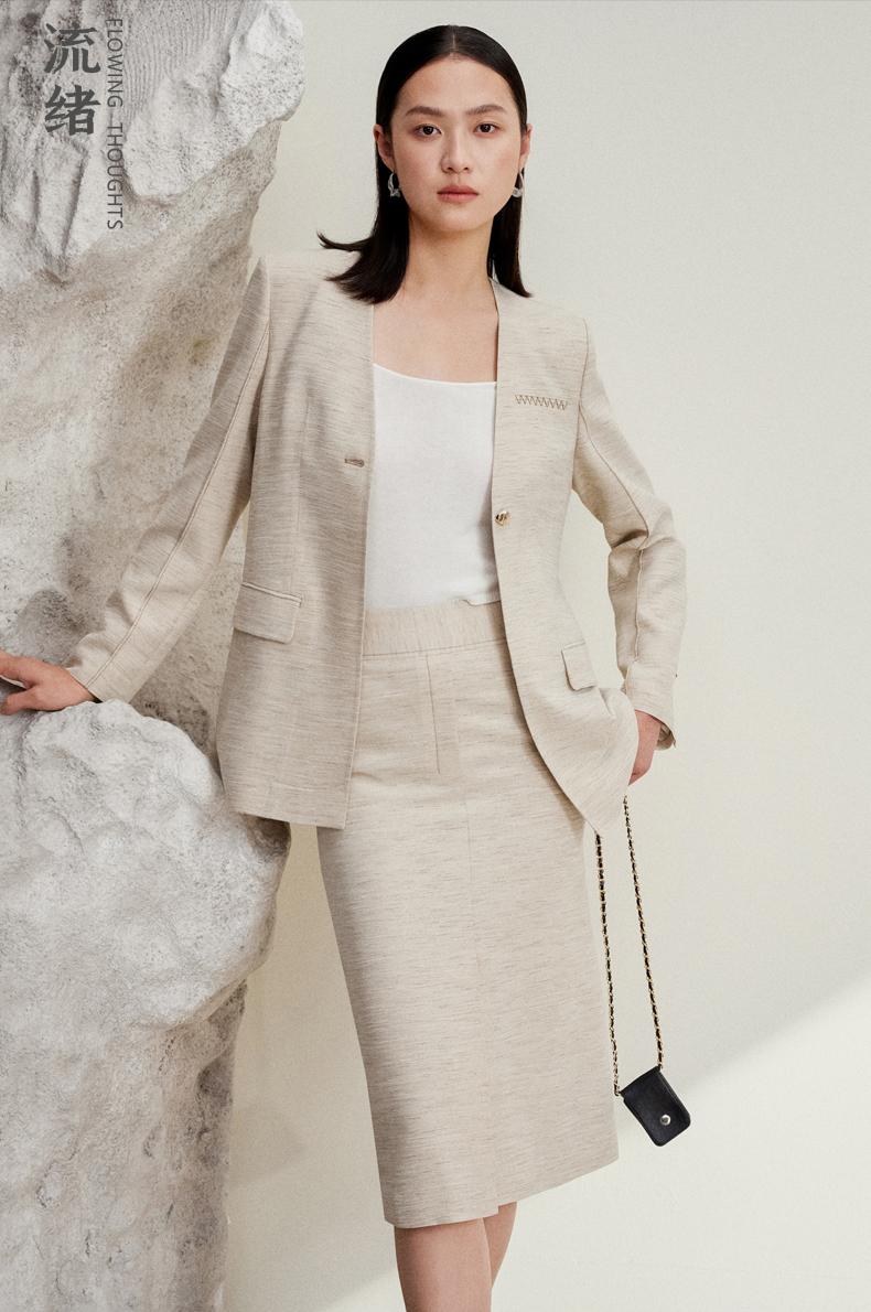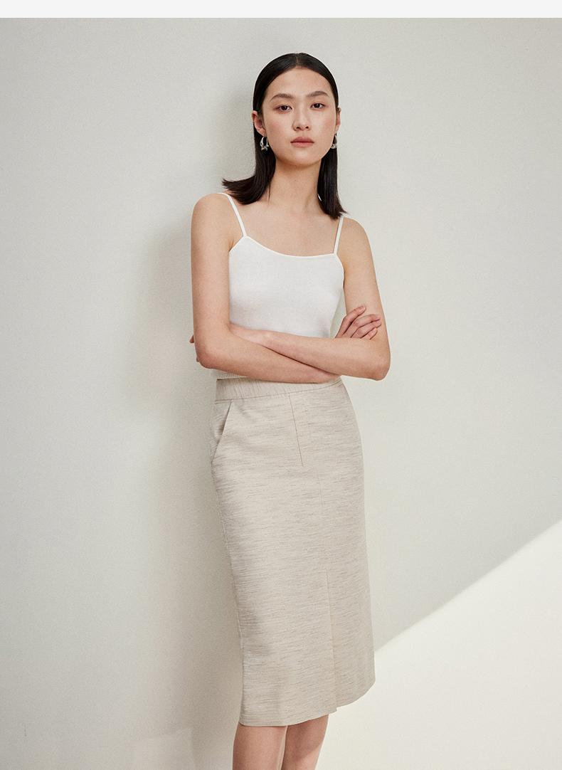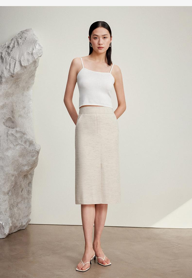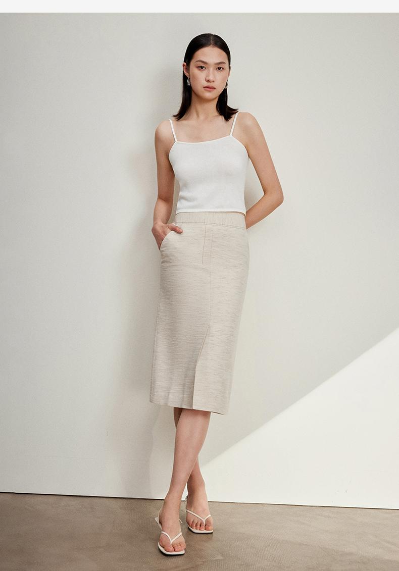 BQ2401061C+IMPRESS/西嘉竹节麻感醋酸显瘦半身裙