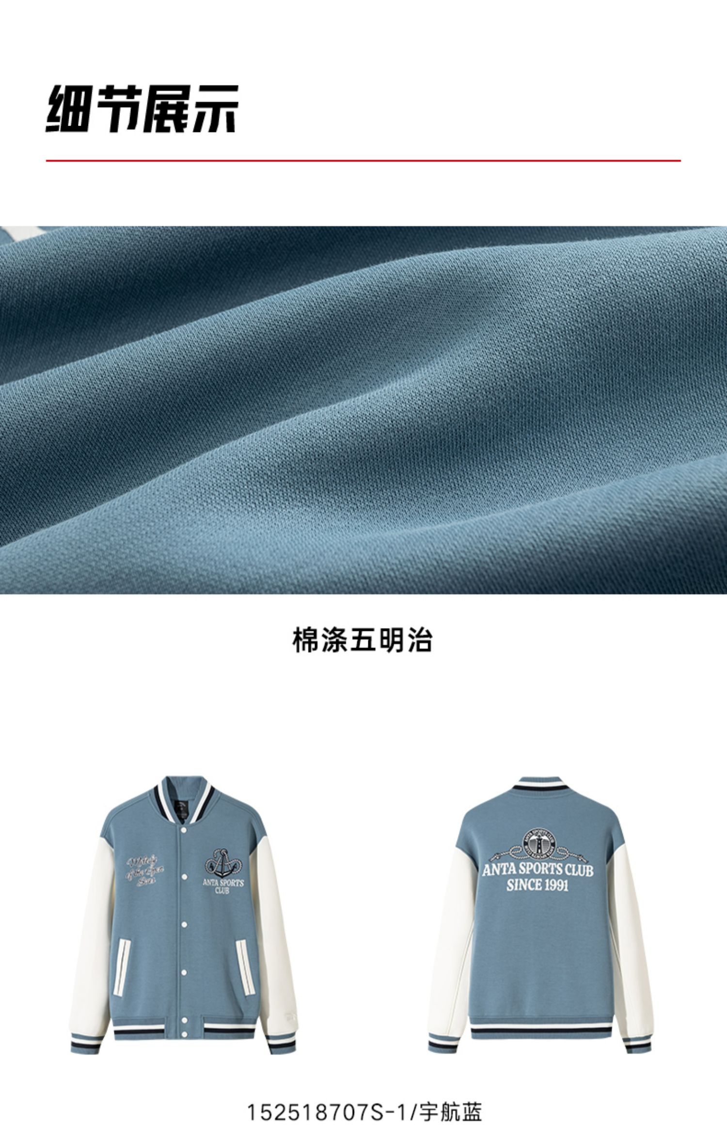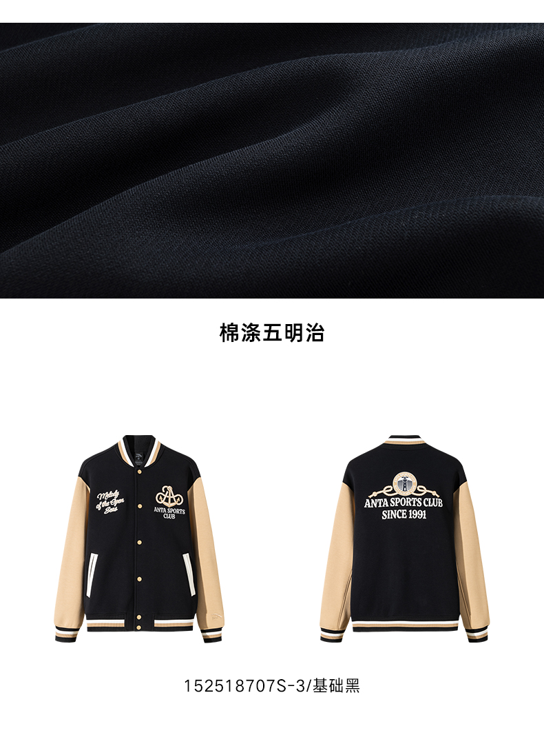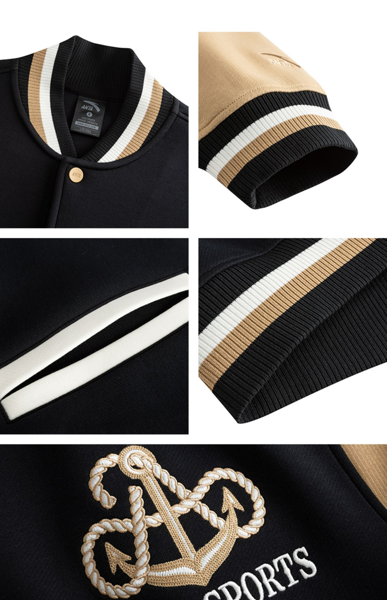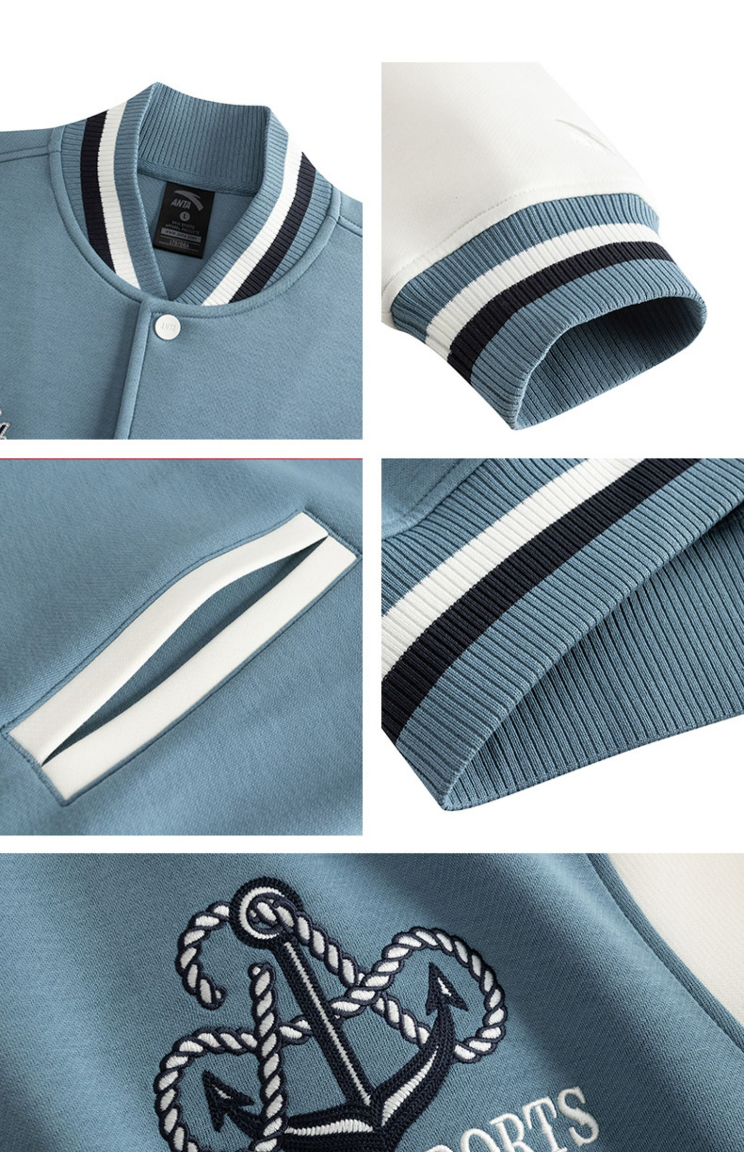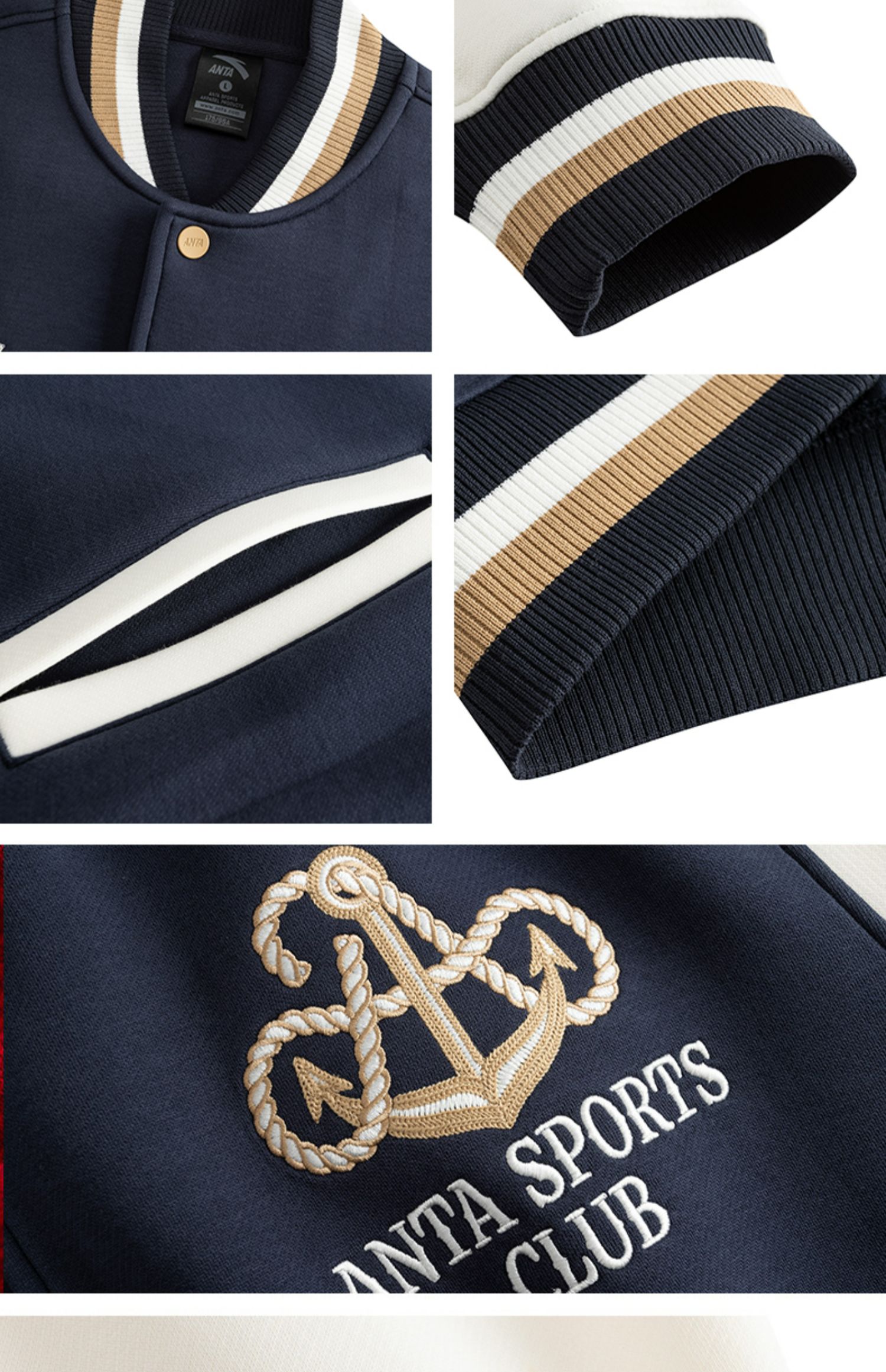 安踏美式棒球服夹克男士新款复古撞色拼接运动外套152518707S