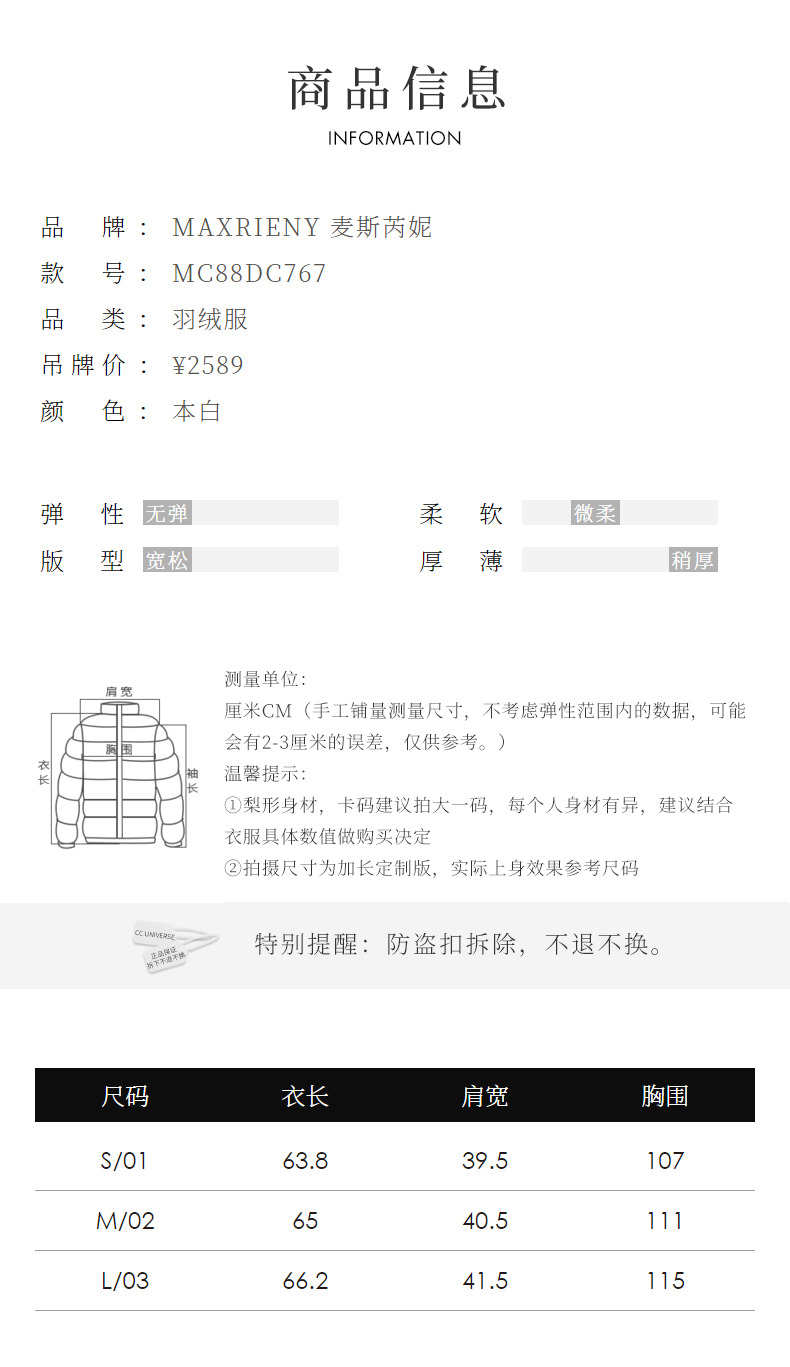 MAXRIENY千金*刺绣雪花羽绒马甲肌理感外套马夹(货号:MC88DC767)