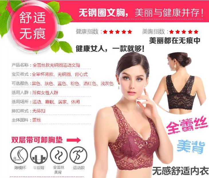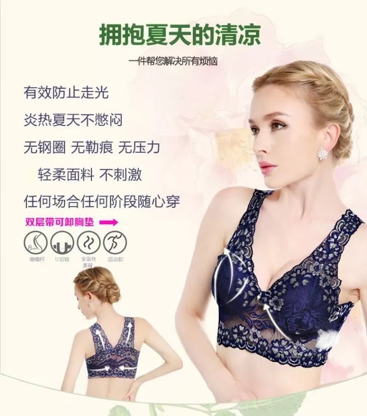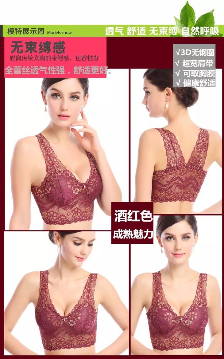 无痕内衣性感全蕾丝无钢圈文胸 背心式聚拢美背文胸