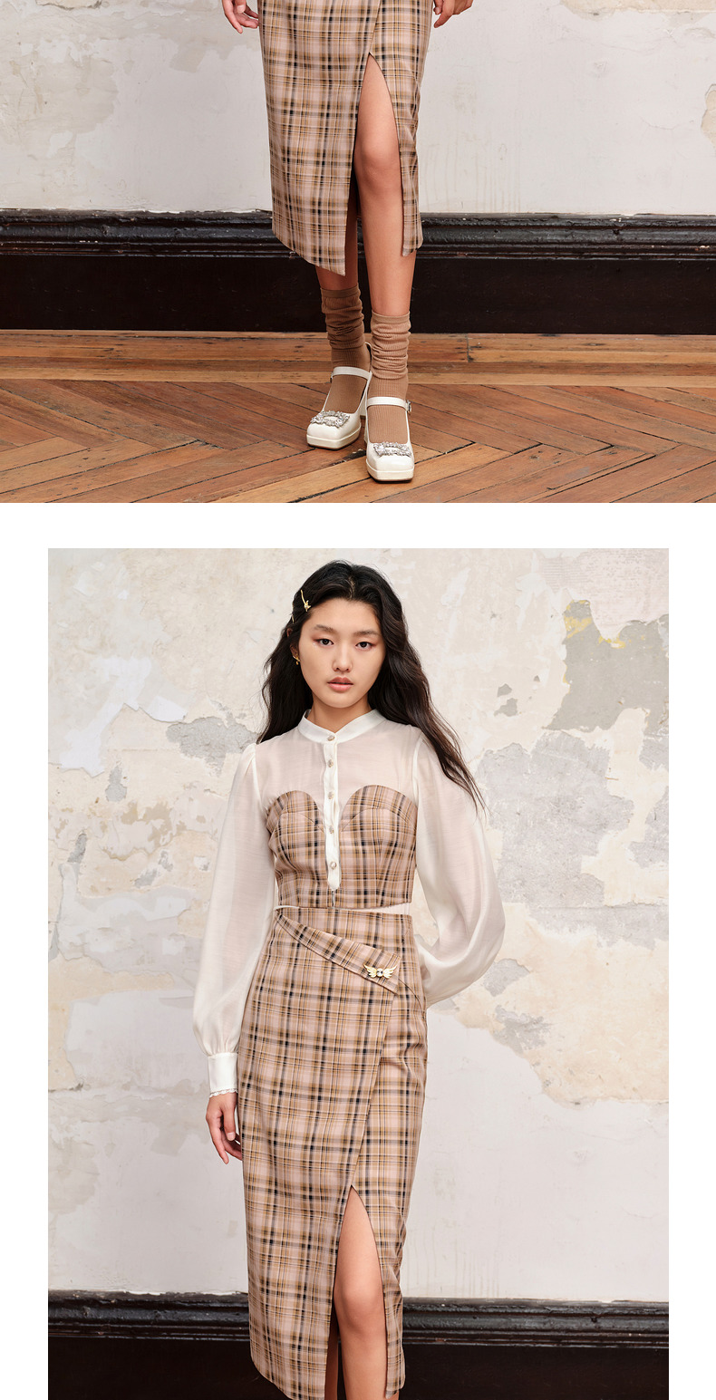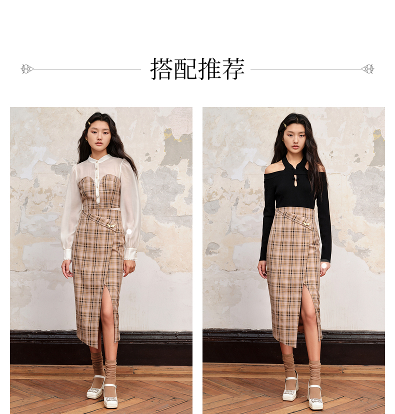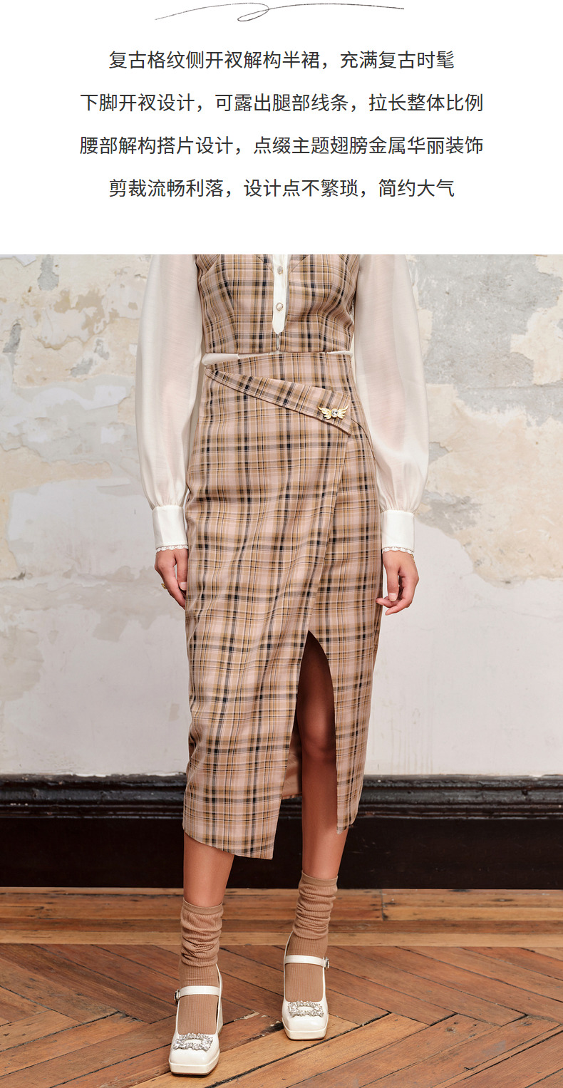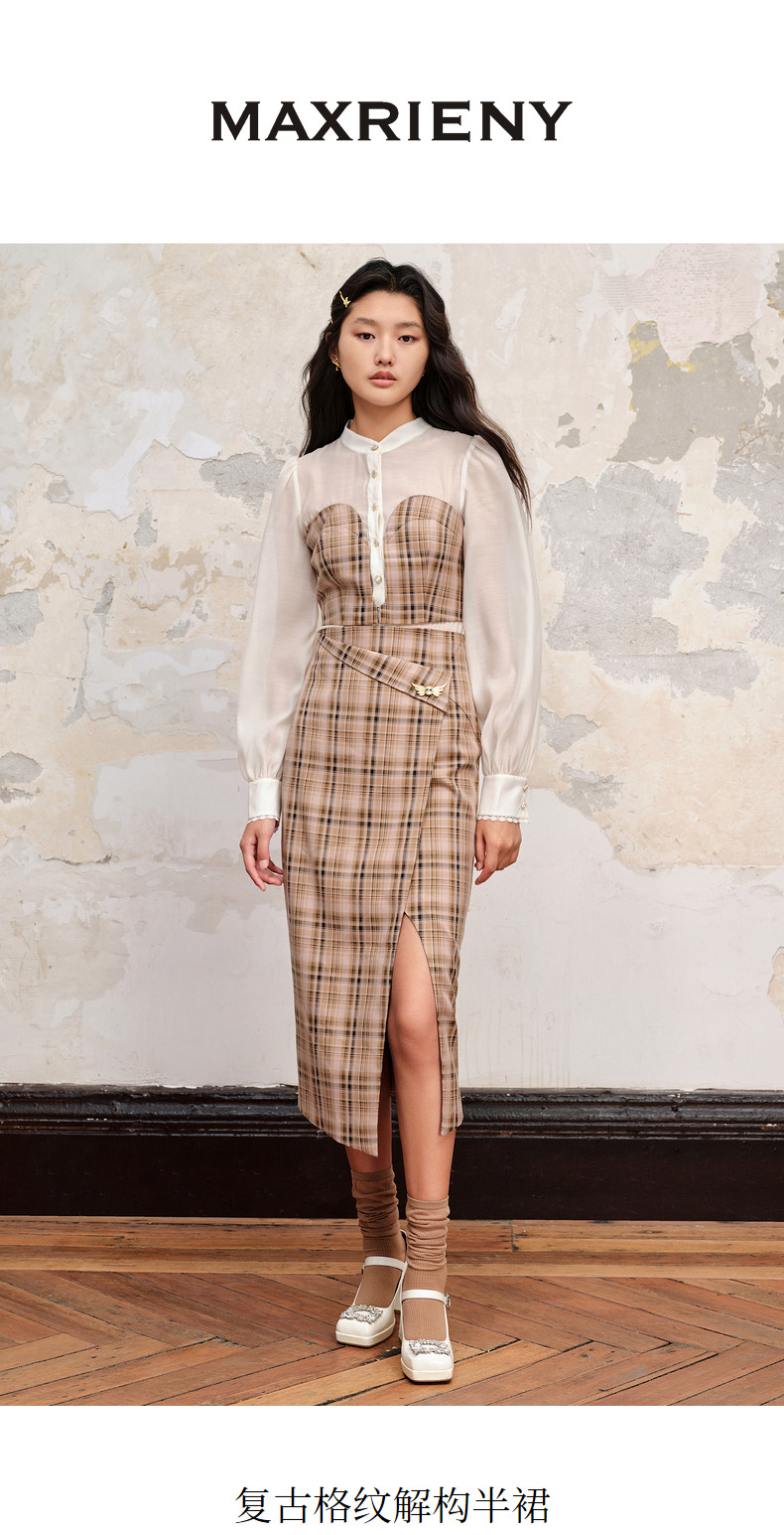 MAXRIENY复古格纹结构半裙美拉德穿搭裙子(货号:MC88SK520)
