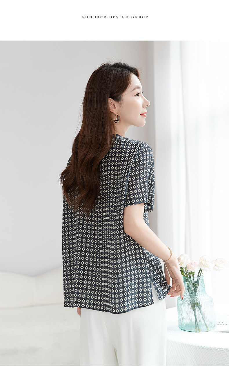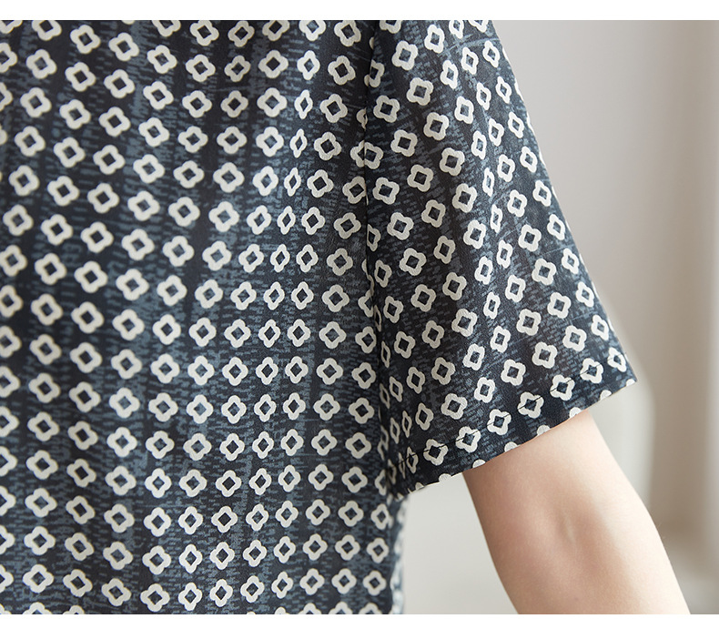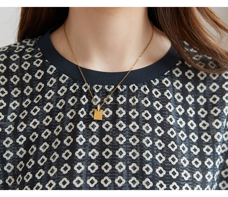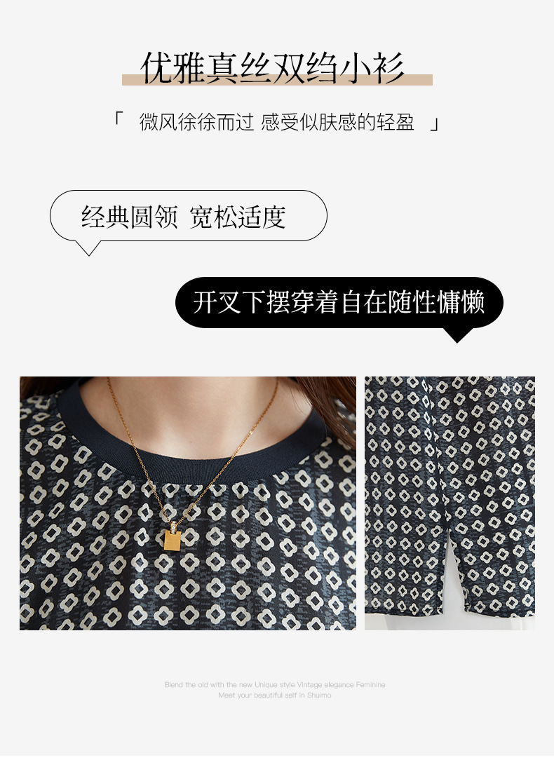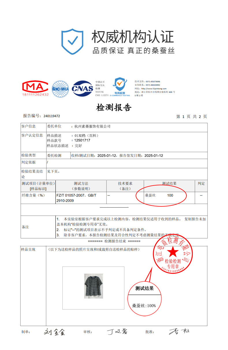QS-12501717【经典百搭】100%桑蚕丝圆领短袖打底衫夏季格纹真丝T恤女1717