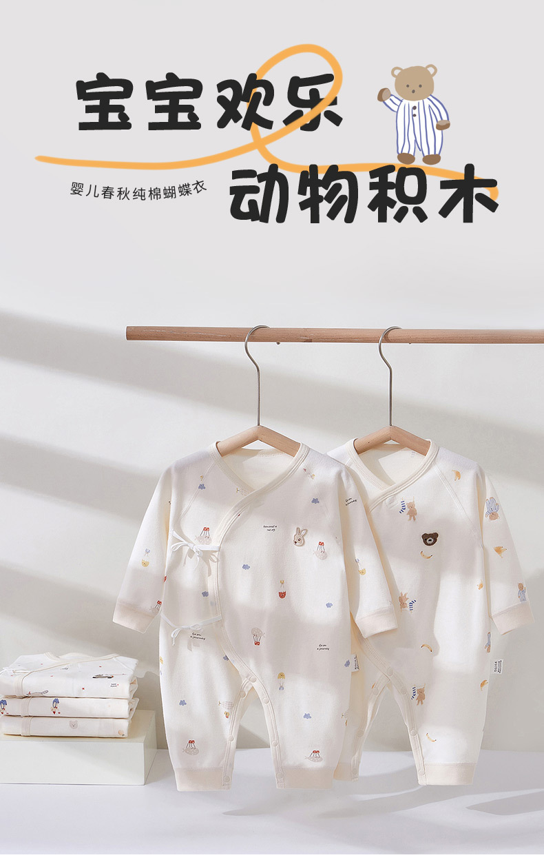 【纯棉舒适,宝宝皮肤零压力】新生儿衣服 初生儿和尚服 春秋纯棉无骨 宝宝婴儿连体衣蝴蝶衣哈衣-QQ
