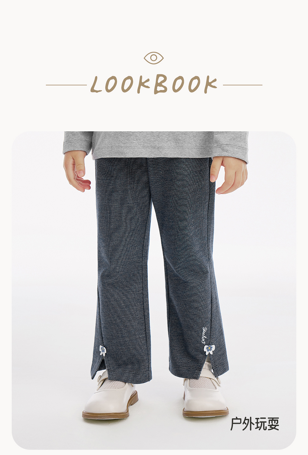 英氏儿童裤子新款春夏季女童休闲微喇叭裤女孩百搭长裤时尚牛仔裤