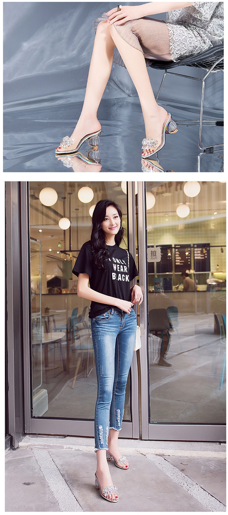 JWj02时尚外穿凉拖鞋夏季新款水晶高跟拖鞋百搭中跟凉鞋