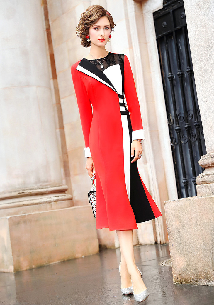 FMY-26763女神轻熟修身圆领中长鱼尾裙