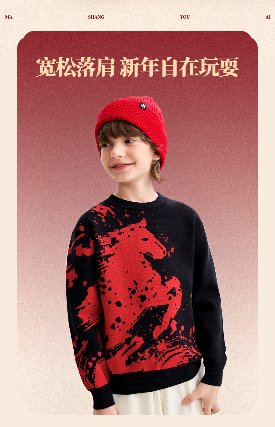 【新年波】男童圆领长袖针织衫春季新款安奈儿童装EB614510