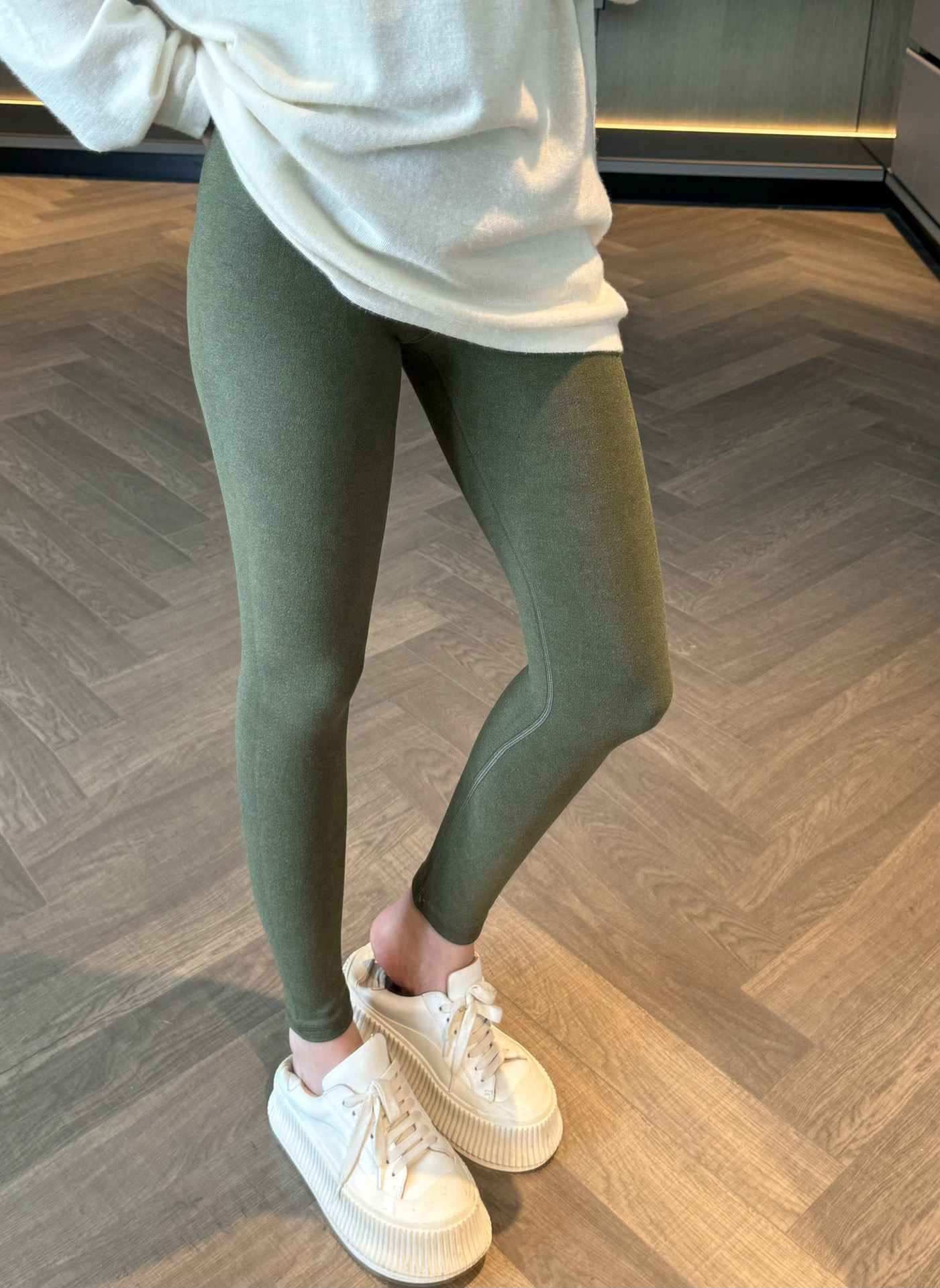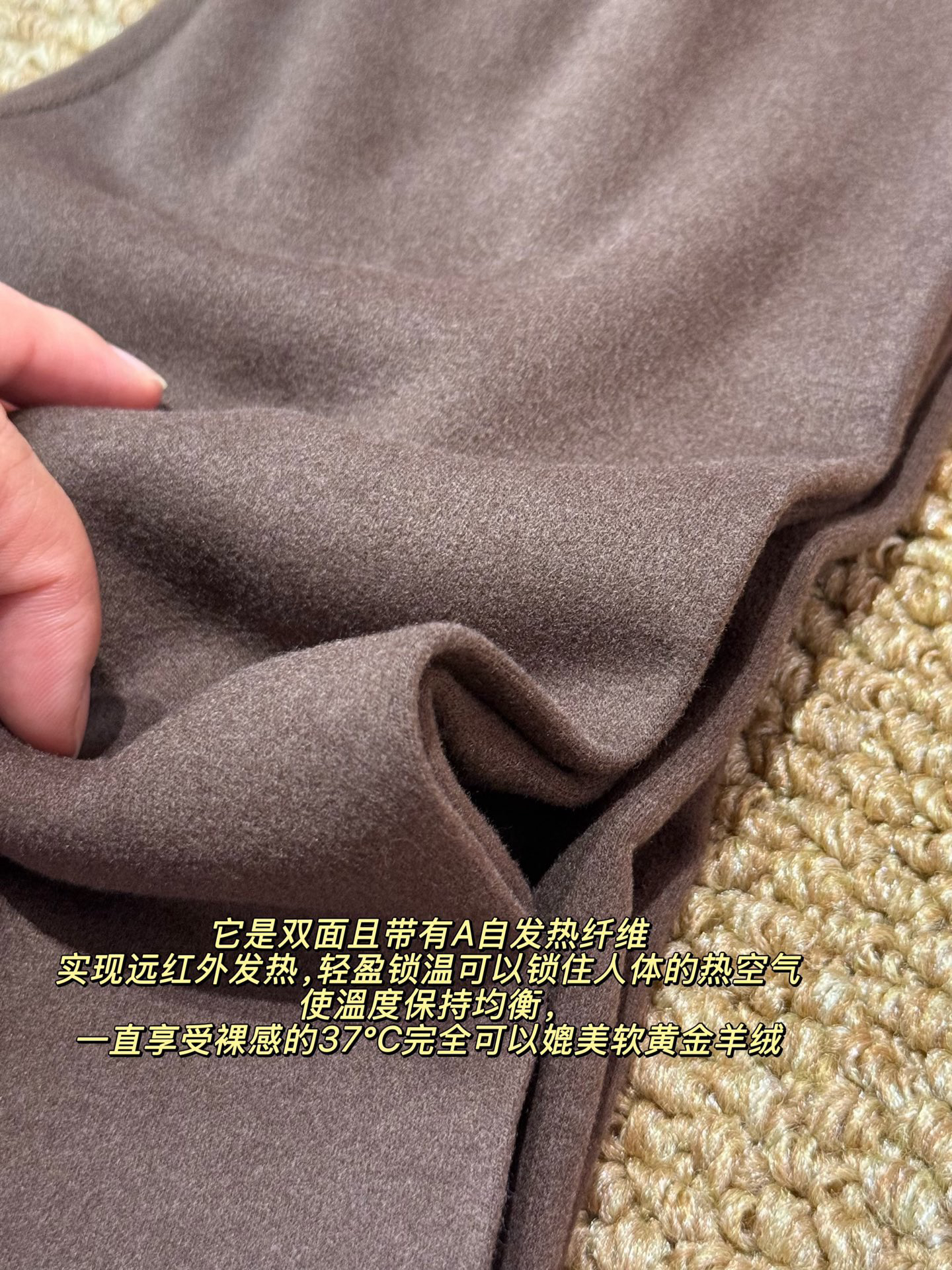 体感堪比羊绒,独有70/30保温配比,发热锁温,身体始终暖得恰到好处,完全不臃肿的版型,修身显瘦,是那种软糯感十足 双面加绒的打底裤