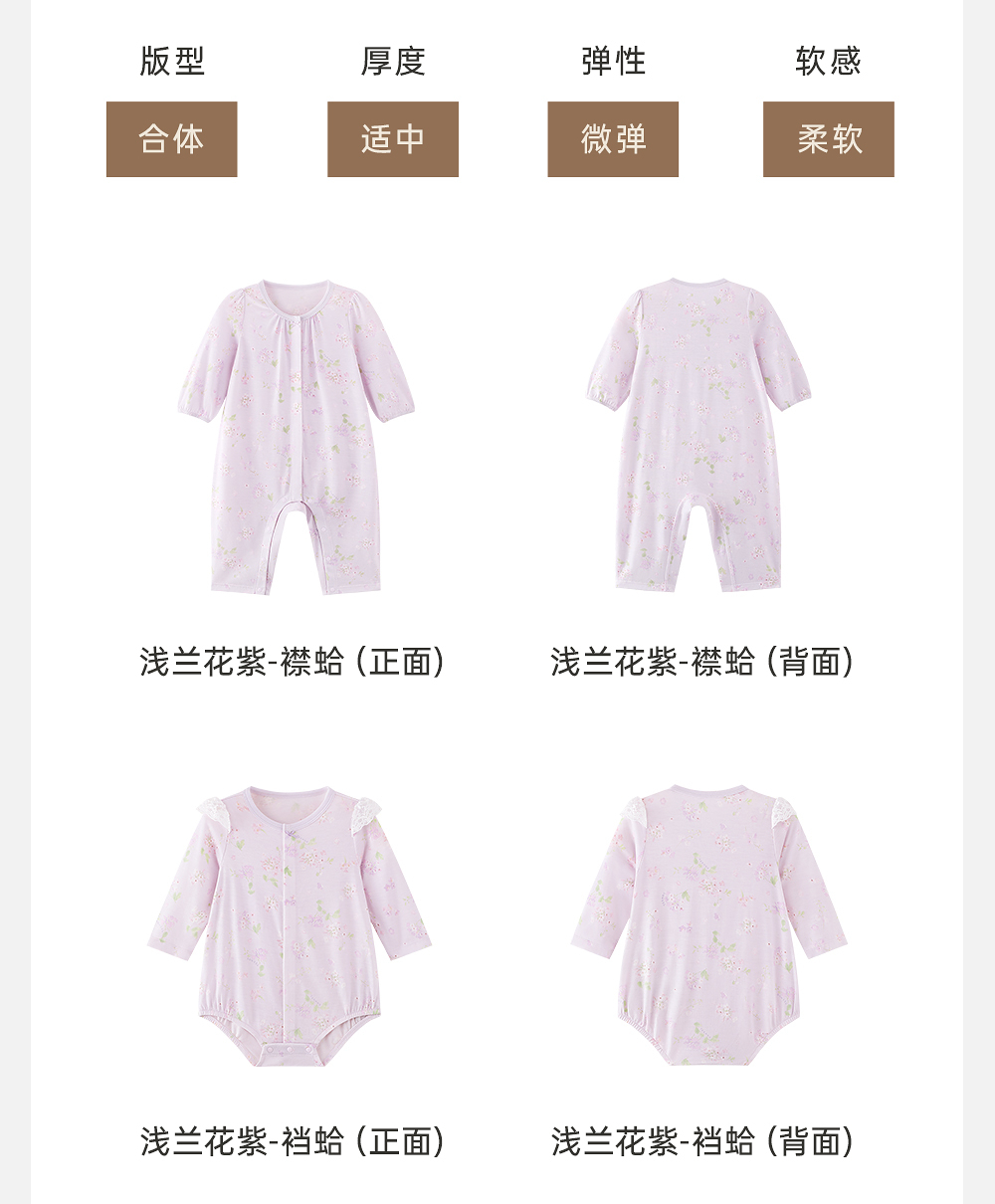 【商场同款】英氏婴儿连体衣长袖透气春夏女宝牛奶丝润服婴儿衣服