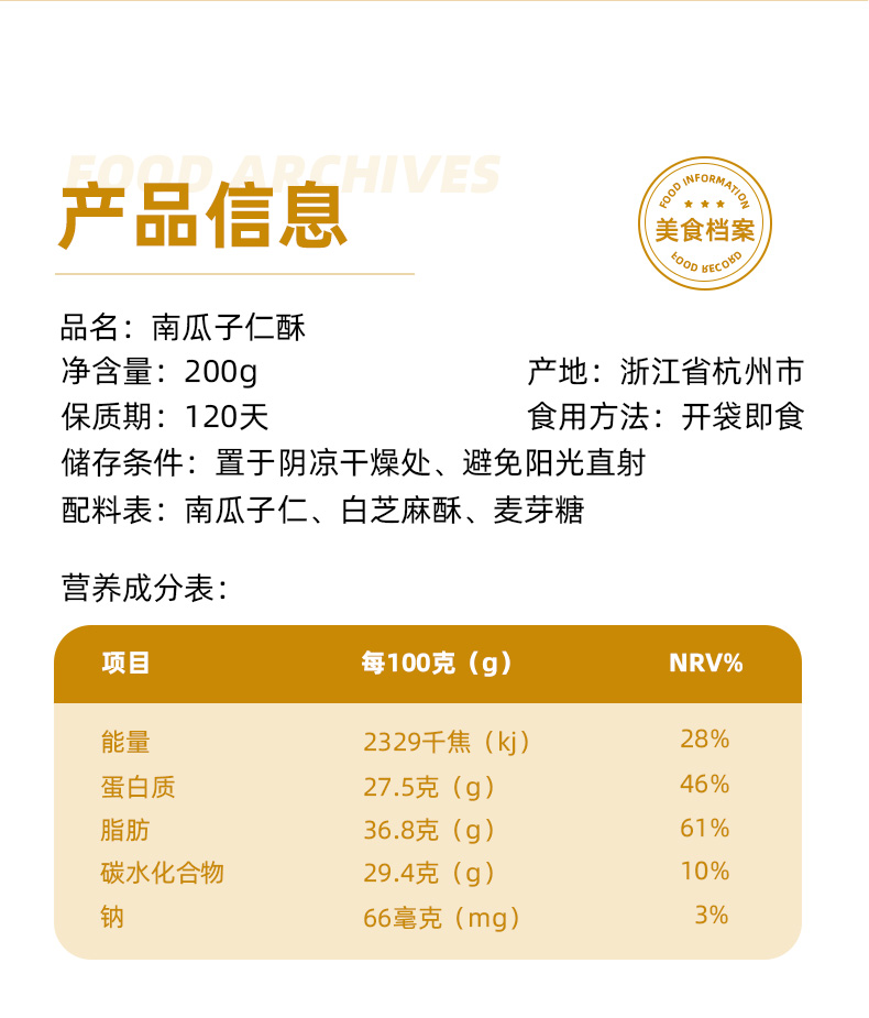 稳爸简方-南瓜子仁酥200g/袋