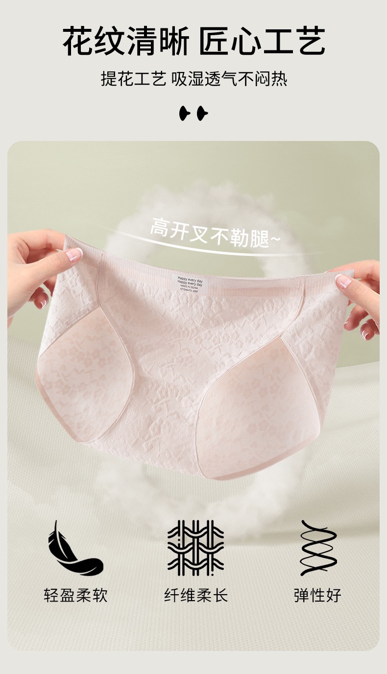 自在高开叉「DANMO高开叉纯棉提花内裤」塑造立体曲线 天然亲肤加长裆部 弹力升级自在无拘 顺滑垂感自在舒适 全包容立体有型