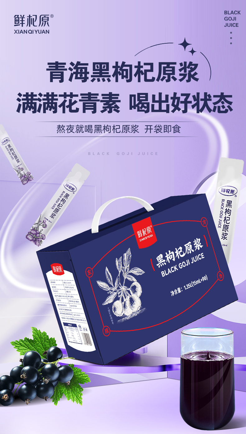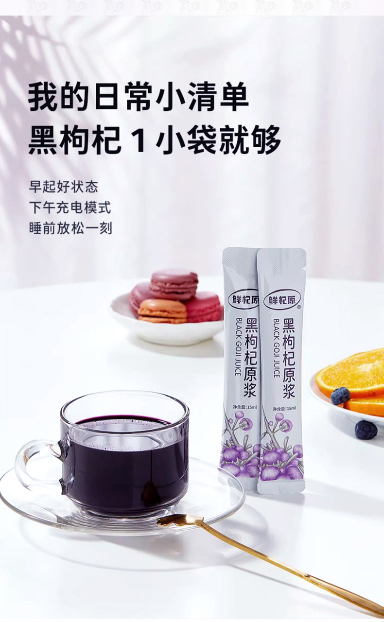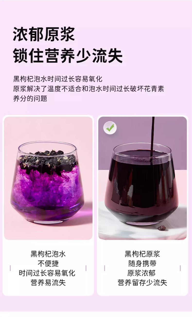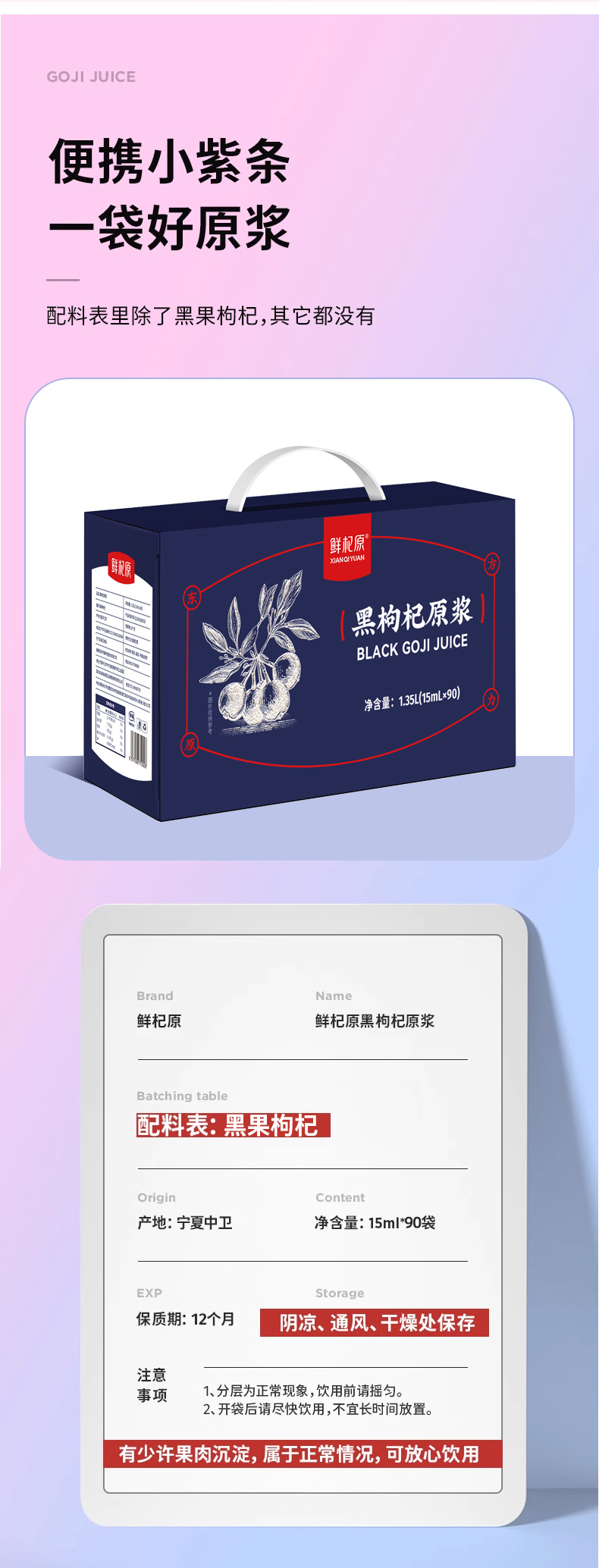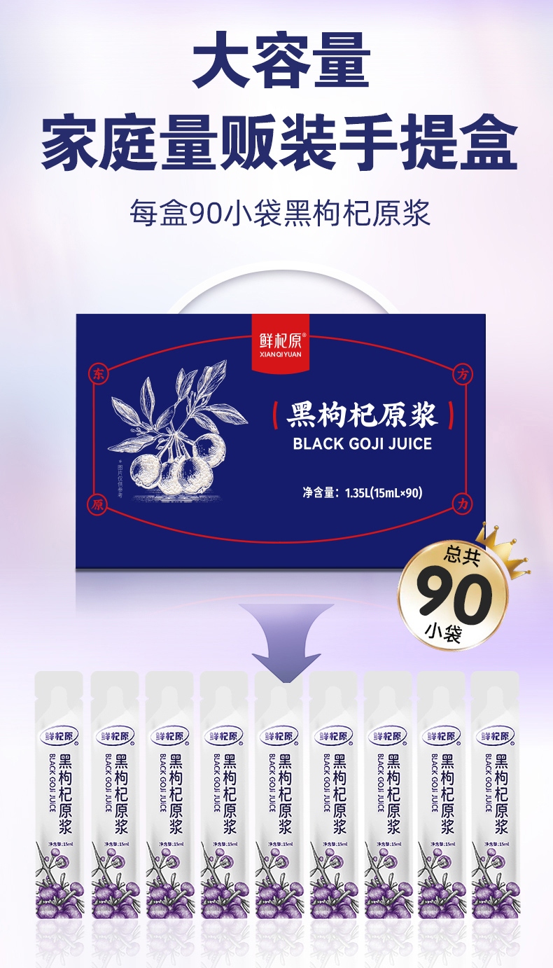 【青海诺木洪黑枸杞 富含花青素 0添加纯原浆】 鲜杞原黑枸杞原浆1.35L(15ml*90袋)