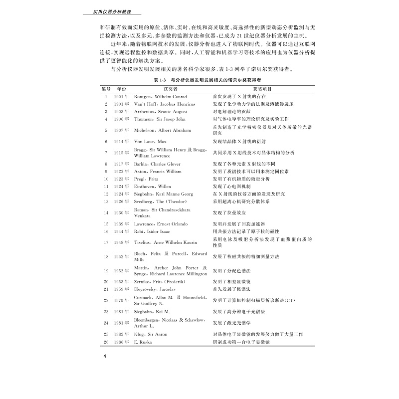 本书根据化学、应用化学、医药学、环境科学及生物学等专业中常用仪器的教学基本内容要求和有关专业综合应用与创新人才的培养需要而编写。《实用仪器分析教程》共分15章,包括绪论、光学分析法导论、紫外-可见吸收光谱法、红外吸收光谱法、原子发射光谱法、原子吸收光谱法、电化学分析导论、电位分析法、电解分析法与库仑分析法、伏安法与极谱分析法、色谱分析法导论、高效液相色谱分析法、核磁共振波谱法、质谱法等内容。本书在内容上力求简单明了,每一章的编写次序是在介绍分析技术原理的基础上,介绍仪器的基本结构和工作原理,接着介绍分析技术和分析方法,最后介绍分析技术的应用实例,形成了理论与实践相结合的新颖而完整的体系。