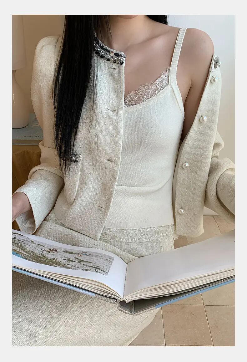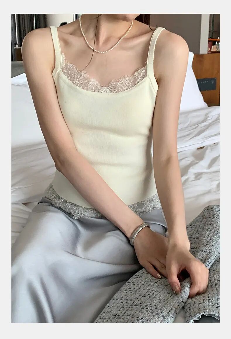 【自】全新升级【铂金会员109/天猫149/差价40】(15117) 洛诗琳2025春季新款气质百搭针织衫内搭蕾丝边吊带背心