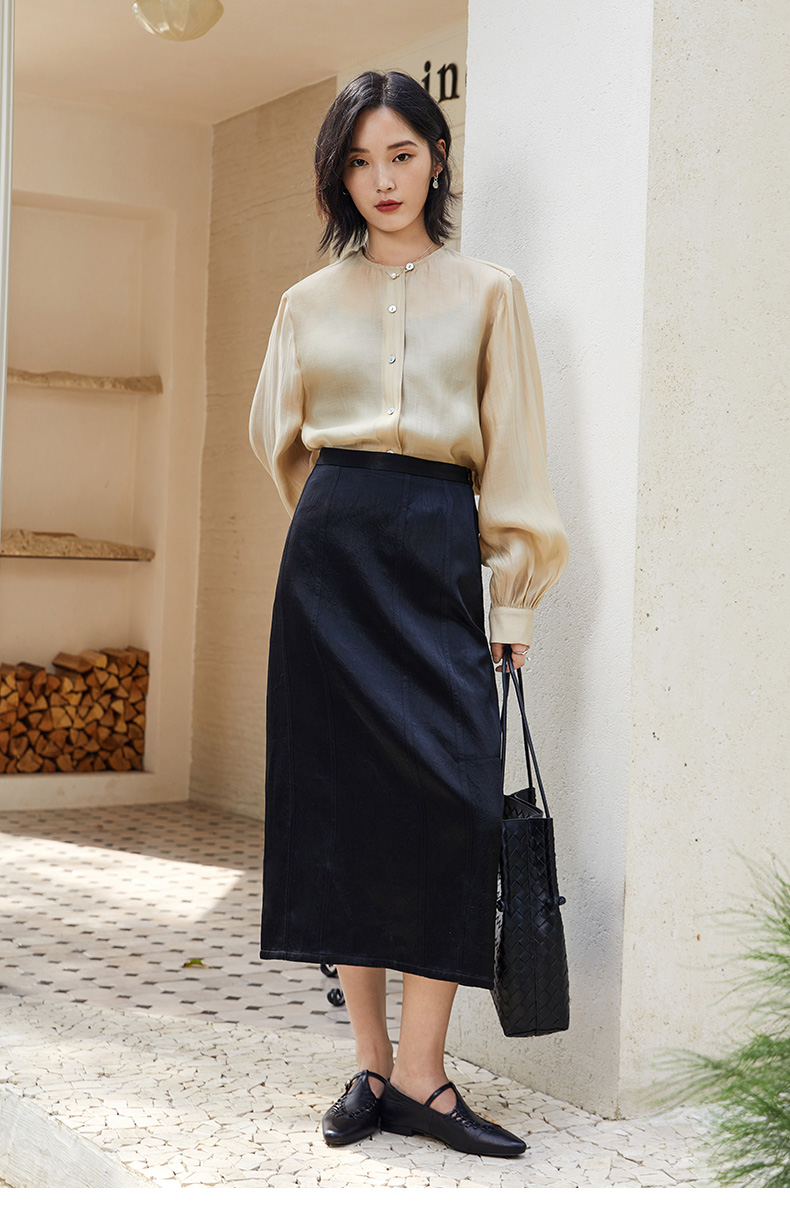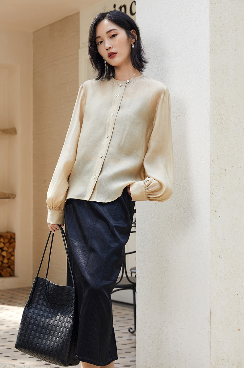 高级感拉满~香槟色天丝衬衫 立领灯笼袖 轻薄透气上衣女