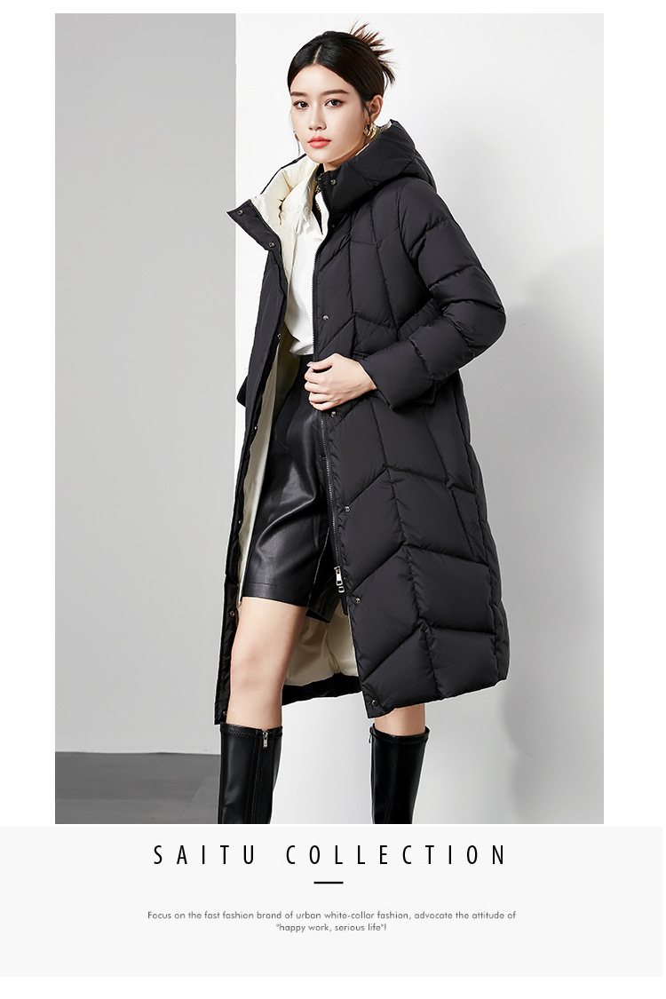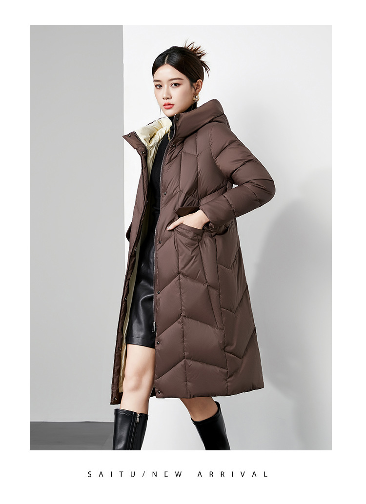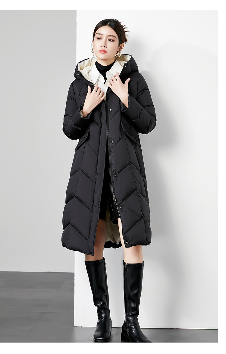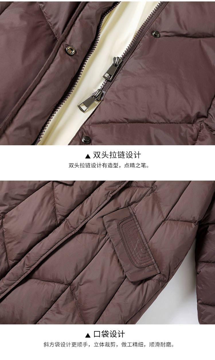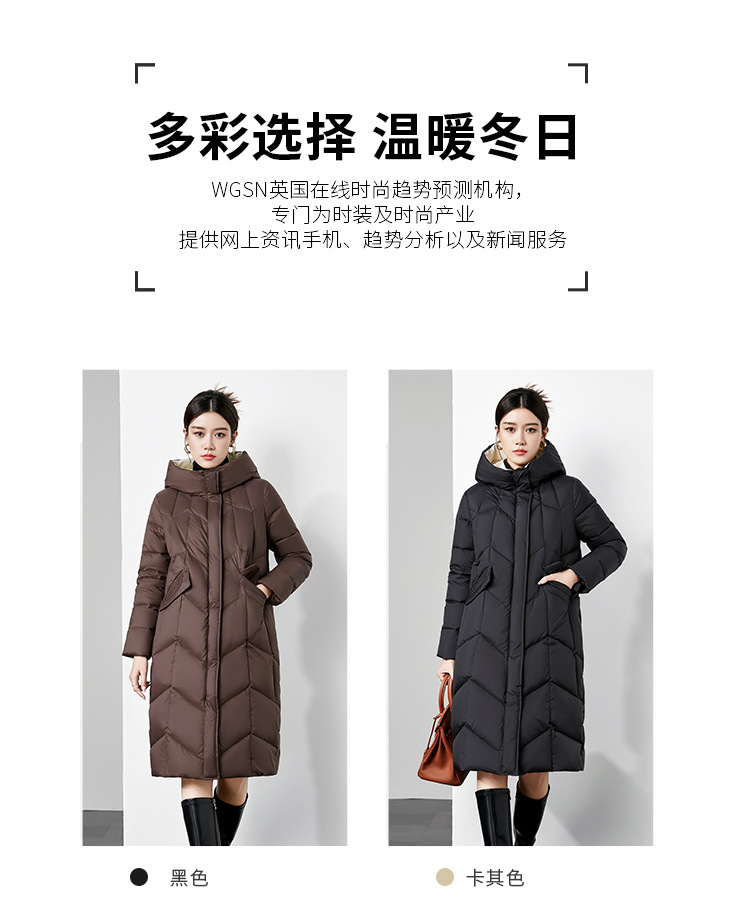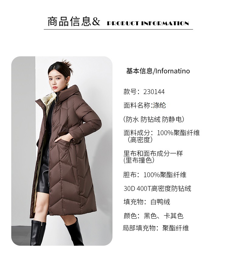 【高货kbnq】全新升级【铂金会员735/天猫999/差价264】(54943) 洛诗琳高级感2024冬季新款加厚连帽撞色中长款羽绒服