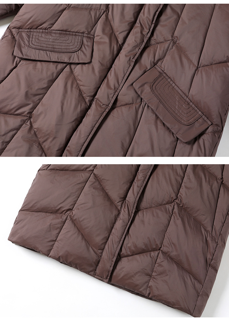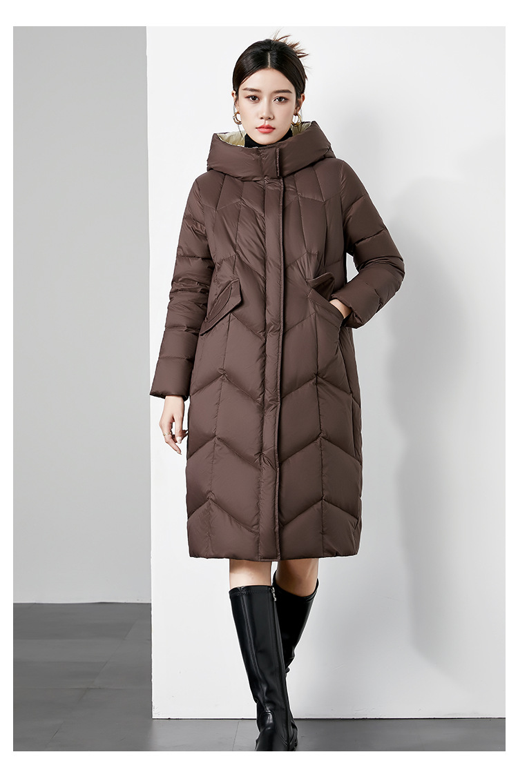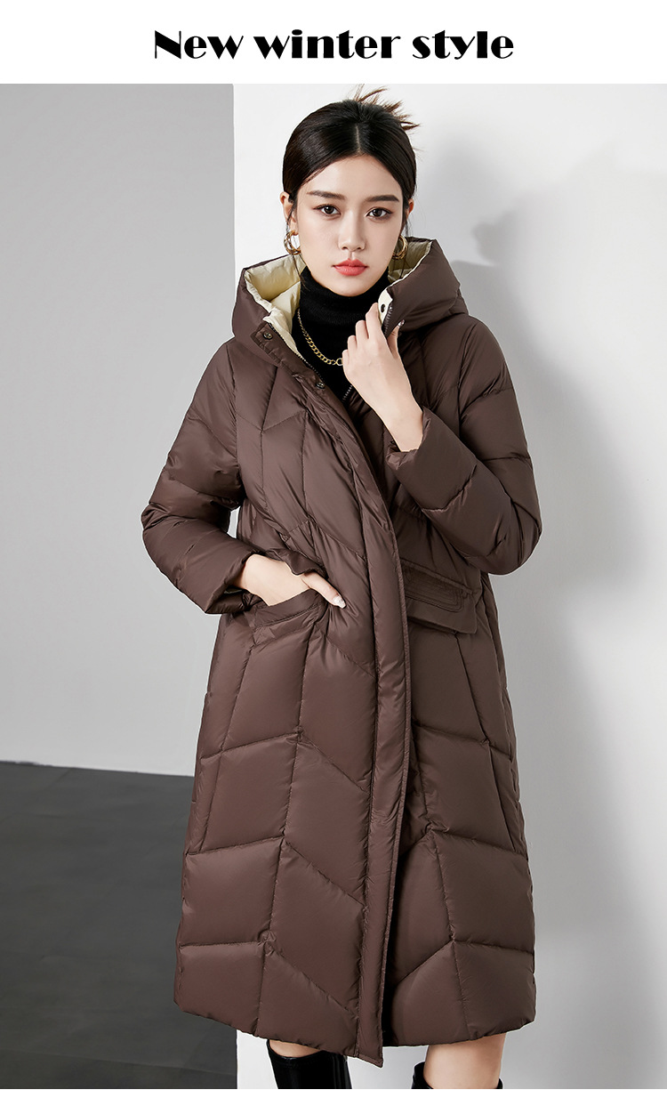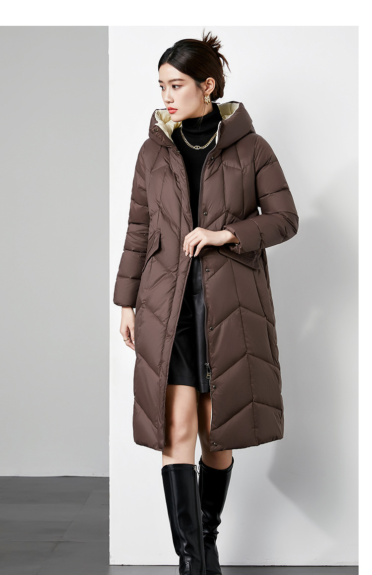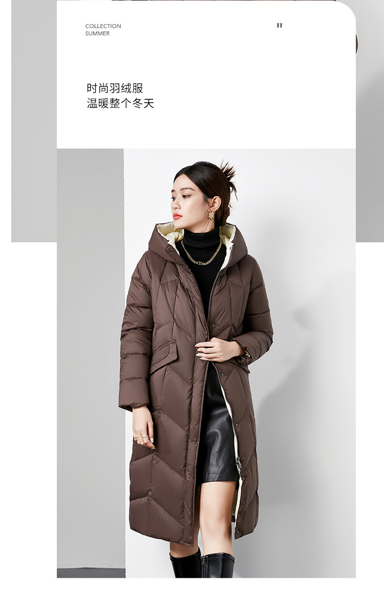 【高货kbnq】全新升级【铂金会员735/天猫999/差价264】(54943) 洛诗琳高级感2024冬季新款加厚连帽撞色中长款羽绒服