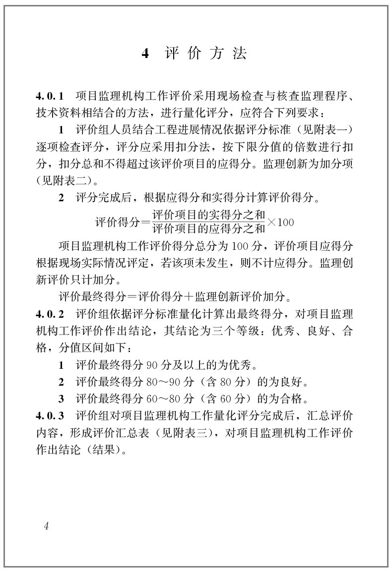 为进一步规范建设工程监理行为,提升监理工作质量,根据山东省建设监理与咨询协会《关于2020-2021年度专家委员会研究课题立项的通告》(鲁建监协字〔2020〕32号)的要求,在充分调研的基础上,依据国家相关标准,结合山东省建设工程监理实际,广泛征求有关单位和专家的意见,经反复讨论、修改和完善,标准编写课题组编制了《项目监理机构工作评价标准》。 本标准共分5章,主要内容包括:总则,术语,基本规定,评价方法,评价内容。本标准由山东省建设监理与咨询协会负责管理,由青岛市工程建设监理有限公司具体技术内容的解释。